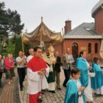06 czerwca w pierwszy czwartek miesiąca, na zakończenie Oktawy Bożego Ciała podczas Mszy św. o godz. 19.00 modliliśmy się w intencji naszych kapłanów, którzy pracują bądź posługują w naszej parafii. Okazją do modlitwy i świętowania były rocznice święceń naszych duszpasterzy. To w tym roku ks. Marek obchodził 18 rocznicę święceń, ks. Arkadiusz 28, a ks. Proboszcz 32. Parafianie, poszczególne zespoły parafialne obok wielkiego serca objawiającego się w modlitwie również przez dobre słowo i kwiaty czy drobny upominek chcieli podziękować jubilatom za ich posługę, pracę, serdeczność. Ks. proboszcz w kazaniu nawiązał, że posługa księdza to wrzucanie ziarna w glebę ludzkiego serca. Aby ono wykiełkowało i przyniosło plon potrzeba wiele czasu i sprzyjających warunków – rodzina, szkoła, otoczenie a przede wszystkim – otwarcie się na łaskę Pana Boga. Nie można się zniechęcać. Trzeba z mozołem i cierpliwością zasiewać ziarna Boga w ludzkich sercach.
