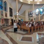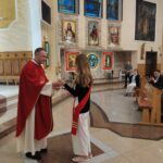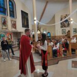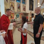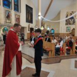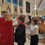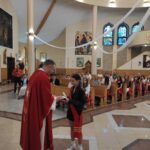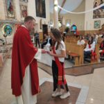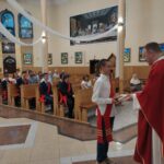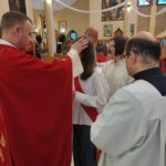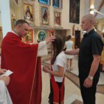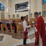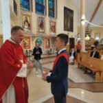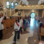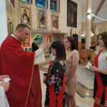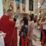 Wtorek 18 czerwca był dniem udzielenia 14 osobom sakramentu dojrzałości chrześcijańskiej. Na Mszy św. o godz. 19:00 nasi kandydaci wraz ze świadkami i zaproszonymi gośćmi uczestniczyli w Eucharystii sprawowanej przez ks. prałata Macieja Miętka – kanclerza naszej kurii, który z ramienia Księdza Biskupa udzielił sakramentu bierzmowania. W homilii ks. kanclerz nawiązał do słów św. Ireneusza, który podkreślił, że nie ma większej wartości, większego skarbu nad Ewangelią Jezusa Chrystusa w której wszystko zostało zawarte, całe szczęście. Na koniec uroczystości wybierzmowane osoby uroczyście miały wręczone egzemplarze Pisma świętego i pamiątkowe dyplomy, oraz świece sakramentu bierzmowania.