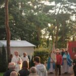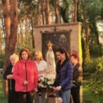 Po Mszy św. wyruszyliśmy procesyjnie w procesję fatimską. Zatrzymywaliśmy się przy każdym ołtarzu różańcowym, aby wsłuchać się w rozważanie tajemnicy różańcowej i by polecić Matce Bożej intencje, które były złożone przed ołtarzem przed Mszą św. i oczywiście by modlić się modlitwą różańcową. Przy ostatnim ołtarzu modliliśmy się za wszystkie grupy parafialne działające w parafii i dzieła Legionowskiego Stowarzyszenia AMICUS. Nasze nabożeństwo zakończyliśmy odśpiewaniem Apelu Jasnogórskiego.