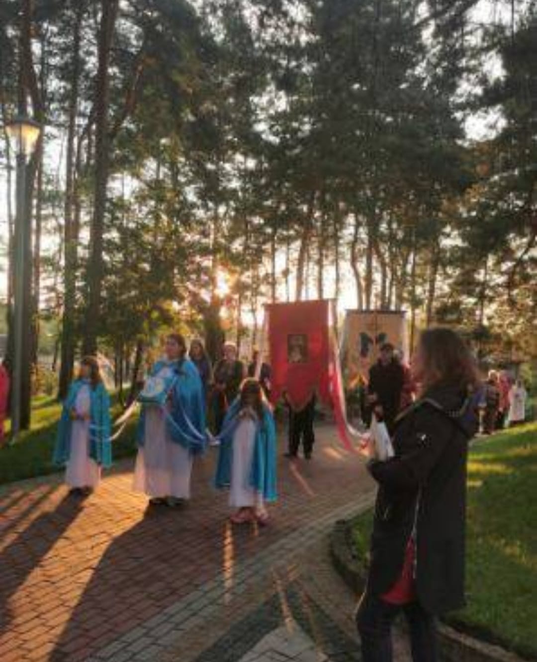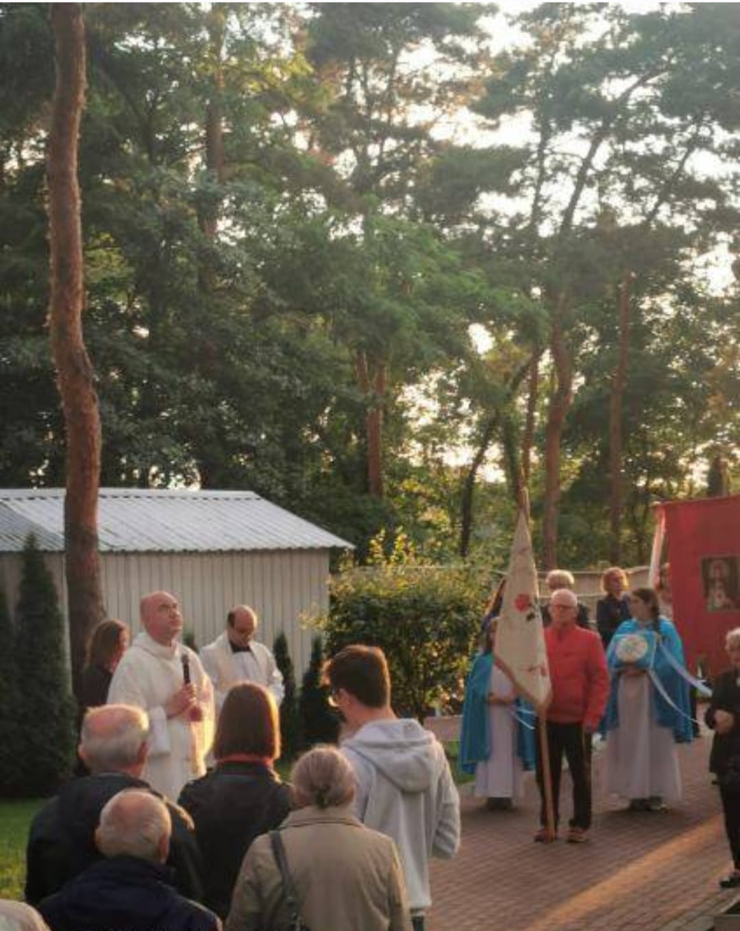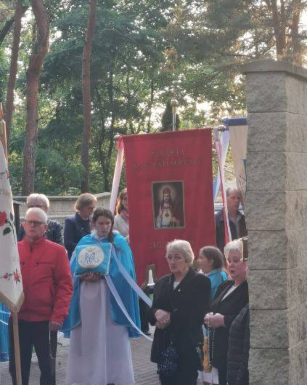 Po Mszy św. wyruszyliśmy procesyjnie w procesję fatimską. Zatrzymywaliśmy się przy każdym ołtarzu różańcowym, aby wsłuchać się w rozważanie tajemnicy różańcowej i by polecić Matce Bożej intencje, które były złożone przed ołtarzem przed Mszą św. i oczywiście by modlić się modlitwą różańcową. Przy ostatnim ołtarzu modliliśmy się za wszystkie grupy parafialne działające w parafii i dzieła Legionowskiego Stowarzyszenia AMICUS. Nasze nabożeństwo zakończyliśmy odśpiewaniem Apelu Jasnogórskiego.