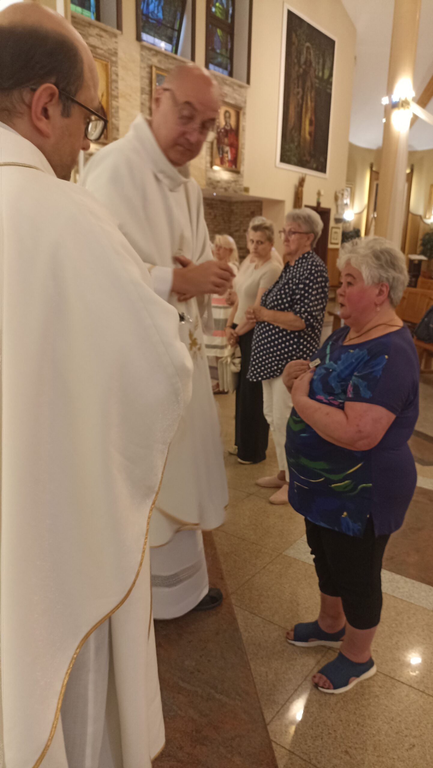 16 lipca w dzień Matki Bożej z Góry Karmel grupa prawie 10 osób uroczyście podczas Mszy św. o godzinie 19.00 przyjęła szkaplerz. W czasie homilii ks. proboszcz przypomniał o przywilejach wynikających z noszenia szkaplerza jak również o zobowiązaniach wynikających z jego noszenia. Każda z osób ze wzruszeniem przyjmowała ten szczególny znak przynależności do Matki Bożej. Dla umocnienia, aby wytrwać w swoich obowiązkach wynikających z faktu należenia do rodziny szkaplerza osoby składające deklaracje otrzymały Boże błogosławieństwo.