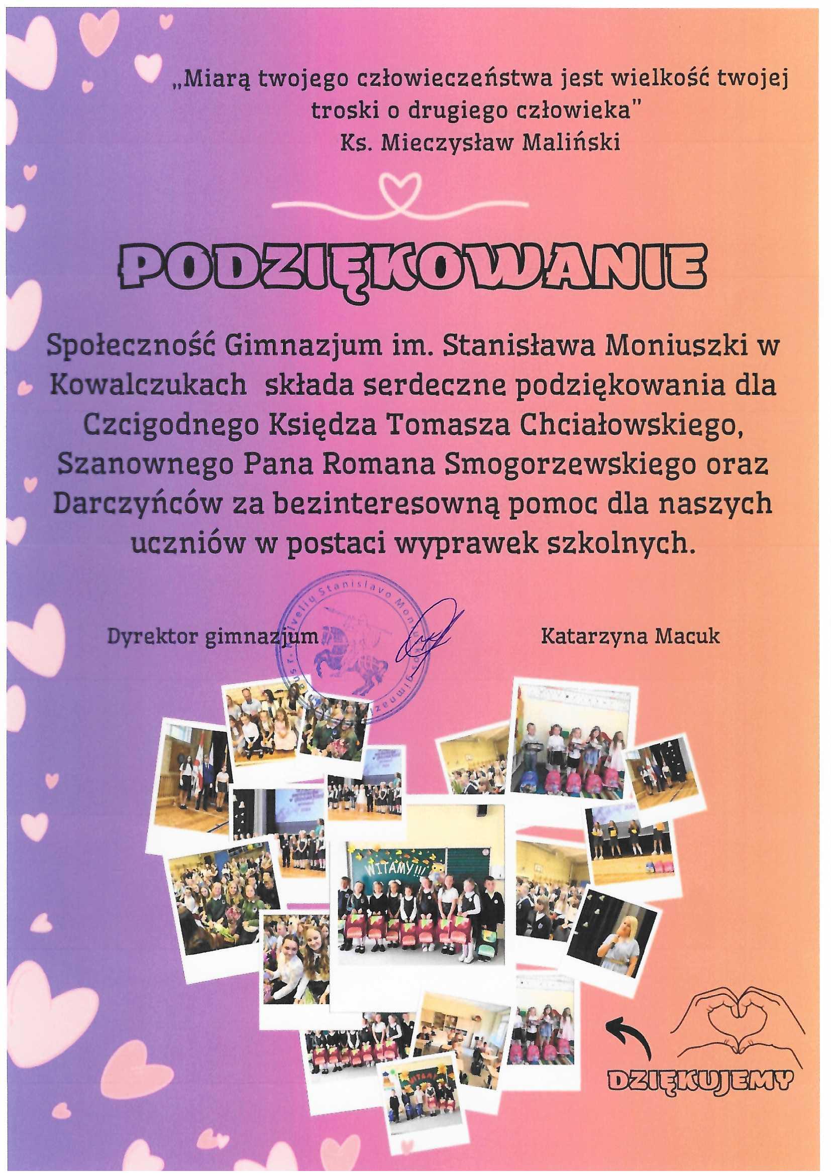 Podziękowania za wyprawki szkolne