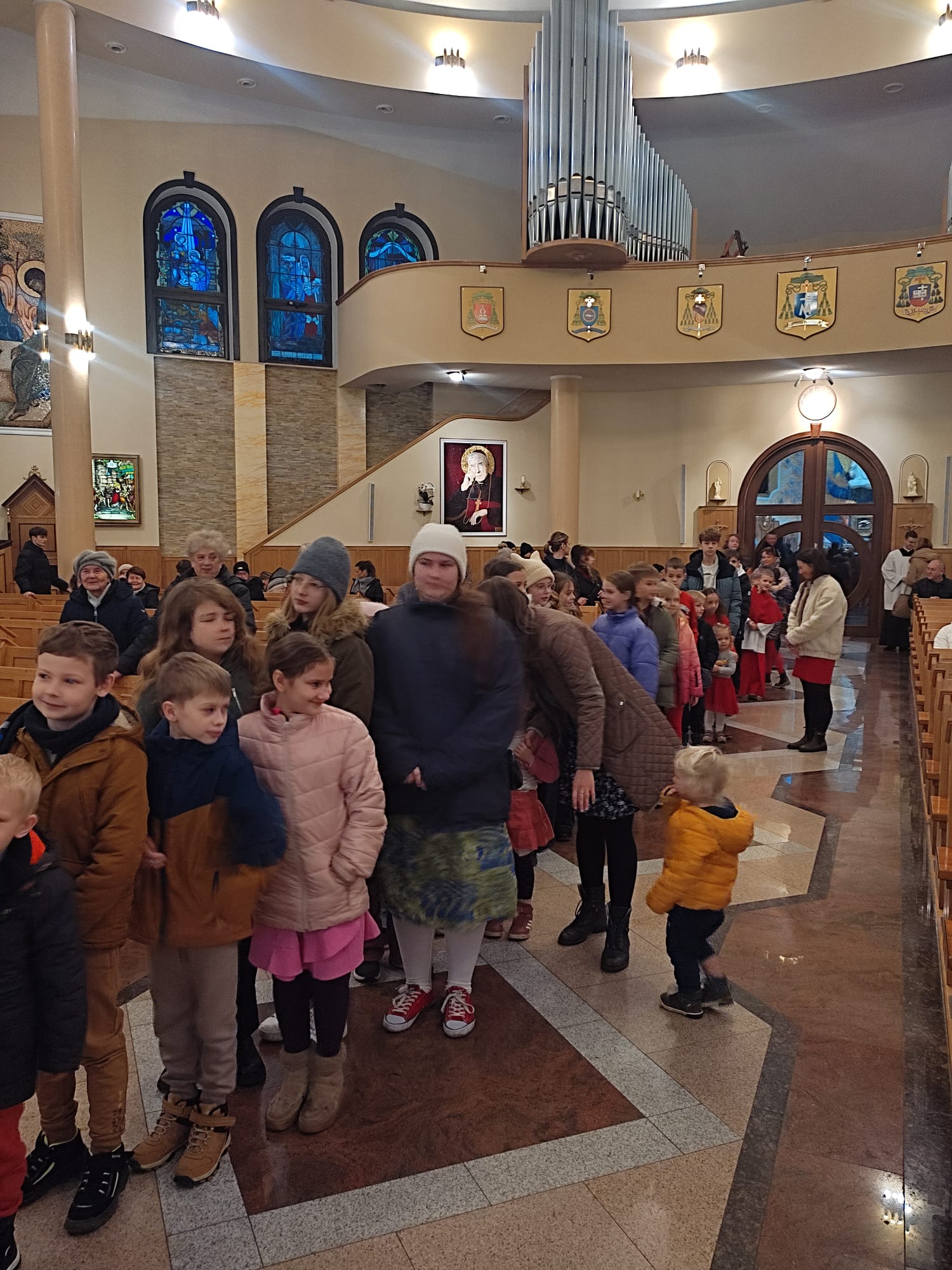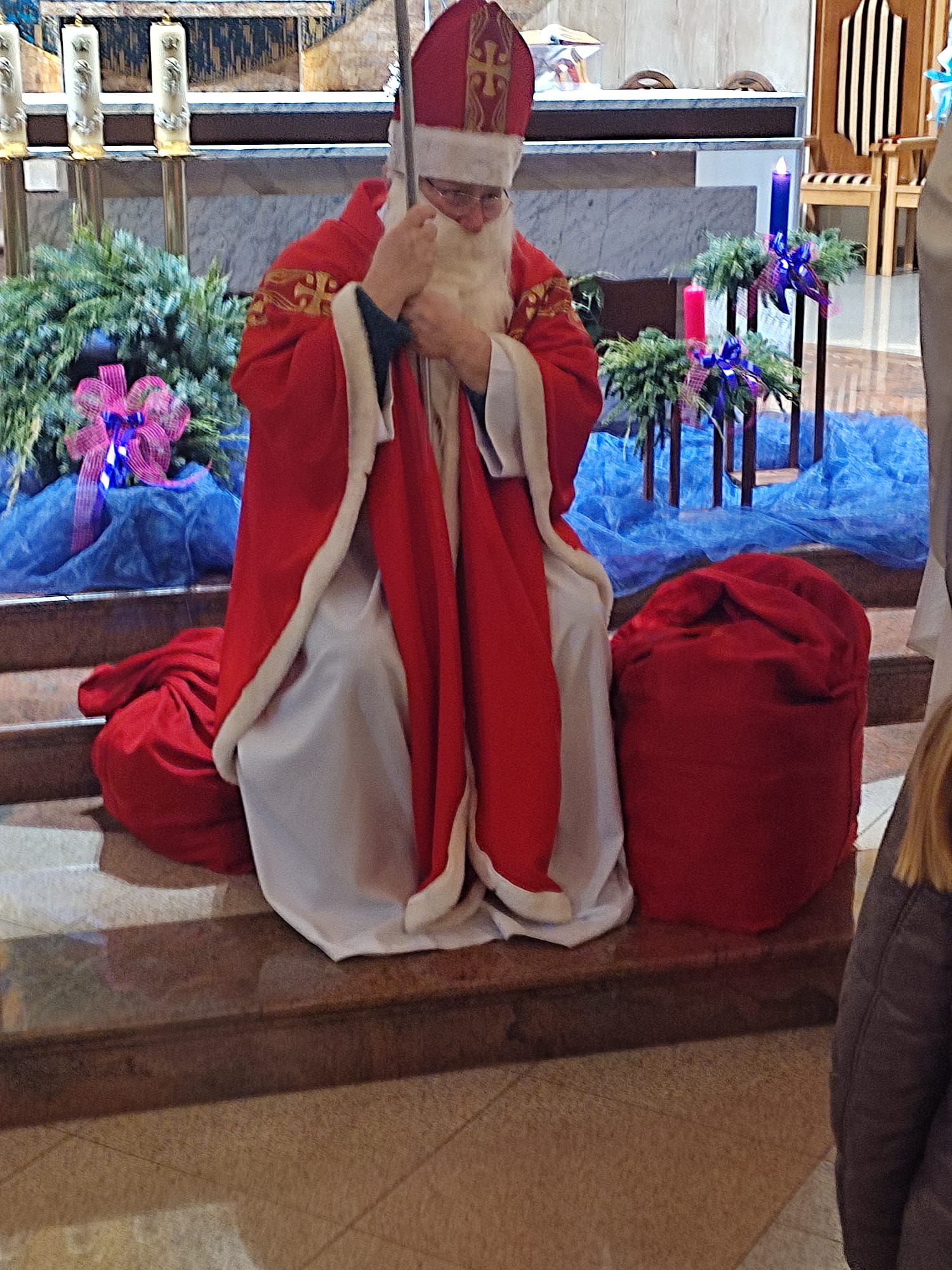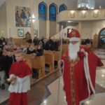 6 grudnia na zakończenie Mszy św. Roratniej przybył do kościoła szczególny gość – św. Mikołaj. Była to wielka radość dla dzieci, bo przyniósł ze sobą prezenty. Początkowo mówił, że prezenty są tylko dla grzecznych dzieci, ale ostatecznie podarunki od świętego otrzymały wszystkie dzieciaki. W sumie nasz gość rozdał 50 prezentów. Kiedy, w towarzystwie księdza proboszcza, św. Mikołaj rozdał prezenty, to powiedział, że trochę się postarzał, wzrok mu się popsuł, chodzi w okularach, bo każdego dnia wygląda dobrych, grzecznych i uczynnych dzieci. Głęboko wierzy – dodał – że na świecie jest wiele takich dzieci, dlatego przychodzi z prezentami, by zachęcić najmłodszych do jeszcze większej miłości Boga i człowieka.