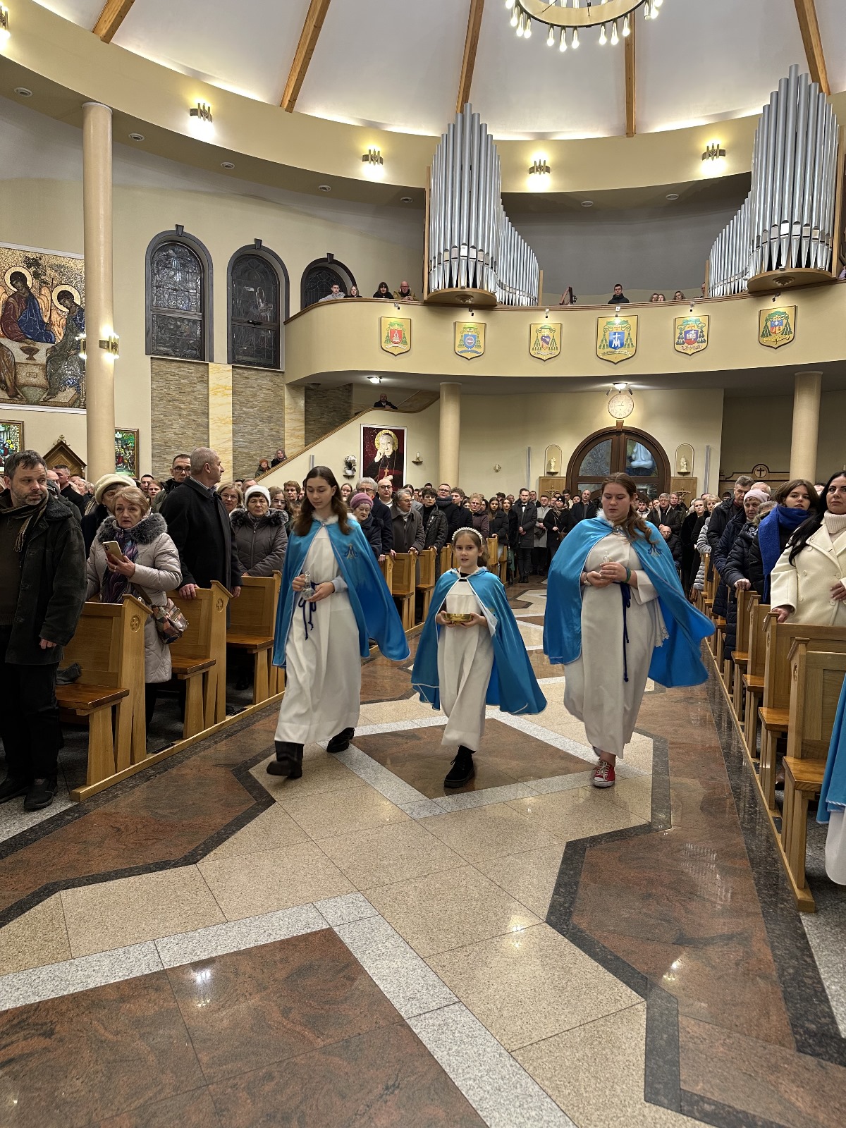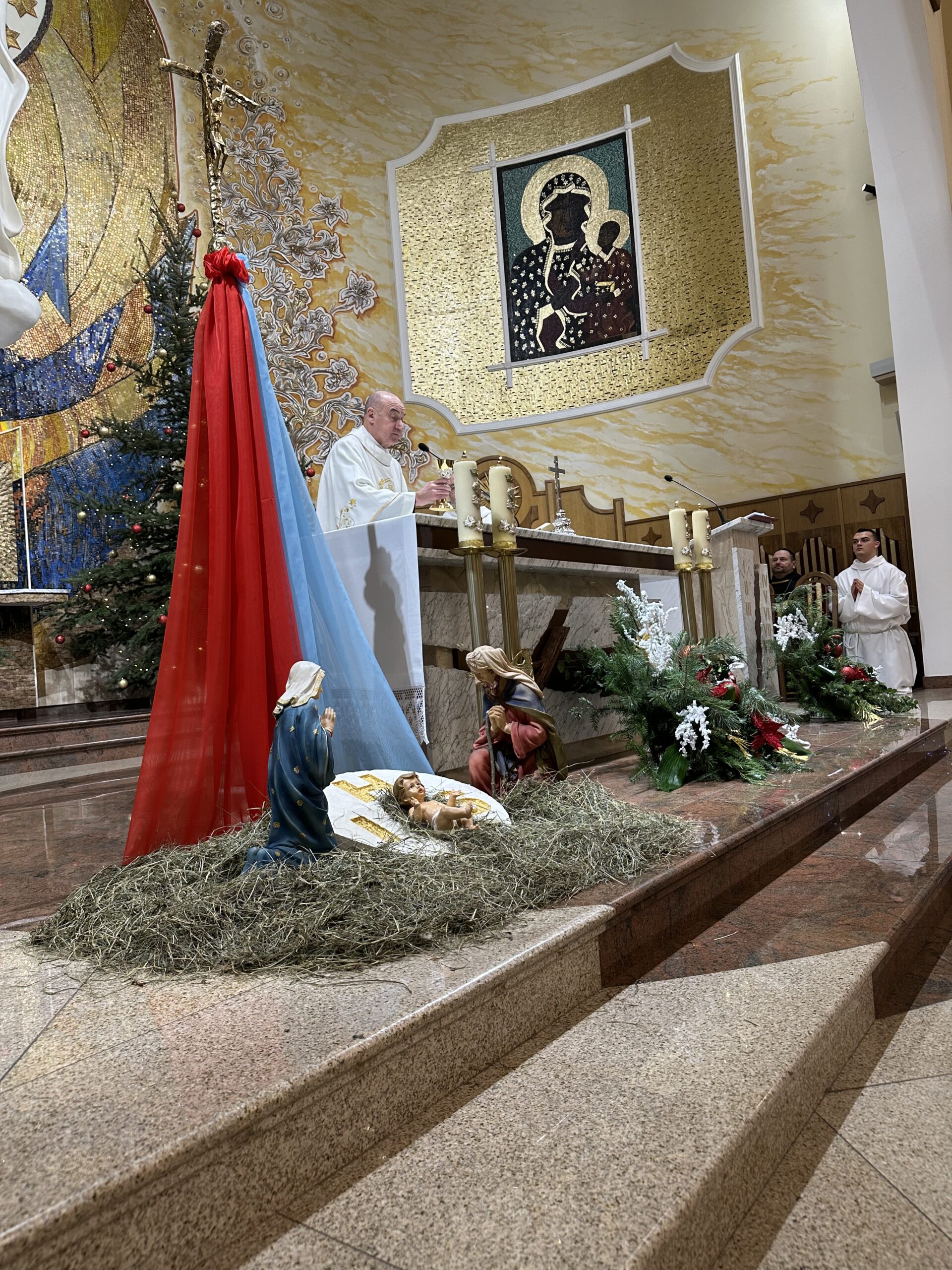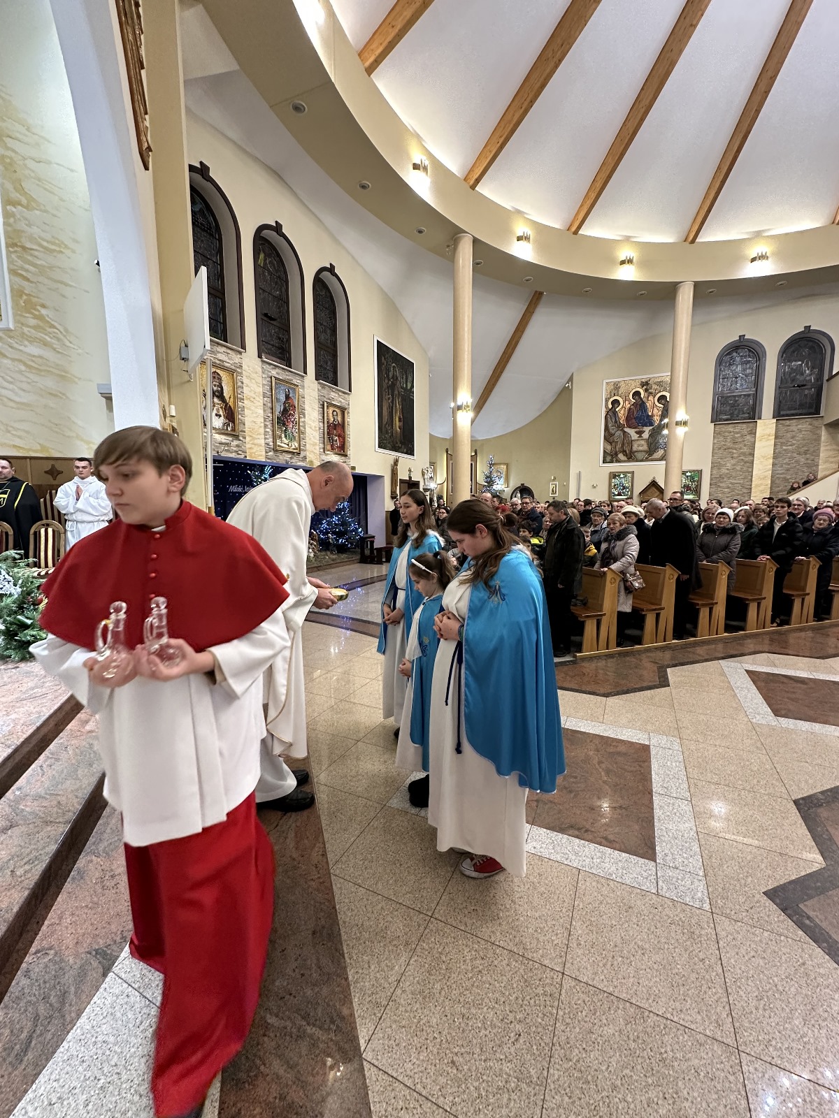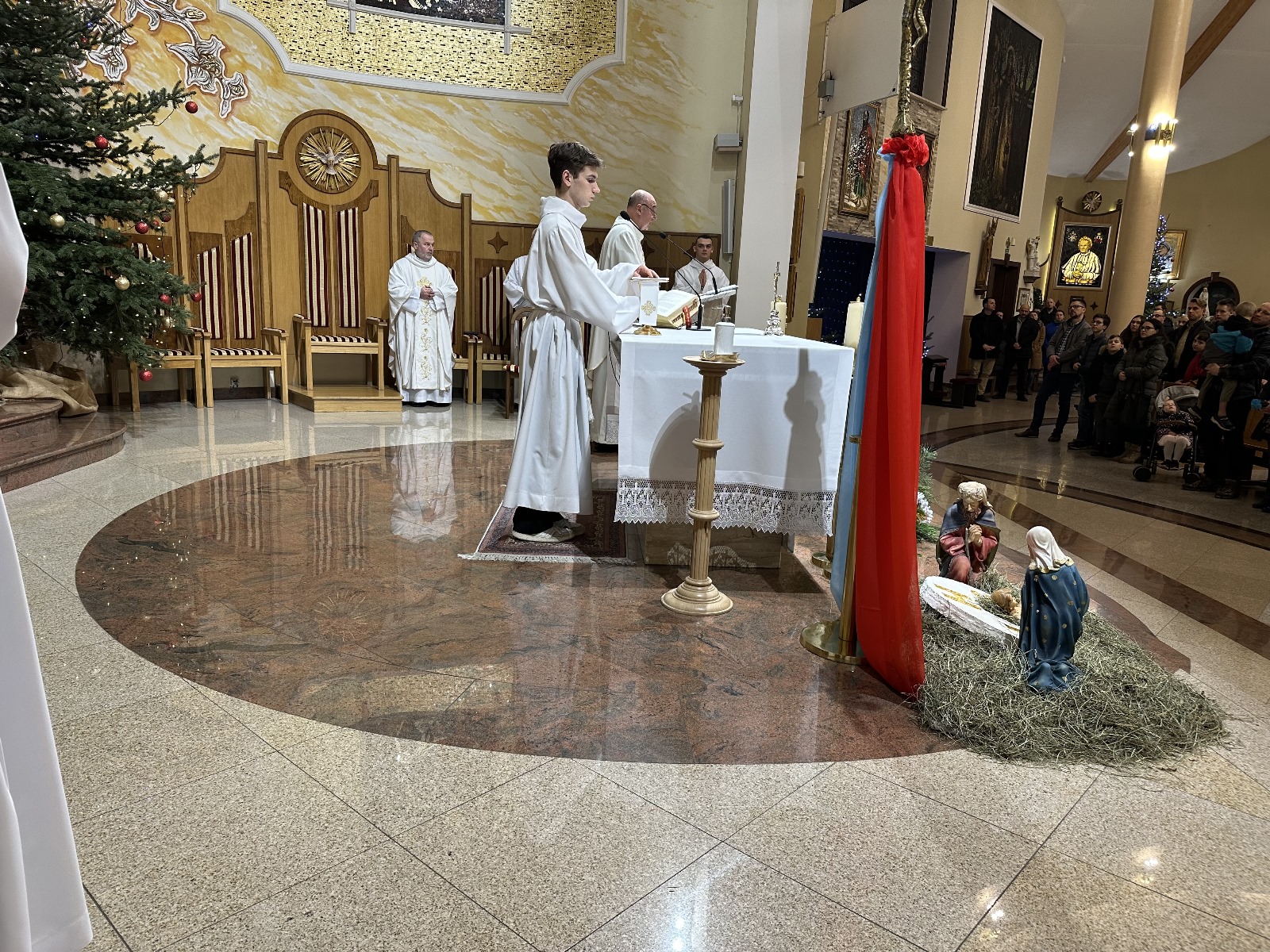 Uroczystą Mszą świętą, o godzinie 24.00, rozpoczęliśmy, w naszej wspólnocie parafialnej, świętowanie uroczystości Narodzenia Pańskiego. Mszy świętej przewodniczył i kazanie wygłosił, ksiądz proboszcz, prałat Tomasz Chciałowski. Dziękujemy wszystkim parafianom i gościom za uczestniczenie w tej liturgii. Dziękujemy ministrantom, bielankom i scholi za oprawę liturgiczną.