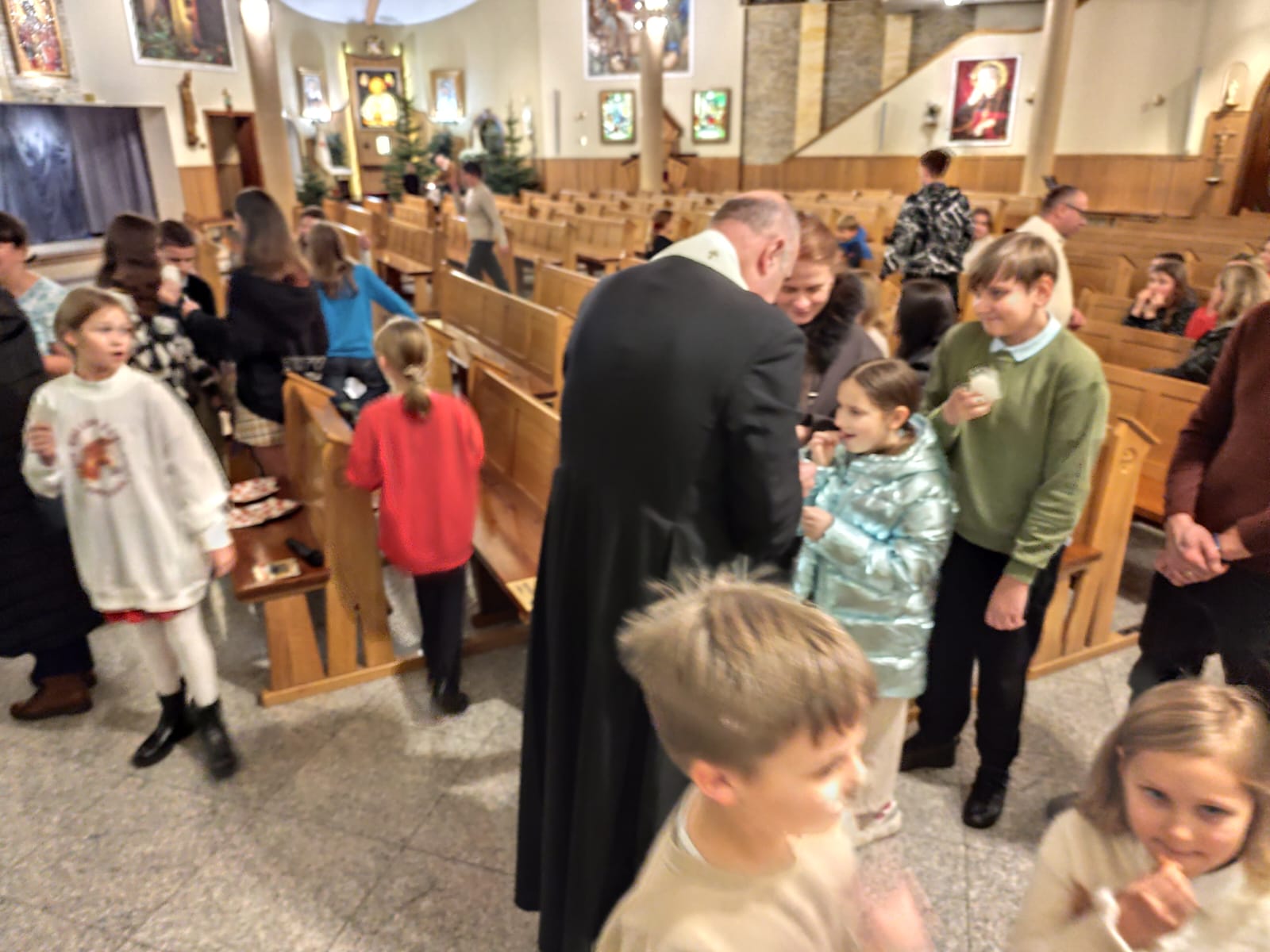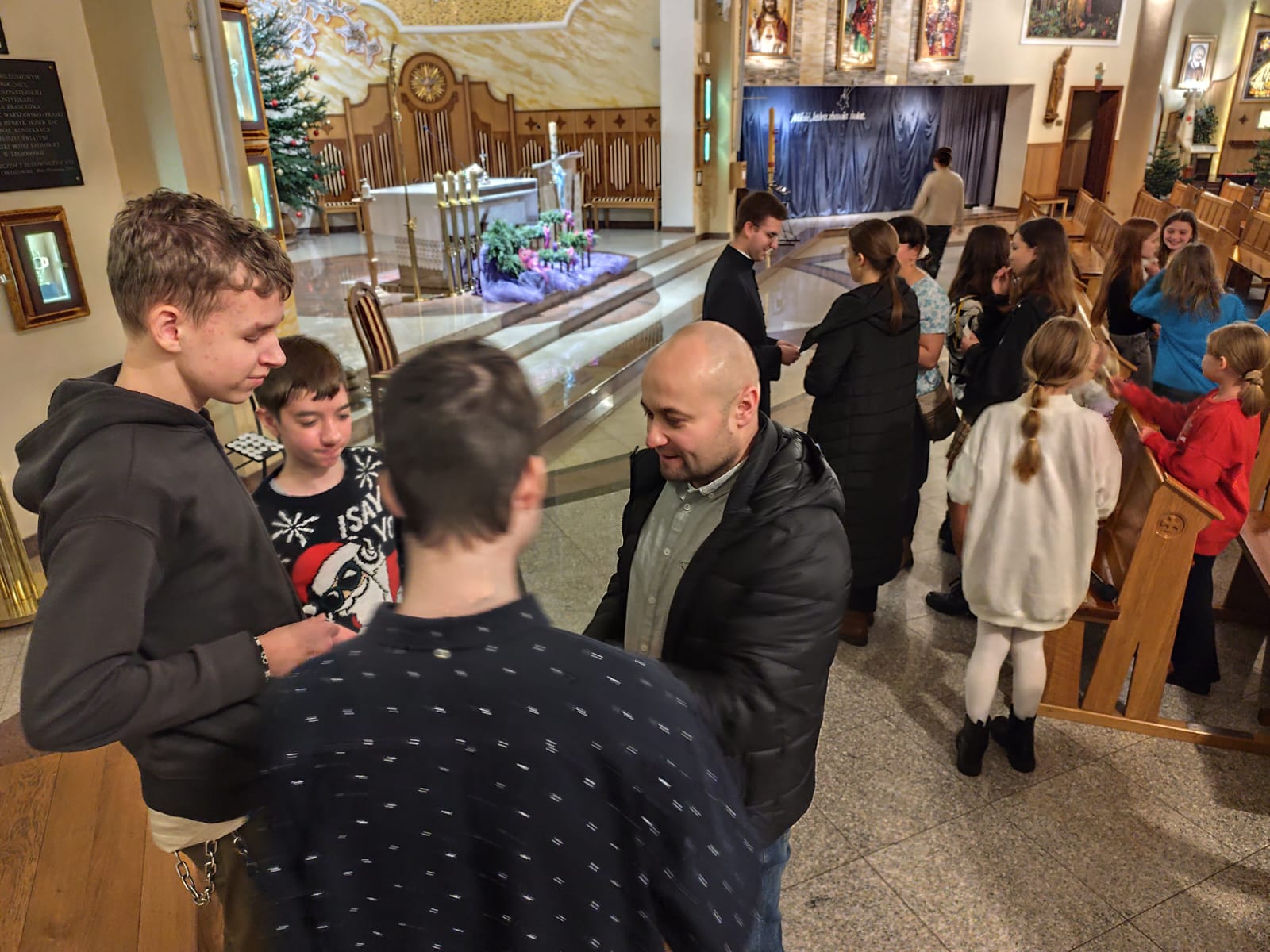 21 grudnia nasza służba liturgiczna: ministranci, lektorzy, bielanki i schola, spotkali się w kościele by złożyć sobie bożonarodzeniowe życzenia, podzielić się opłatkiem, a następnie, w salce pod zakrystią, cieszyli się wspólnym poczęstunkiem.