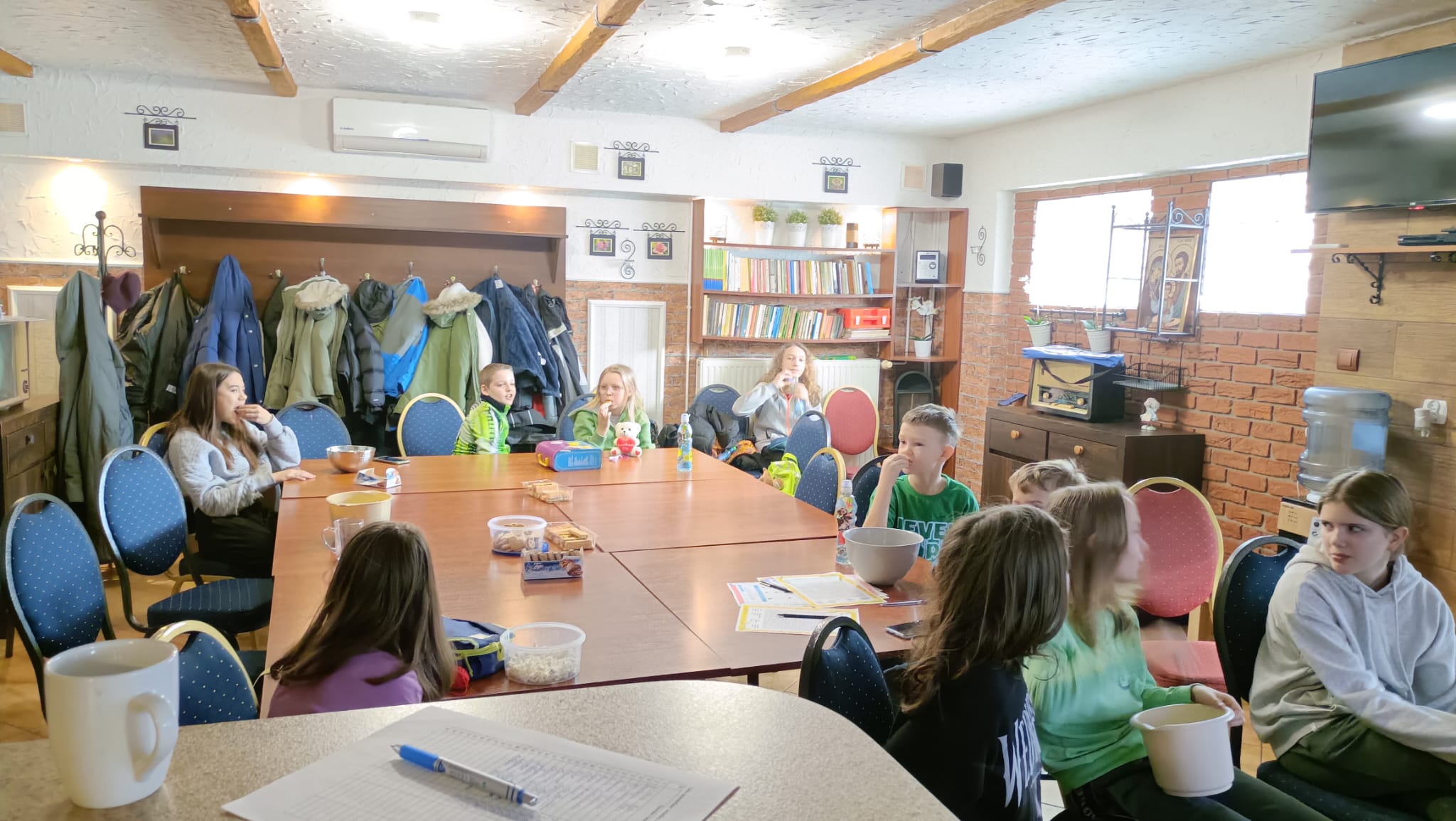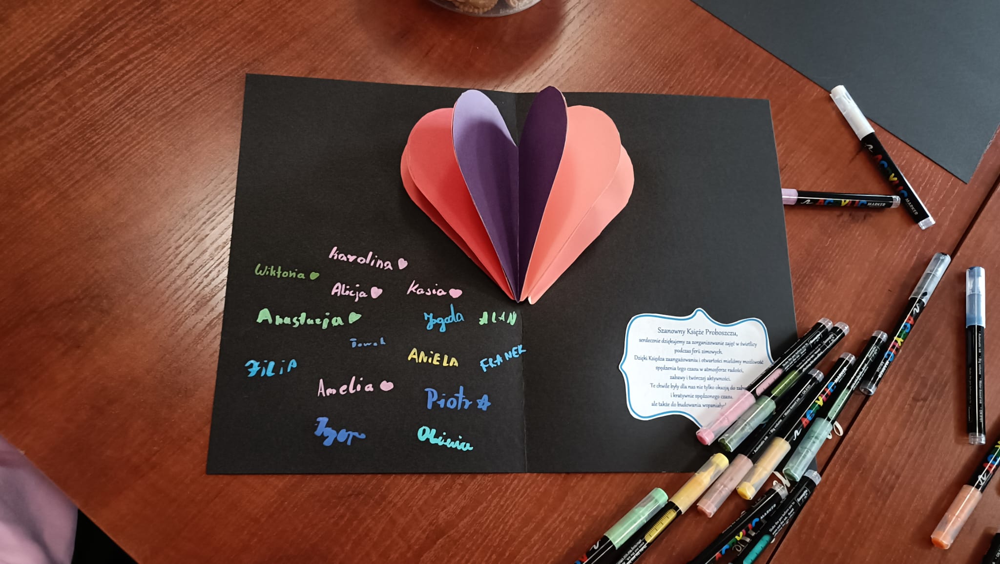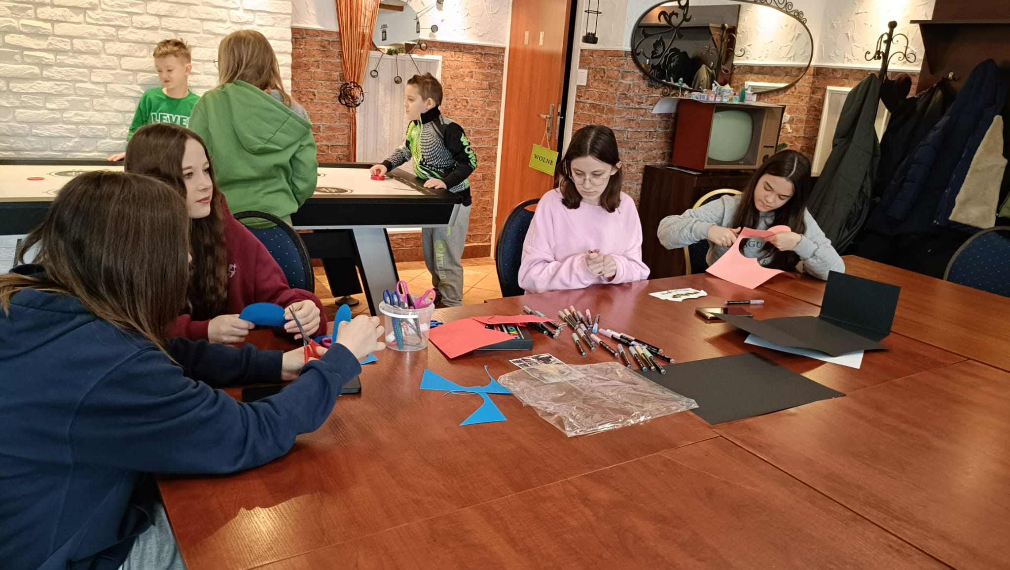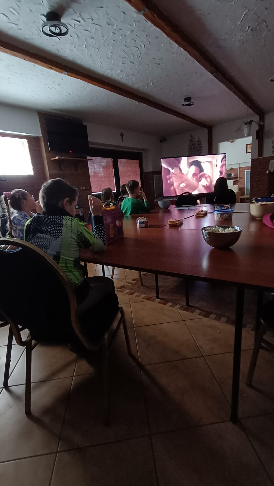 Ferie na świetlicy dobiegły końca, ale zanim to się stało, zdążyliśmy przeżyć wiele wspaniałych chwil. W czwartek odwiedziliśmy centrum rozrywki Hula Kula, gdzie bawiliśmy się na sali zabaw i rozegraliśmy emocjonujące partie kręgli. W piątek zakończyliśmy ferie wspólnym oglądaniem filmu „Dzień na tak”, zajadając się pysznym popcornem. Nie zapomnieliśmy również podziękować księdzu proboszczowi za zorganizowanie tych wyjątkowych zajęć – wykonaliśmy własnoręcznie kartkę z naszym zdjęciem i podpisami, by wyrazić naszą wdzięczność. Te ferie na świetlicy na długo pozostaną w naszej pamięci!