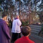 2 kwietnia jest dla nas datą szczególną, to właśnie tego dnia w 2005 roku, odszedł do Pana Papież Polak. Podczas Mszy świętej o godzinie 18.00, modliliśmy się w za wstawiennictwem tego wyjątkowego świętego. Chcieliśmy, w sposób szczególny, podziękować Panu Bogu za jego pontyfikat, dorobek intelektualny, wielką pracę, jaką wykonał na rzecz Kościoła i całego świata. Dziękowaliśmy za świadectwo jego życia i wiary. Po Mszy świętej odmówiliśmy różaniec za jego wstawiennictwem, aby potem ruszyć w procesji do pomnika świętego Jana Pawła II, który znajduje się przed naszą świątynią. W kacie wdzięczności złożyliśmy pod pomnikiem kwiaty oraz zapaliliśmy znicze by nasza pamięć o nim pozostała zawsze żywa.