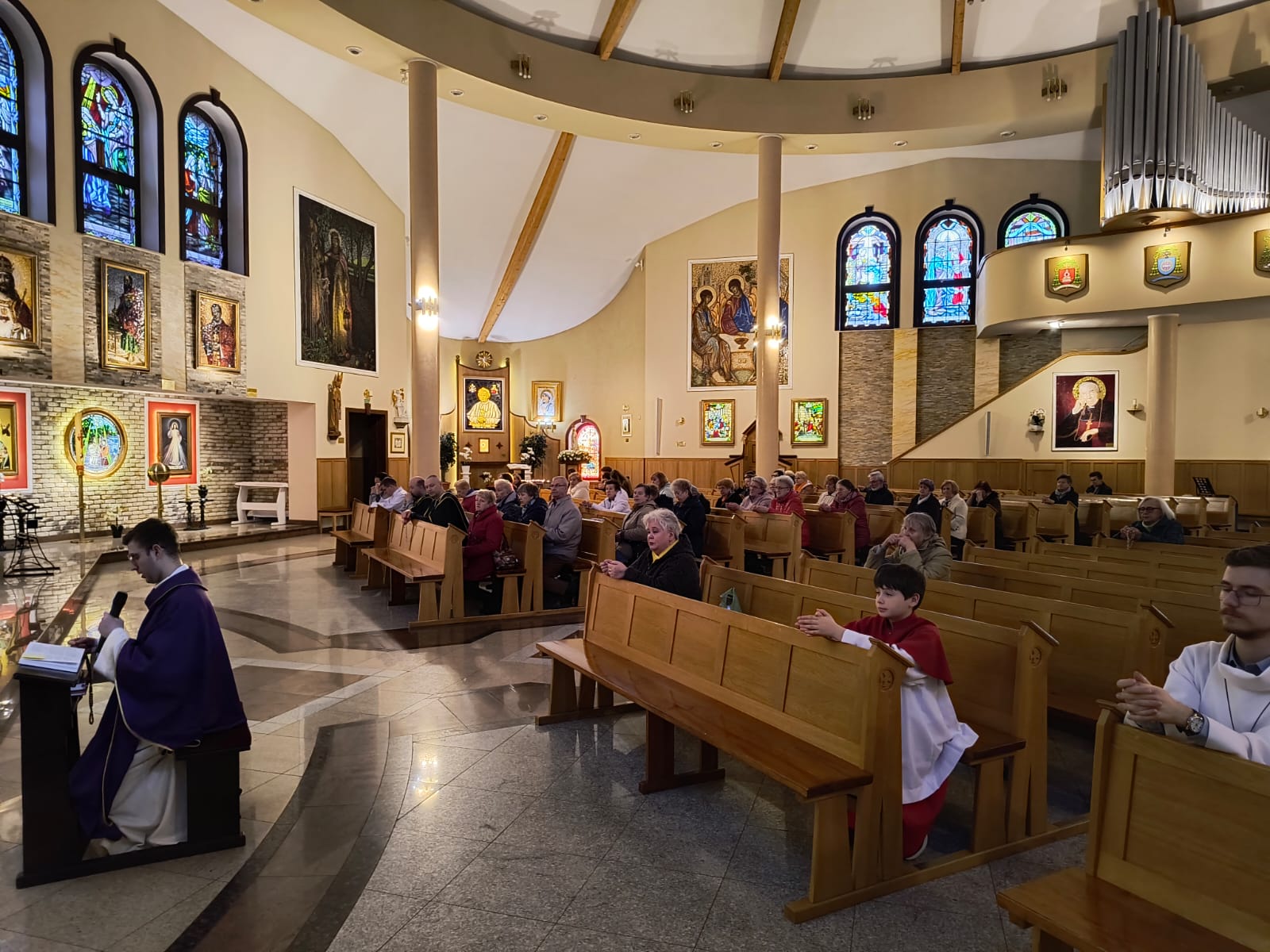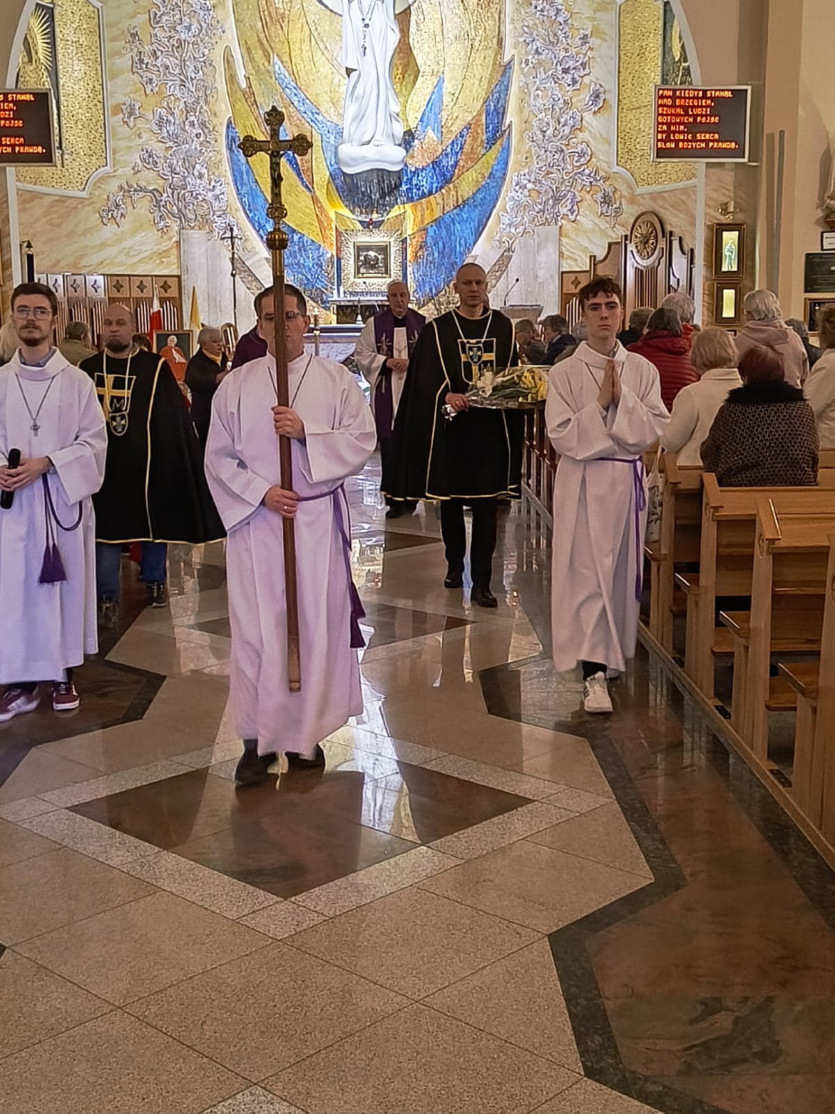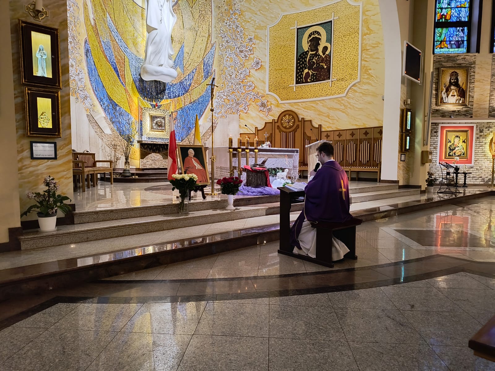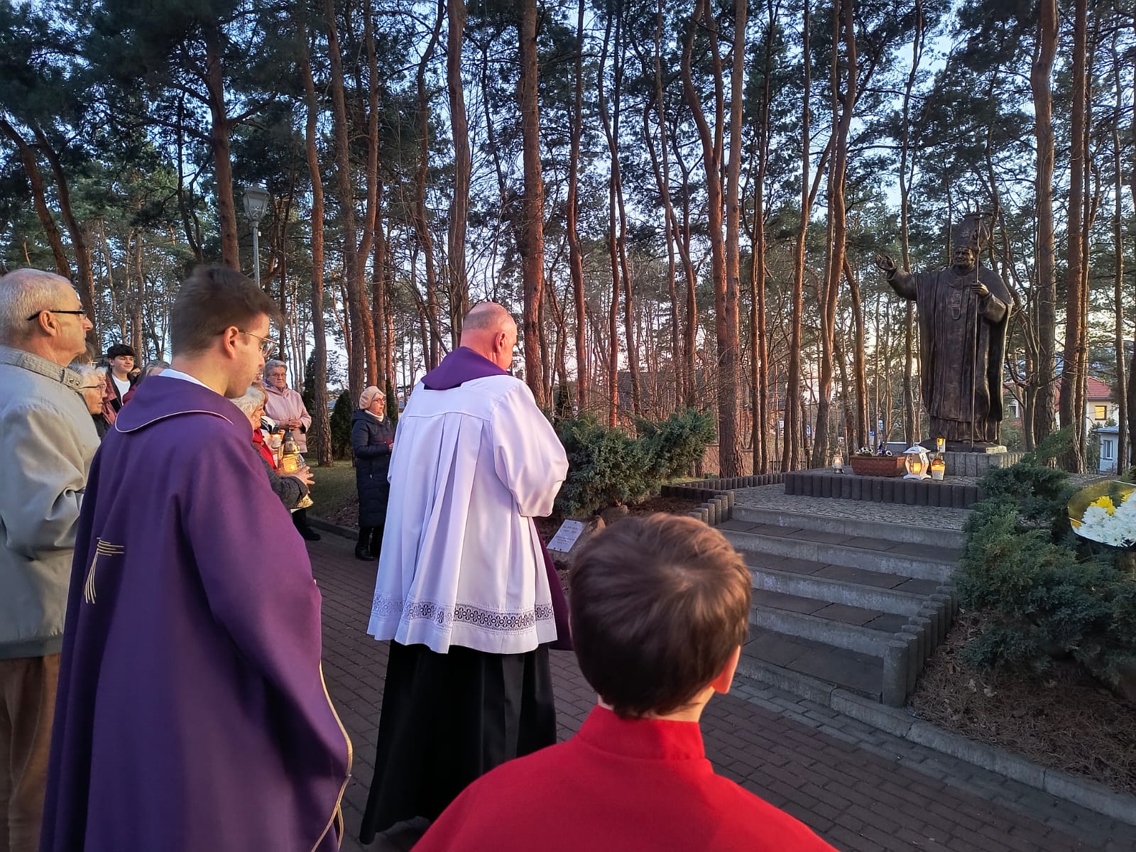 2 kwietnia jest dla nas datą szczególną, to właśnie tego dnia w 2005 roku, odszedł do Pana Papież Polak. Podczas Mszy świętej o godzinie 18.00, modliliśmy się w za wstawiennictwem tego wyjątkowego świętego. Chcieliśmy, w sposób szczególny, podziękować Panu Bogu za jego pontyfikat, dorobek intelektualny, wielką pracę, jaką wykonał na rzecz Kościoła i całego świata. Dziękowaliśmy za świadectwo jego życia i wiary. Po Mszy świętej odmówiliśmy różaniec za jego wstawiennictwem, aby potem ruszyć w procesji do pomnika świętego Jana Pawła II, który znajduje się przed naszą świątynią. W kacie wdzięczności złożyliśmy pod pomnikiem kwiaty oraz zapaliliśmy znicze by nasza pamięć o nim pozostała zawsze żywa.