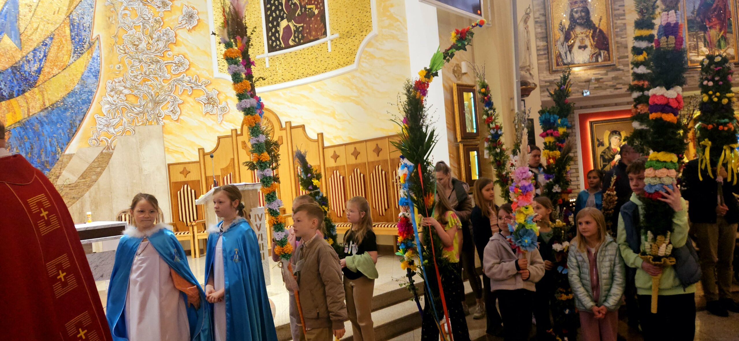 Niedziela Palmowa to czas, kiedy chcemy z gałązkami palmowymi iść za Jezusem Chrystusem. Z tej okazji, w naszej parafii, ogłosiliśmy konkurs na największą i najładniejszą palemkę, w którym do wygrania są cenne nagrody min. smartfon, smartwatch i wiele innych. Prace zostały przygotowane przez dzieci i młodzież i będą nam towarzyszyły przez najbliższy czas, zdobiąc naszą świątynię. Prac jest ponad dwadzieścia. Wyniki konkursu podamy w Niedzielę Miłosierdzia, po Mszy o godzinie 11.00. Organizatorami konkursu i sponsorami nagród jest nasza parafia, oraz Legionowskie Stowarzyszenie AMICUS.