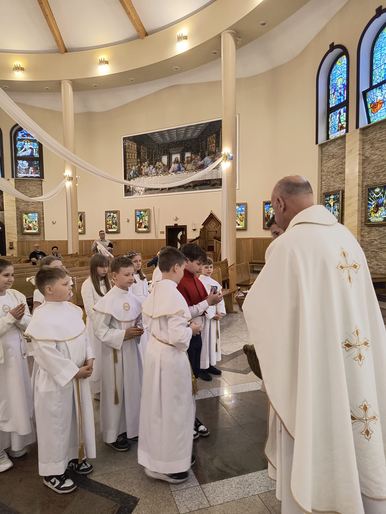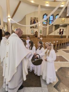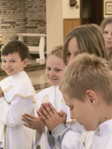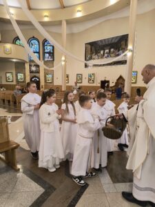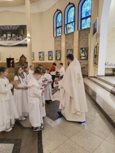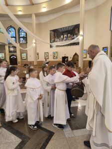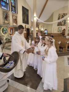 Od niedzieli do środy, dzieci, które przystąpiły do Komunii świętej rocznicowej, przeżywały biały tydzień. Miał on im przypomnieć o tym, co przeżywali rok temu, jak po raz pierwszy przyjęli Pana Jezusa pod postacią Chleba. Każdy dzień tego białego tygodnia był wyjątkowy, miał swoją treść mającą ukazać, jak wiele zawdzięczamy Panu Jezusowi. W poniedziałek dzieci odnawiały przyrzeczenia chrzcielne, we wtorek przeżywały dzień misyjny a środa była dniem podsumowania tych wszystkich treści. Dziękujemy tym wszystkim, którzy podjęli trud uczestnictwa w białym tygodniu, dając dowód temu, że przyjaźń z Panem Bogiem, naprawdę jest dla nich ważna i należy się o nią troszczyć.
