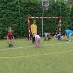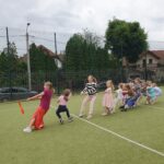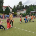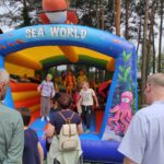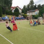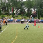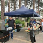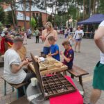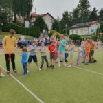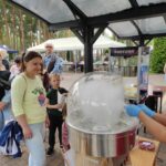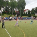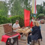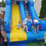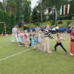 Nie zabrakło również stoisk kulinarnych (grochówka, kiełbaski, kaszanka, pizzerki) i oczywiście słodkości (wata cukrowa, popcorn, pączki, drożdżówki, lody, kawa i herbata). Dzieci z radością korzystały z dmuchańców – zjeżdżalni i trampolin, a na boisku rozgrywały się konkursy sportowe, w których można było zdobyć dyplomy i nagrody.