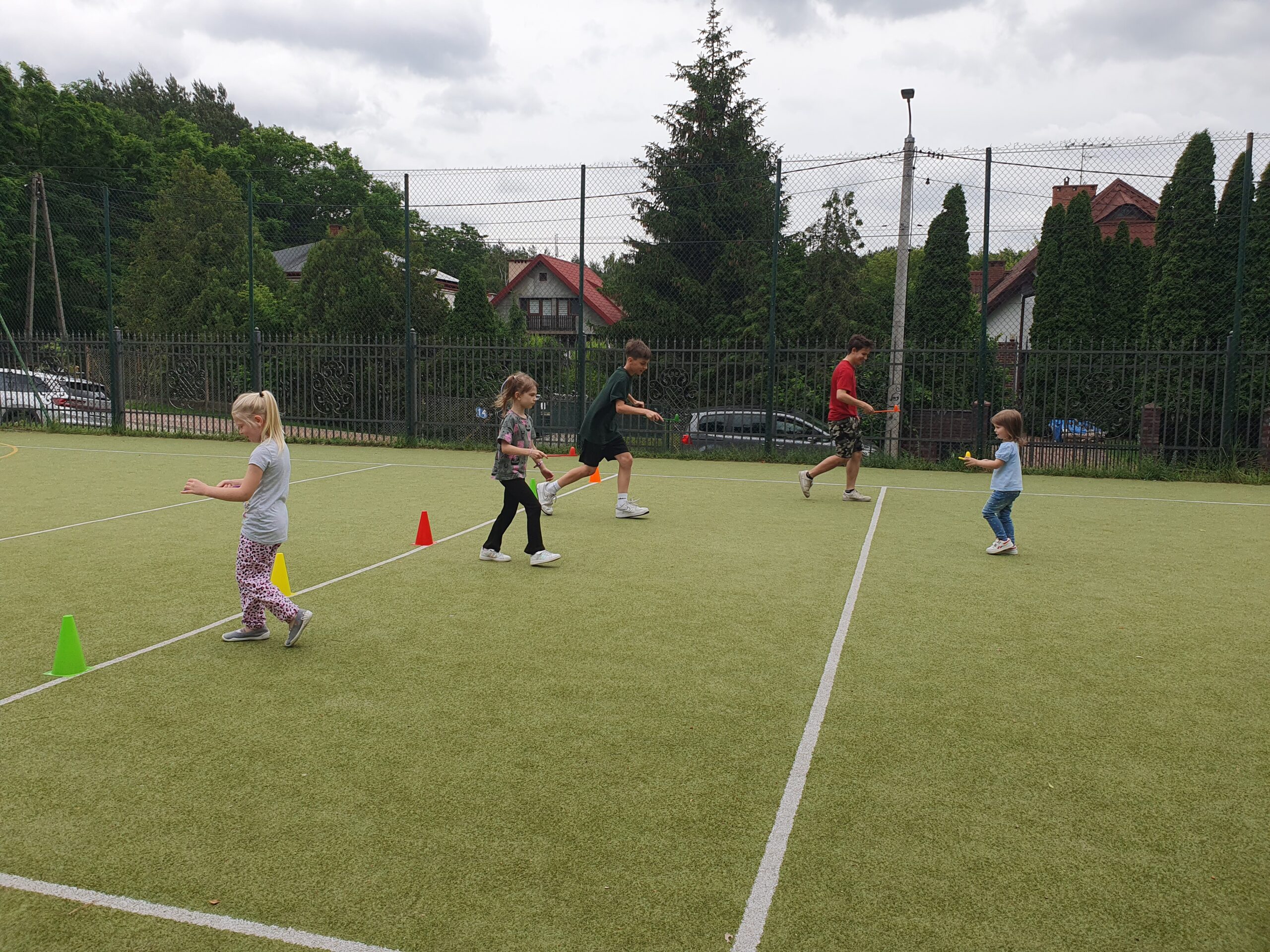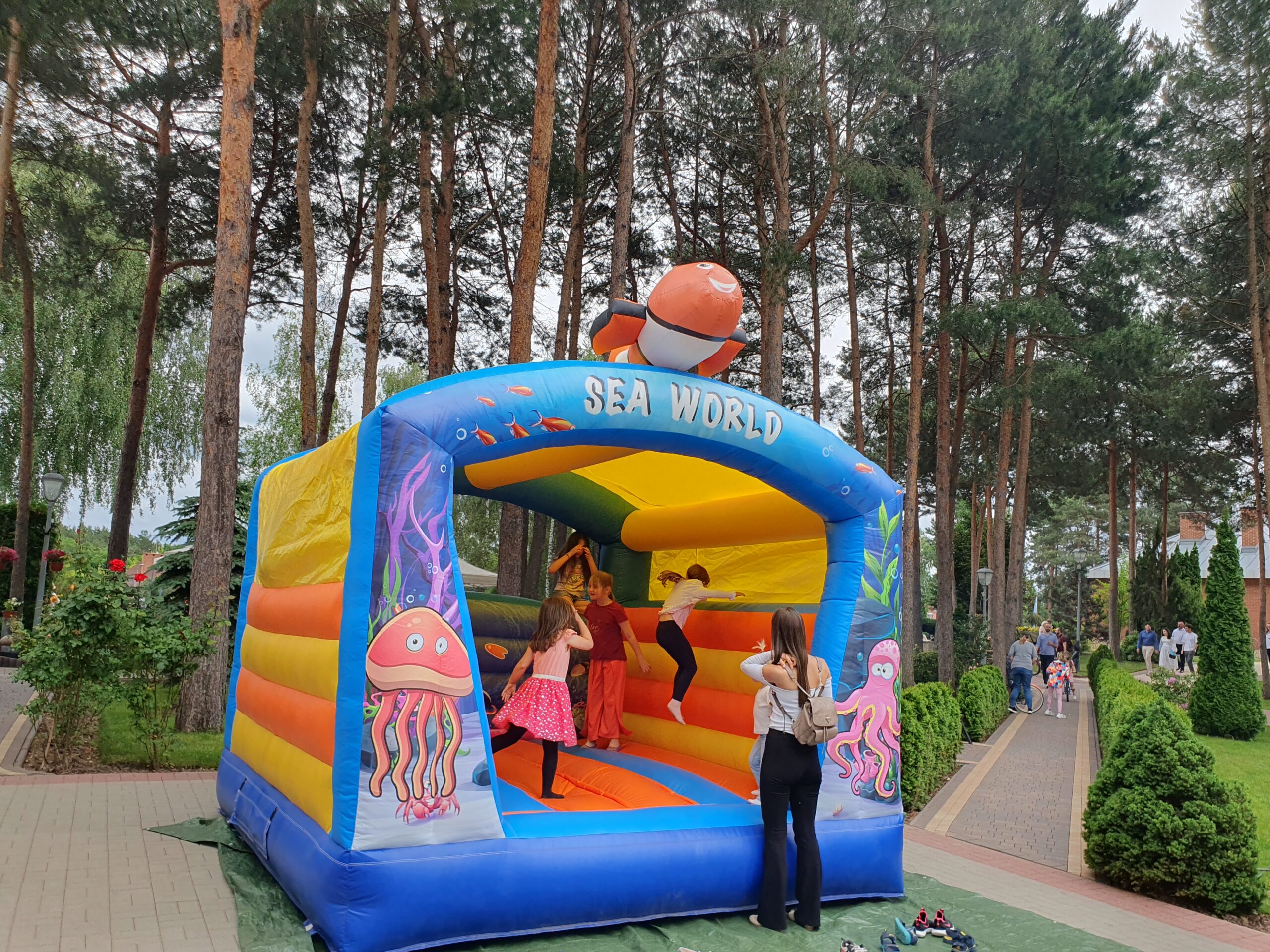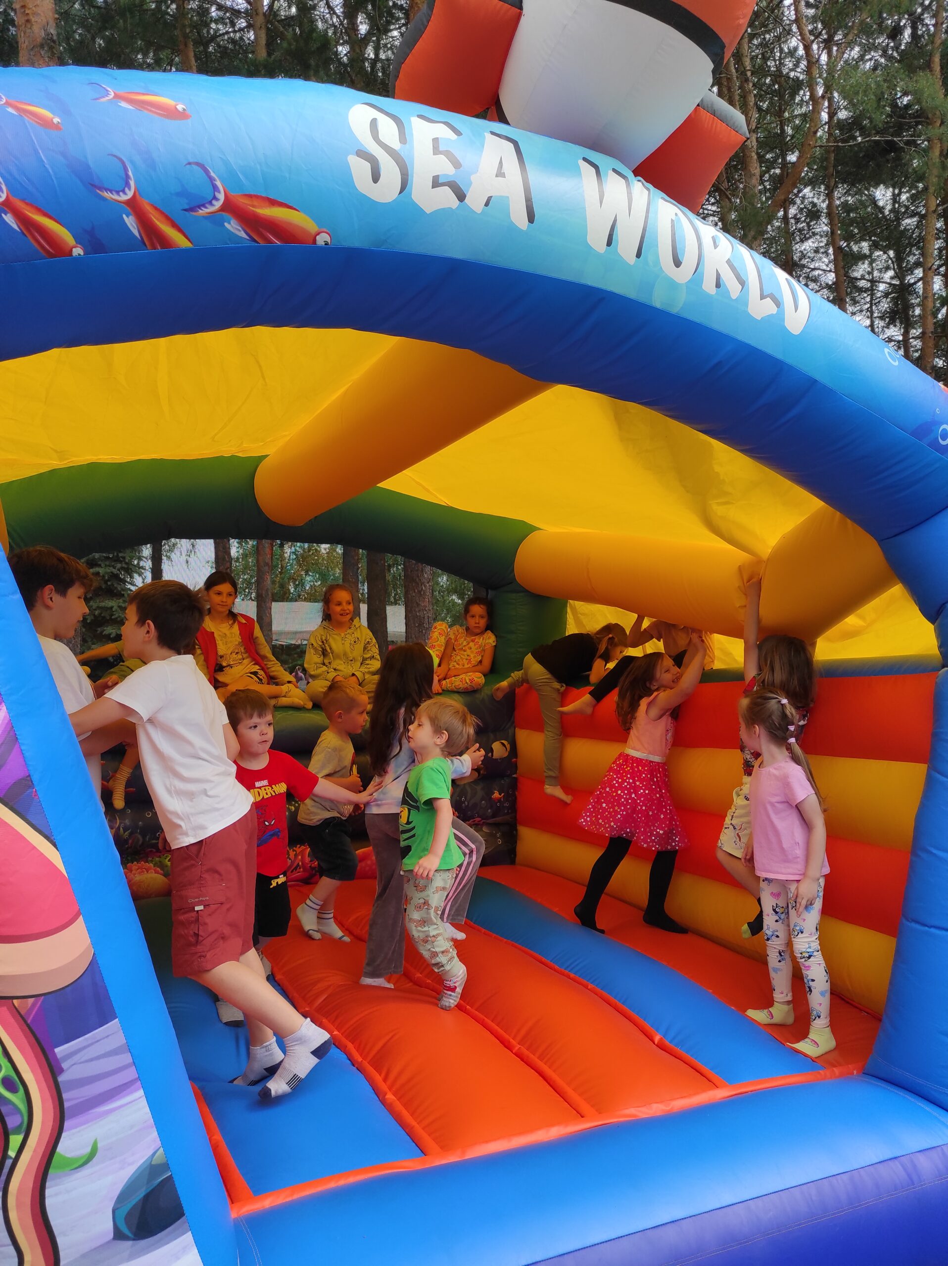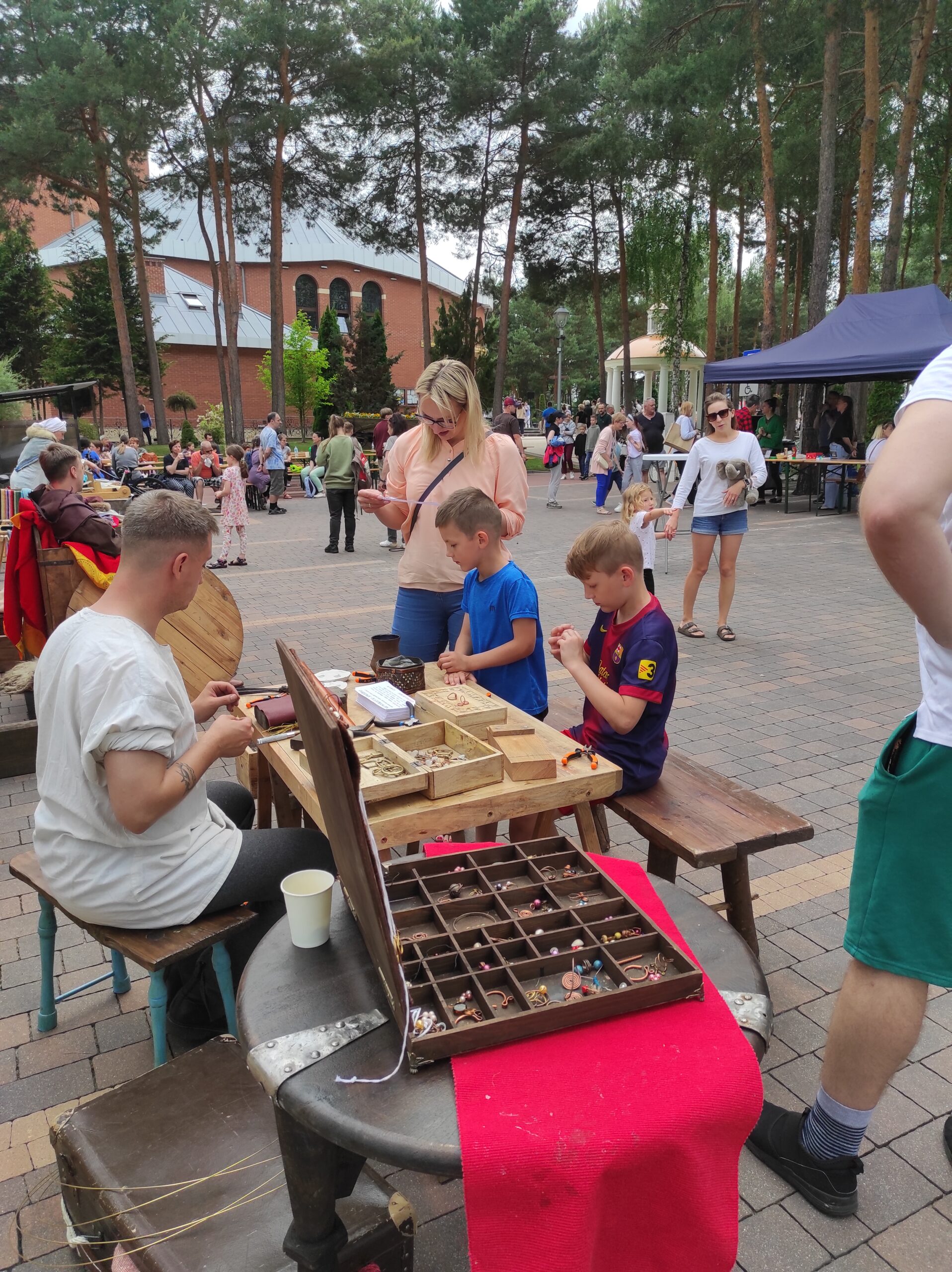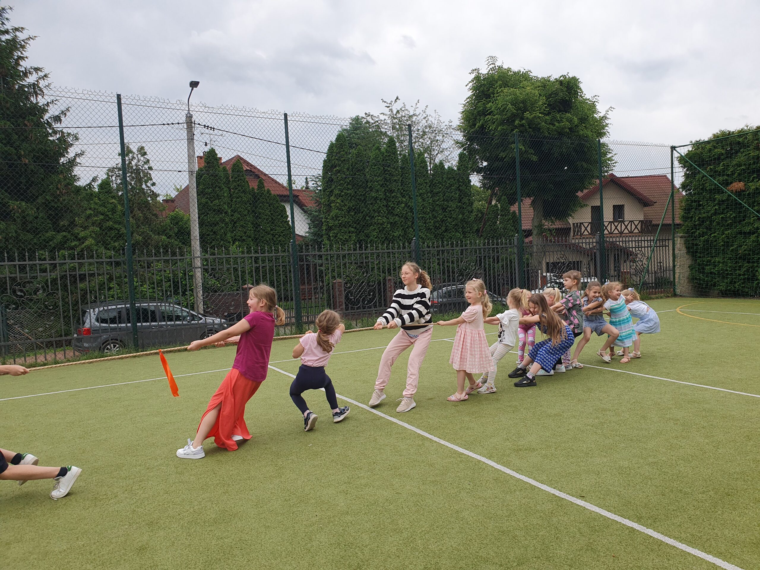 Nie zabrakło również stoisk kulinarnych (grochówka, kiełbaski, kaszanka, pizzerki) i oczywiście słodkości (wata cukrowa, popcorn, pączki, drożdżówki, lody, kawa i herbata). Dzieci z radością korzystały z dmuchańców – zjeżdżalni i trampolin, a na boisku rozgrywały się konkursy sportowe, w których można było zdobyć dyplomy i nagrody.