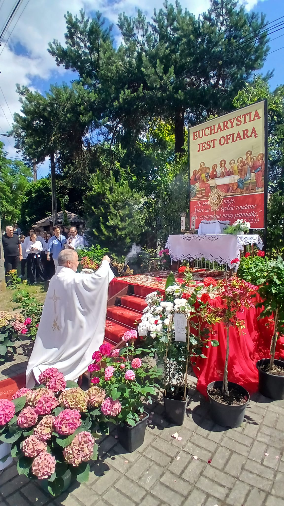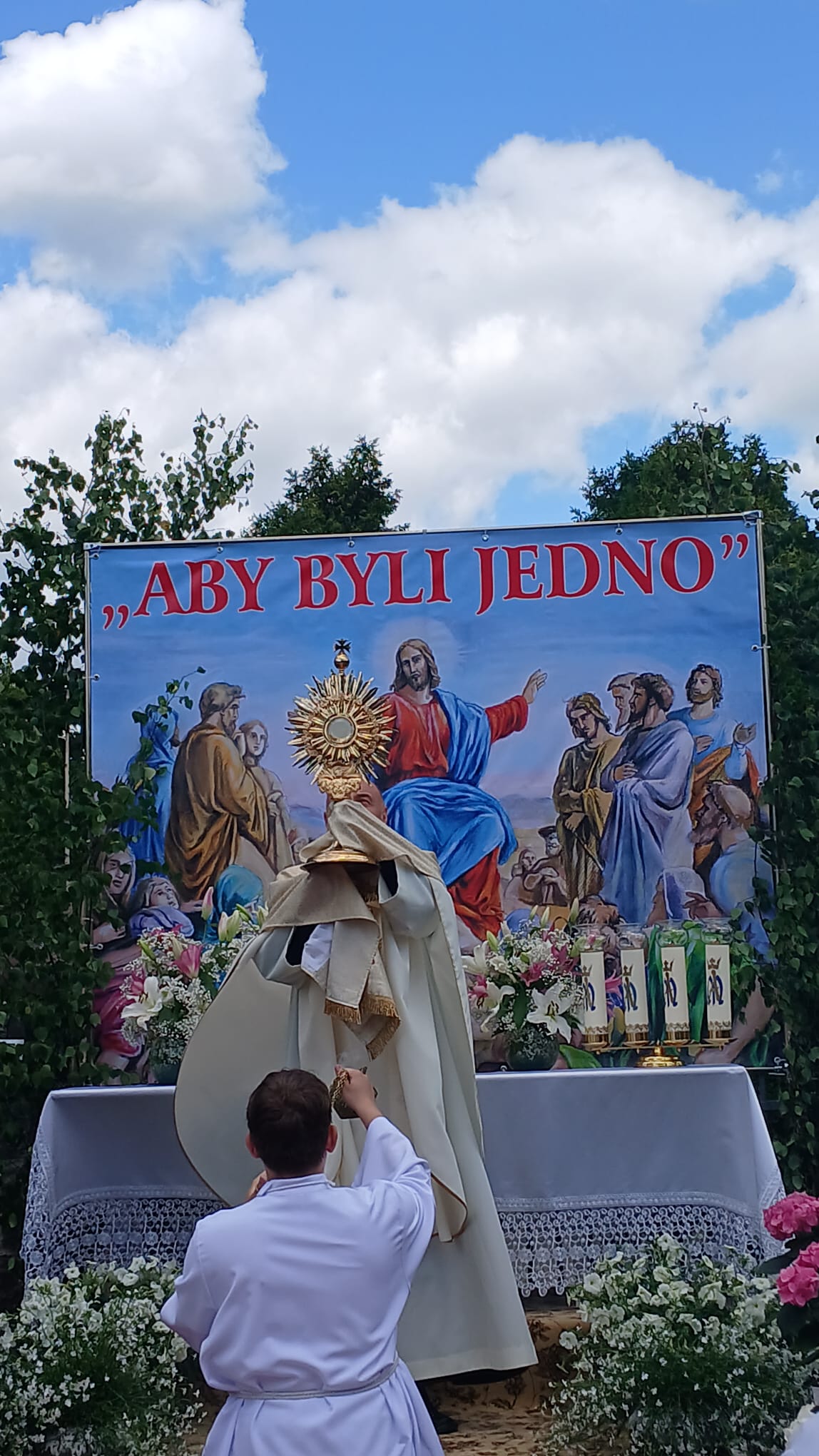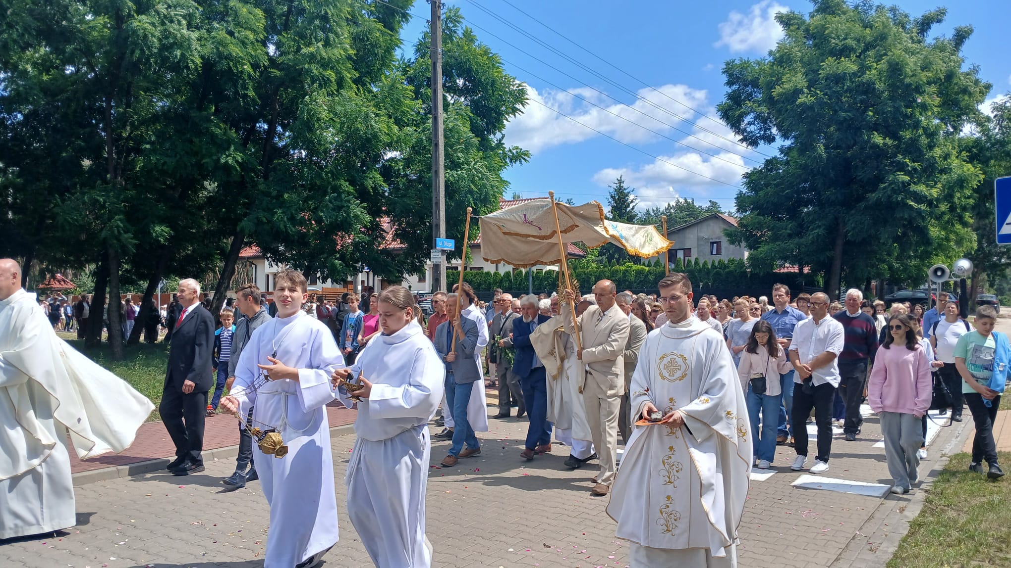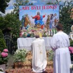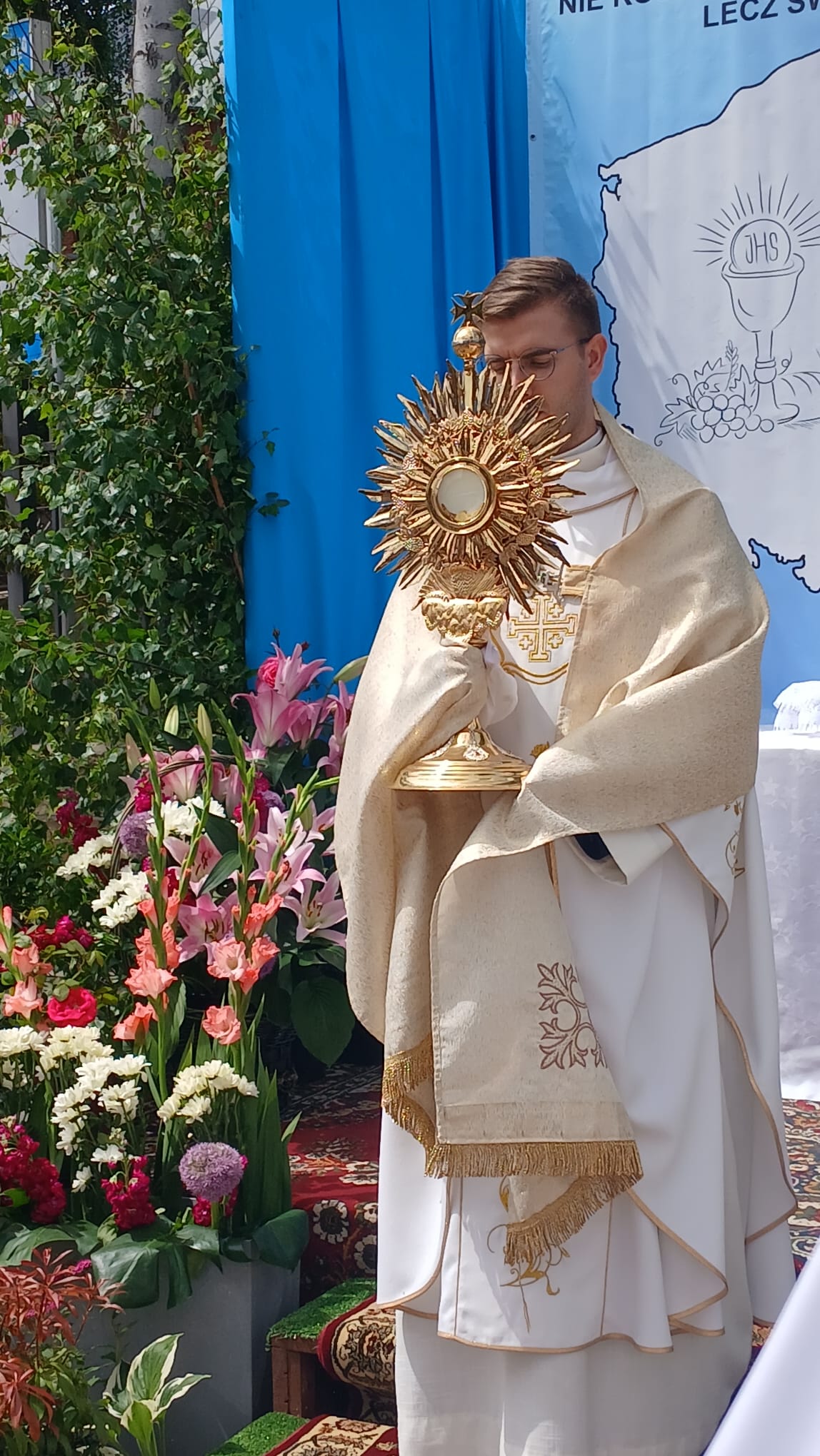 Uroczystość Najświętszego Ciała i Krwi Chrystusa, czyli potocznie, Boże Ciało, to wyjątkowy czas w ciągu roku. Dziękujemy Panu Jezusowi, że zostawił się nam pod postaciami chleba i wina. Chcemy w procesji eucharystycznej iść za Nim przechodząc ulicami naszej parafii, obok naszych domów i mieszkań. Pokazujemy za kim chcemy iść w naszym życiu. Dziękujemy wszystkim tym, którzy przyczynili się do wyjątkowego przeżycia tego czasu. Dziękujemy przede wszystkim tym, którzy przygotowali cztery ołtarze, przy których została odczytana Ewangelia i mogliśmy adorować Jezusa Chrystusa w Najświętszym Sakramencie. Każdy z ołtarzy został przygotowany i udekorowany przez przedstawicieli poszczególnych rejonów naszej parafii. Dziękujemy tym, którzy poświecili swój czas i siły do ich przygotowania. Dziękujemy Służbie Liturgicznej naszej parafii: ministrantom, lektorom, bielankom. Dziękujemy naszej parafialnej scholi Fatima Canta wraz z Panią Anitą Rodak oraz Państwu Stefańskim za prowadzenie śpiewu podczas procesji. Dziękujemy tym wszystkim, którzy nieśli baldachim oraz podtrzymywali kapłana niosącego Najświętszy Sakrament, tym którzy nieśli chorągwie, poduszki oraz różaniec. Dziękujemy Straży Miejskiej za zabezpieczanie trasy naszej procesji. Dziękujemy wszystkim parafianom i gościom za to, że idąc w procesji pokazali swoją wiarę w obecność Jezusa Chrystusa pośród nas.
