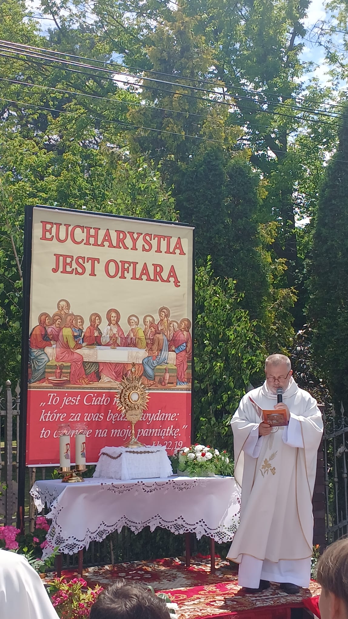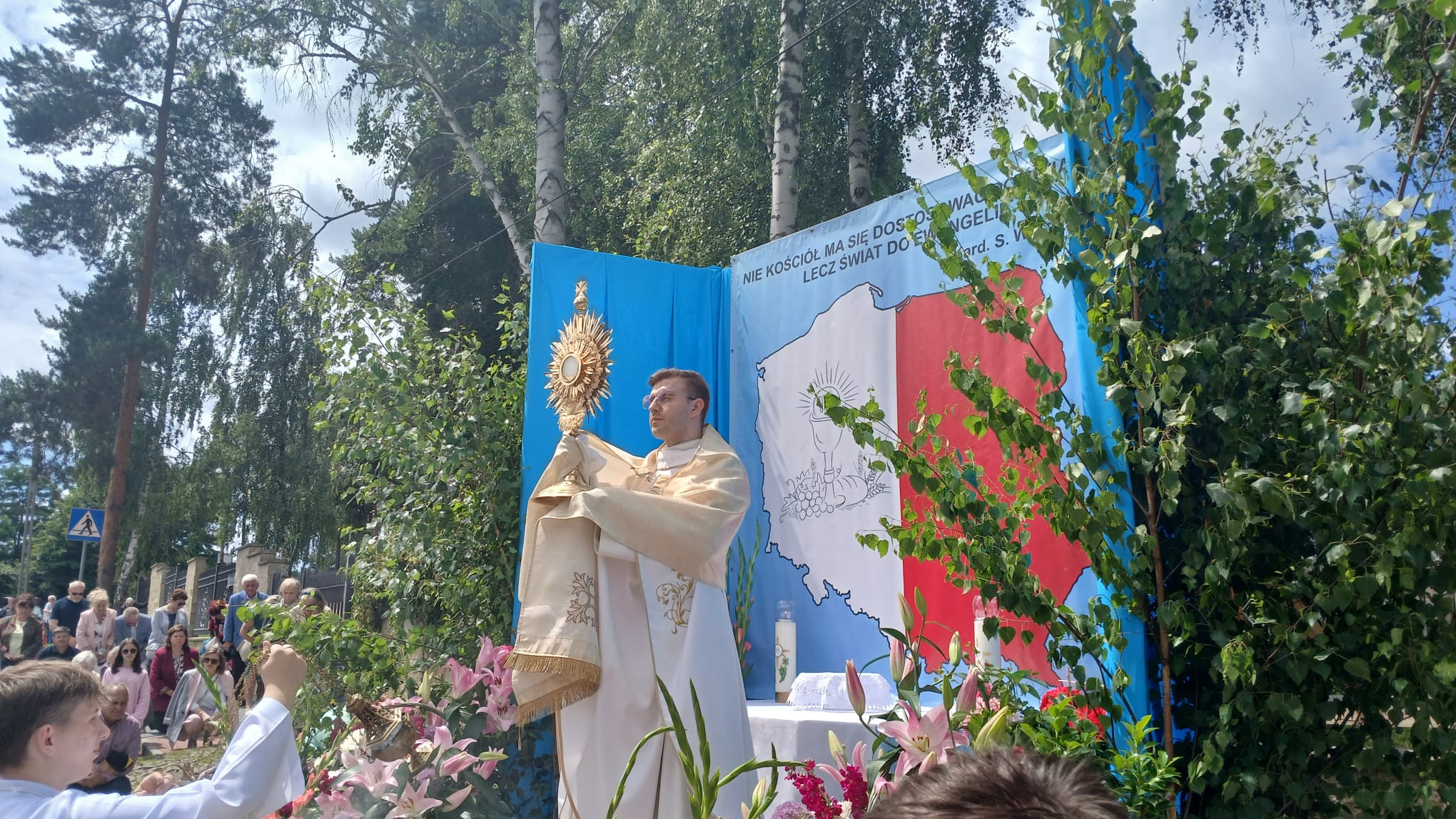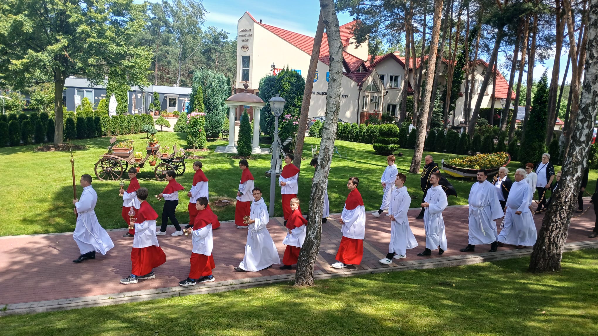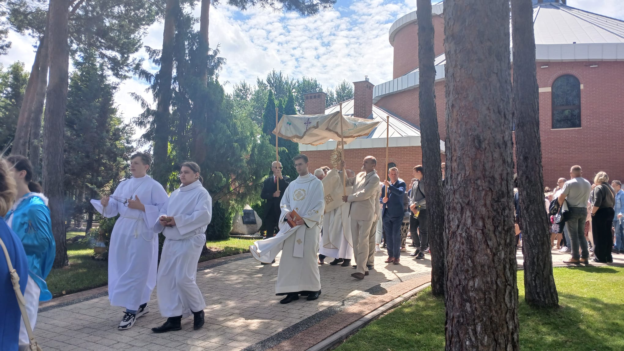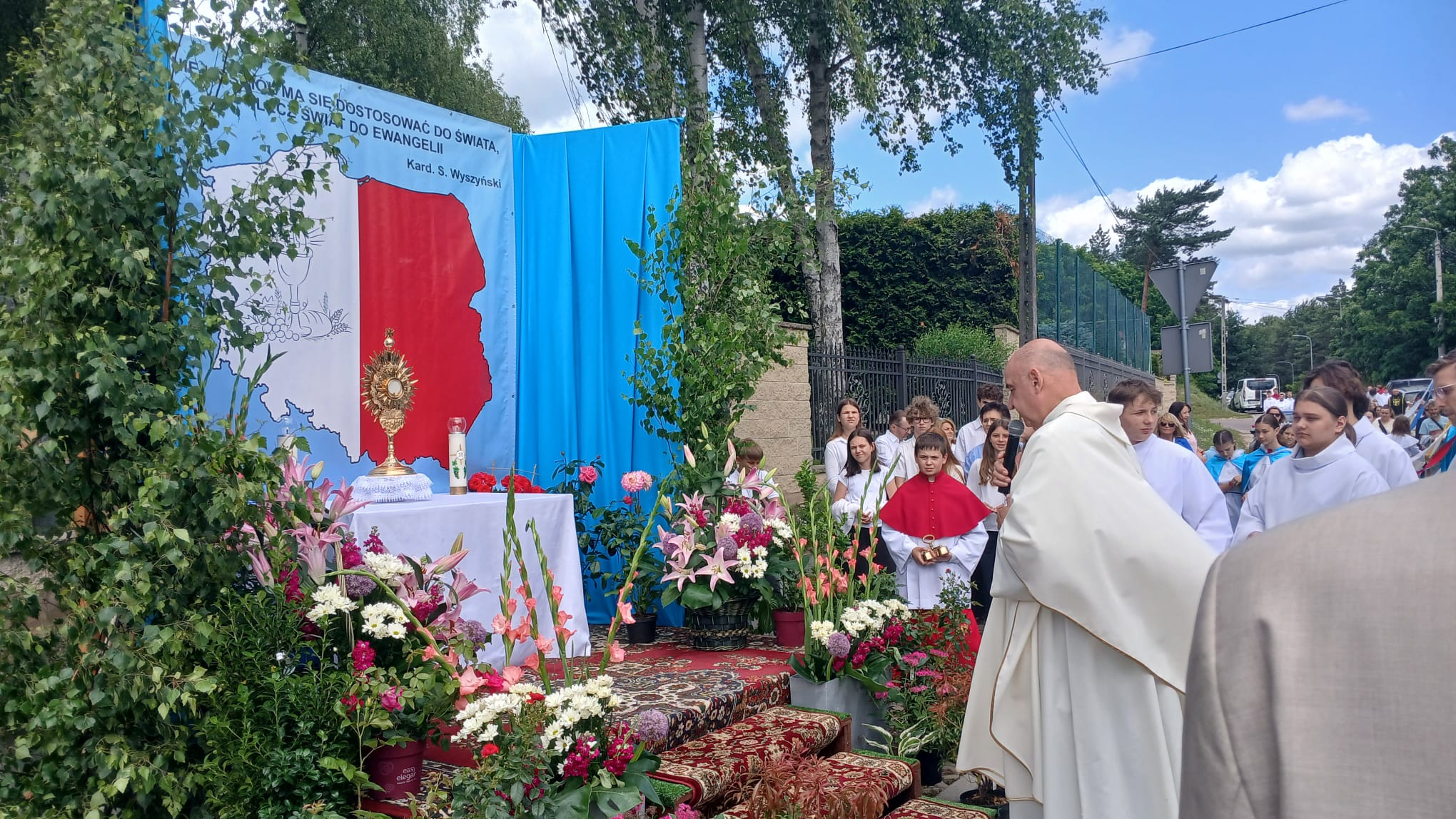 Uroczystość Najświętszego Ciała i Krwi Chrystusa, czyli potocznie, Boże Ciało, to wyjątkowy czas w ciągu roku. Dziękujemy Panu Jezusowi, że zostawił się nam pod postaciami chleba i wina. Chcemy w procesji eucharystycznej iść za Nim przechodząc ulicami naszej parafii, obok naszych domów i mieszkań. Pokazujemy za kim chcemy iść w naszym życiu. Dziękujemy wszystkim tym, którzy przyczynili się do wyjątkowego przeżycia tego czasu. Dziękujemy przede wszystkim tym, którzy przygotowali cztery ołtarze, przy których została odczytana Ewangelia i mogliśmy adorować Jezusa Chrystusa w Najświętszym Sakramencie. Każdy z ołtarzy został przygotowany i udekorowany przez przedstawicieli poszczególnych rejonów naszej parafii. Dziękujemy tym, którzy poświecili swój czas i siły do ich przygotowania. Dziękujemy Służbie Liturgicznej naszej parafii: ministrantom, lektorom, bielankom. Dziękujemy naszej parafialnej scholi Fatima Canta wraz z Panią Anitą Rodak oraz Państwu Stefańskim za prowadzenie śpiewu podczas procesji. Dziękujemy tym wszystkim, którzy nieśli baldachim oraz podtrzymywali kapłana niosącego Najświętszy Sakrament, tym którzy nieśli chorągwie, poduszki oraz różaniec. Dziękujemy Straży Miejskiej za zabezpieczanie trasy naszej procesji. Dziękujemy wszystkim parafianom i gościom za to, że idąc w procesji pokazali swoją wiarę w obecność Jezusa Chrystusa pośród nas.