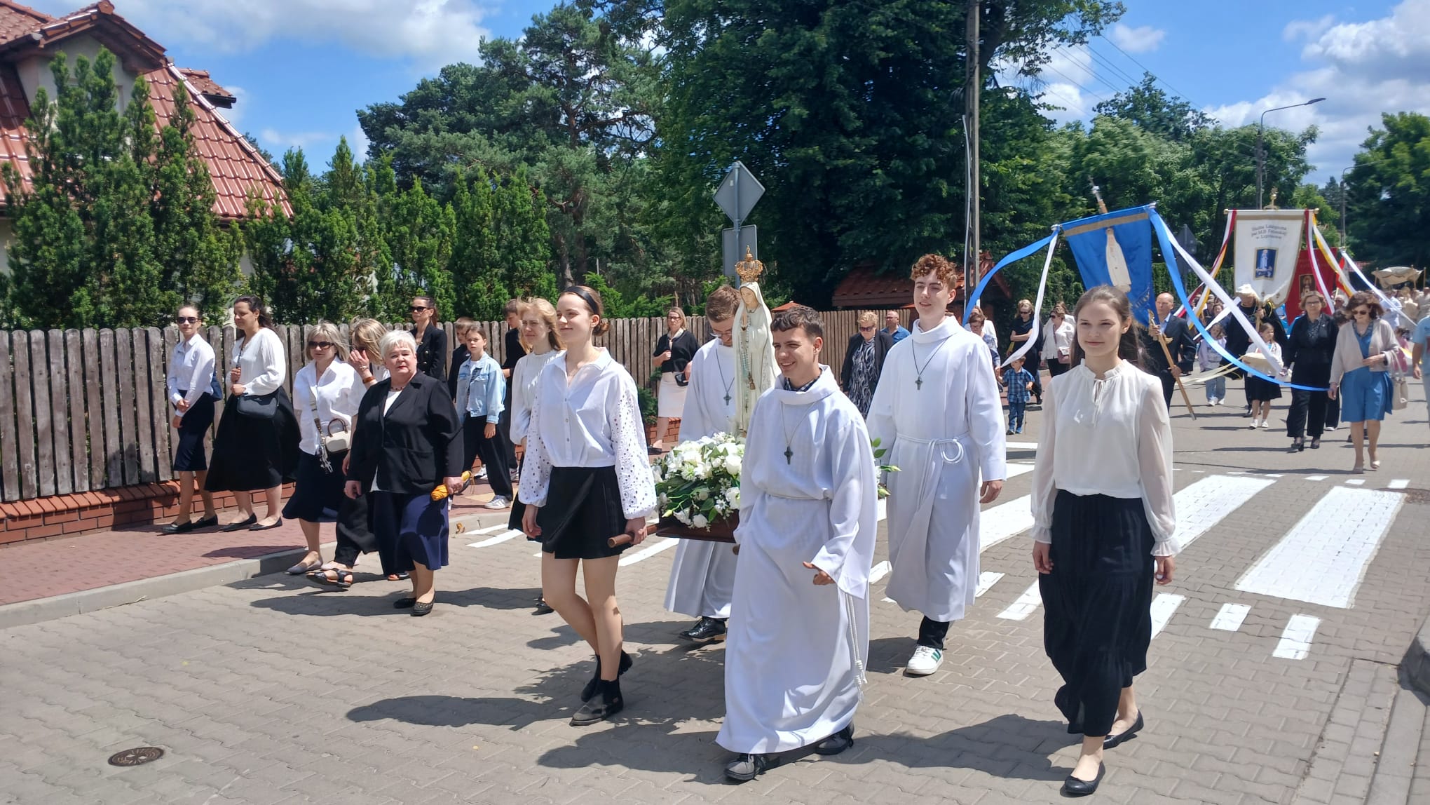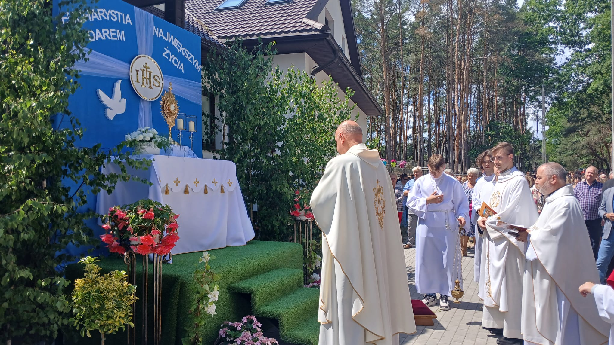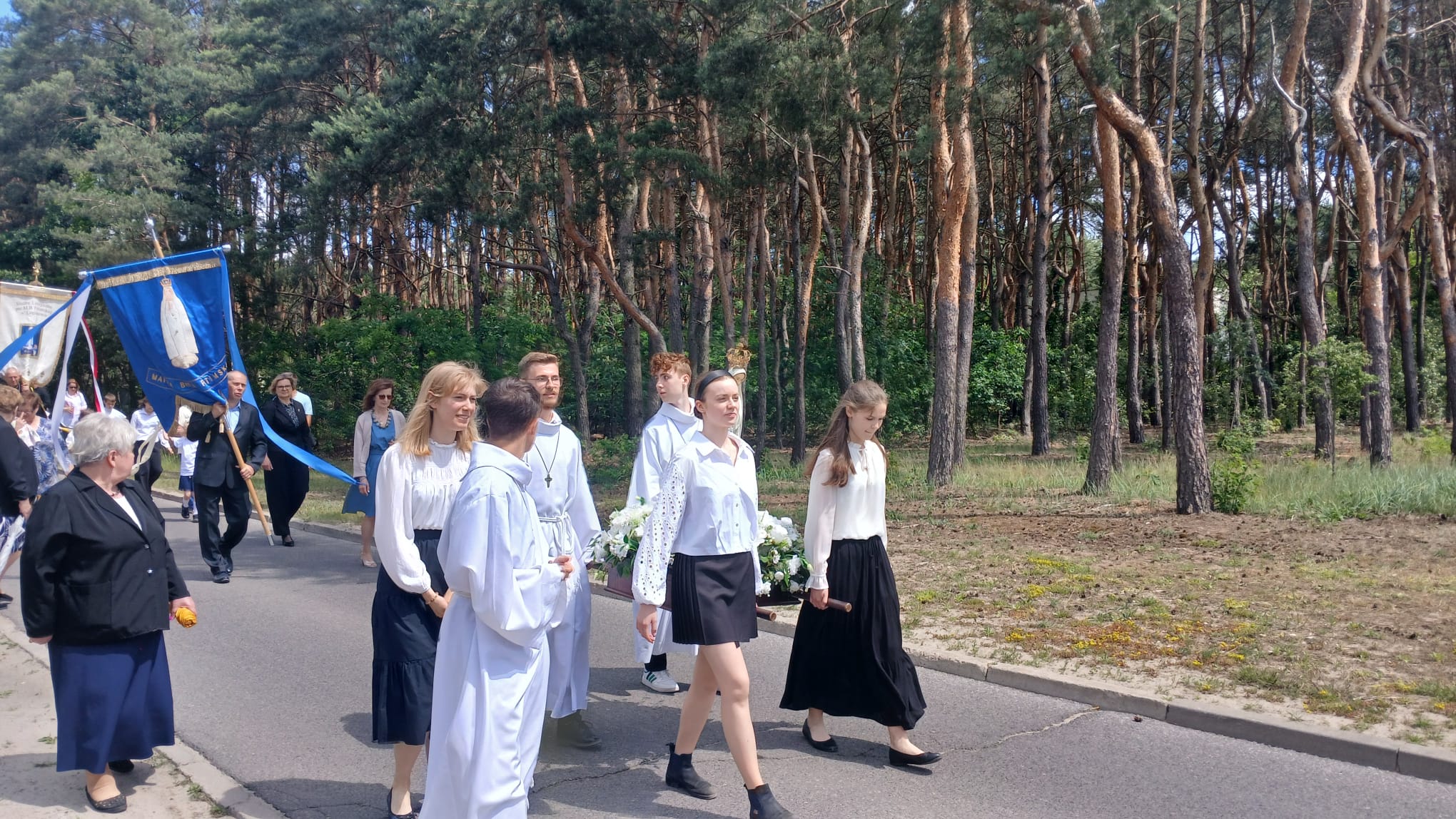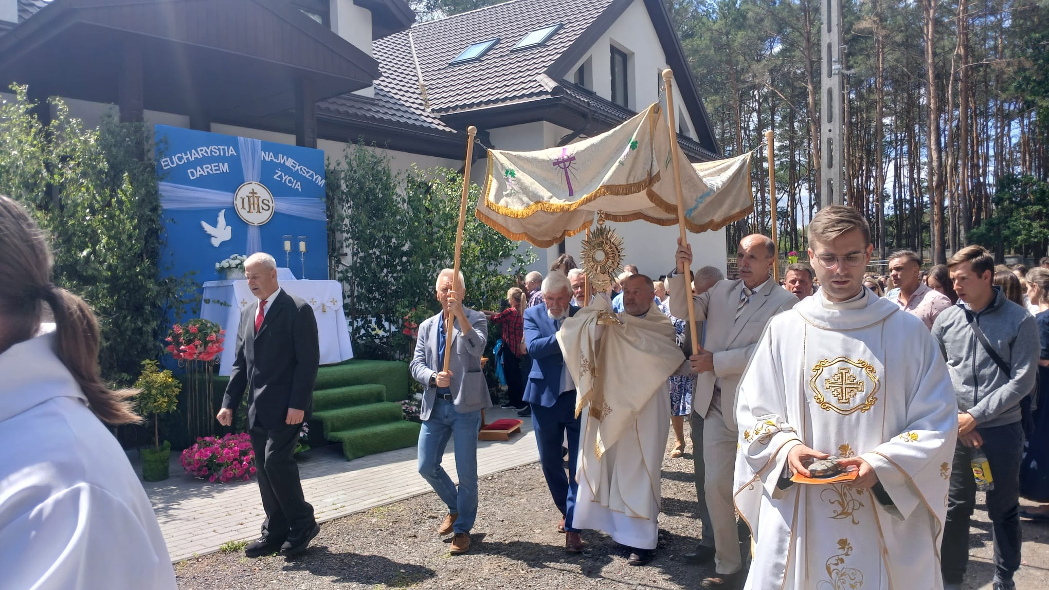 Uroczystość Najświętszego Ciała i Krwi Chrystusa, czyli potocznie, Boże Ciało, to wyjątkowy czas w ciągu roku. Dziękujemy Panu Jezusowi, że zostawił się nam pod postaciami chleba i wina. Chcemy w procesji eucharystycznej iść za Nim przechodząc ulicami naszej parafii, obok naszych domów i mieszkań. Pokazujemy za kim chcemy iść w naszym życiu. Dziękujemy wszystkim tym, którzy przyczynili się do wyjątkowego przeżycia tego czasu. Dziękujemy przede wszystkim tym, którzy przygotowali cztery ołtarze, przy których została odczytana Ewangelia i mogliśmy adorować Jezusa Chrystusa w Najświętszym Sakramencie. Każdy z ołtarzy został przygotowany i udekorowany przez przedstawicieli poszczególnych rejonów naszej parafii. Dziękujemy tym, którzy poświecili swój czas i siły do ich przygotowania. Dziękujemy Służbie Liturgicznej naszej parafii: ministrantom, lektorom, bielankom. Dziękujemy naszej parafialnej scholi Fatima Canta wraz z Panią Anitą Rodak oraz Państwu Stefańskim za prowadzenie śpiewu podczas procesji. Dziękujemy tym wszystkim, którzy nieśli baldachim oraz podtrzymywali kapłana niosącego Najświętszy Sakrament, tym którzy nieśli chorągwie, poduszki oraz różaniec. Dziękujemy Straży Miejskiej za zabezpieczanie trasy naszej procesji. Dziękujemy wszystkim parafianom i gościom za to, że idąc w procesji pokazali swoją wiarę w obecność Jezusa Chrystusa pośród nas.