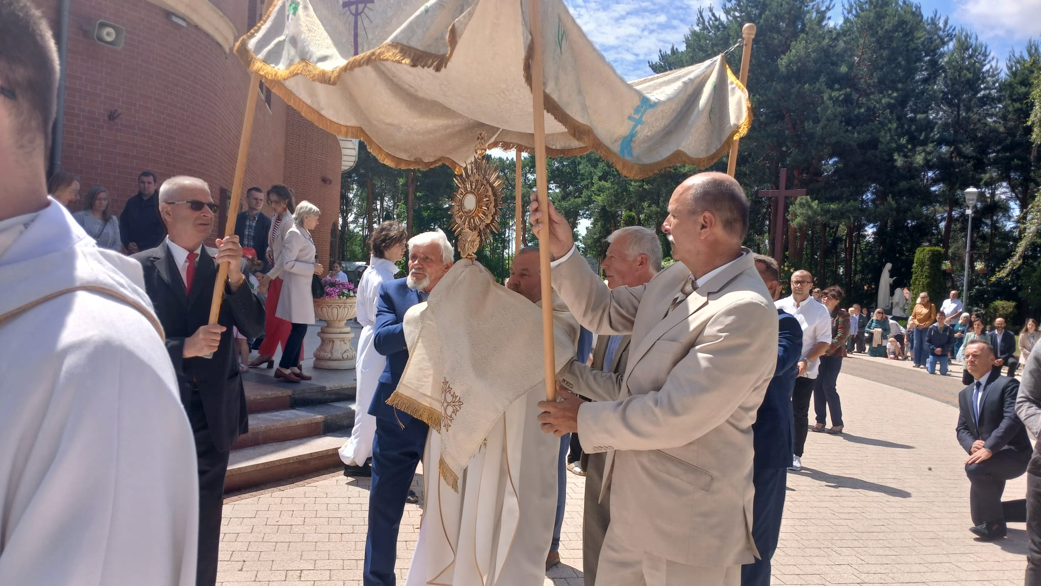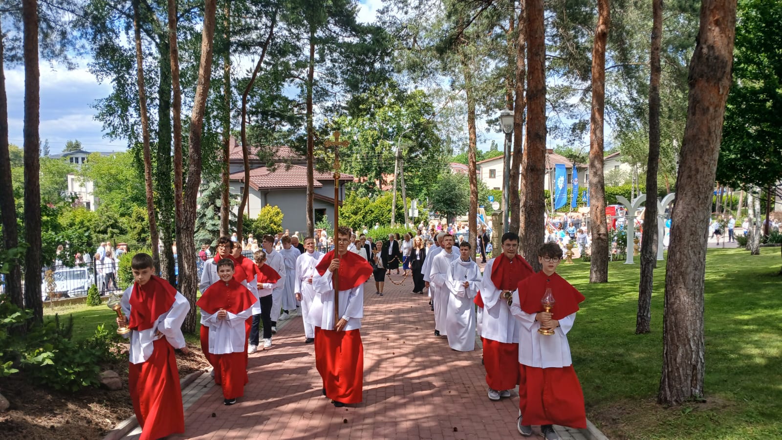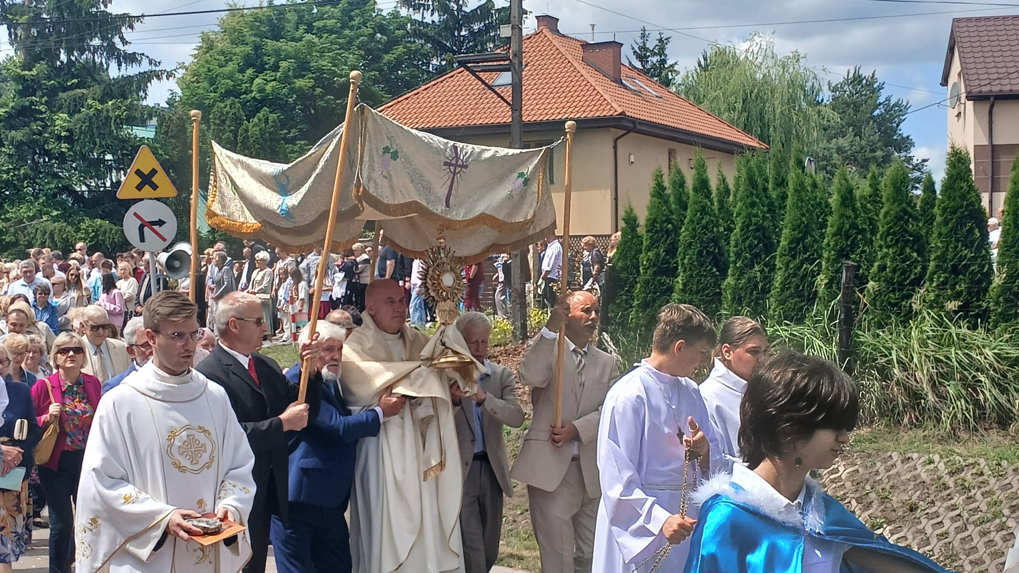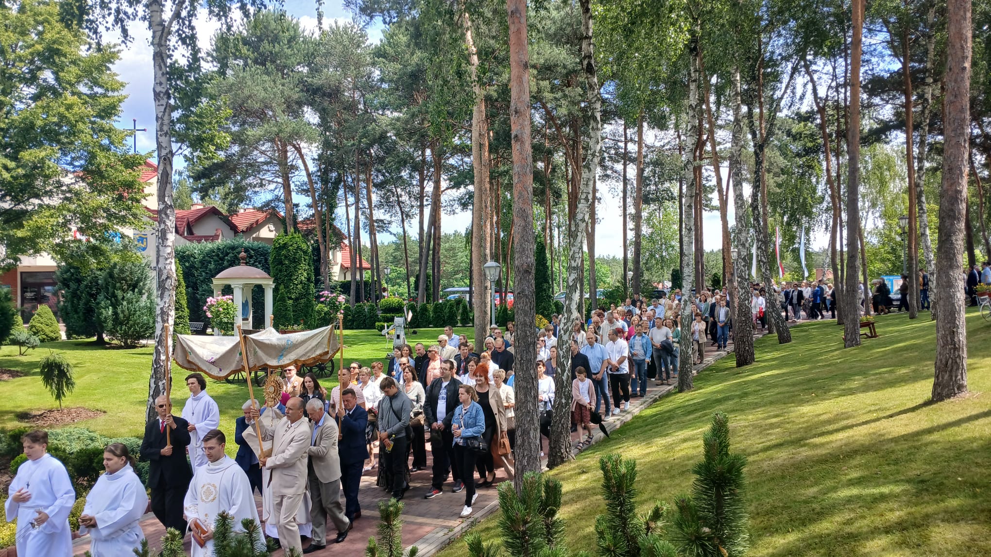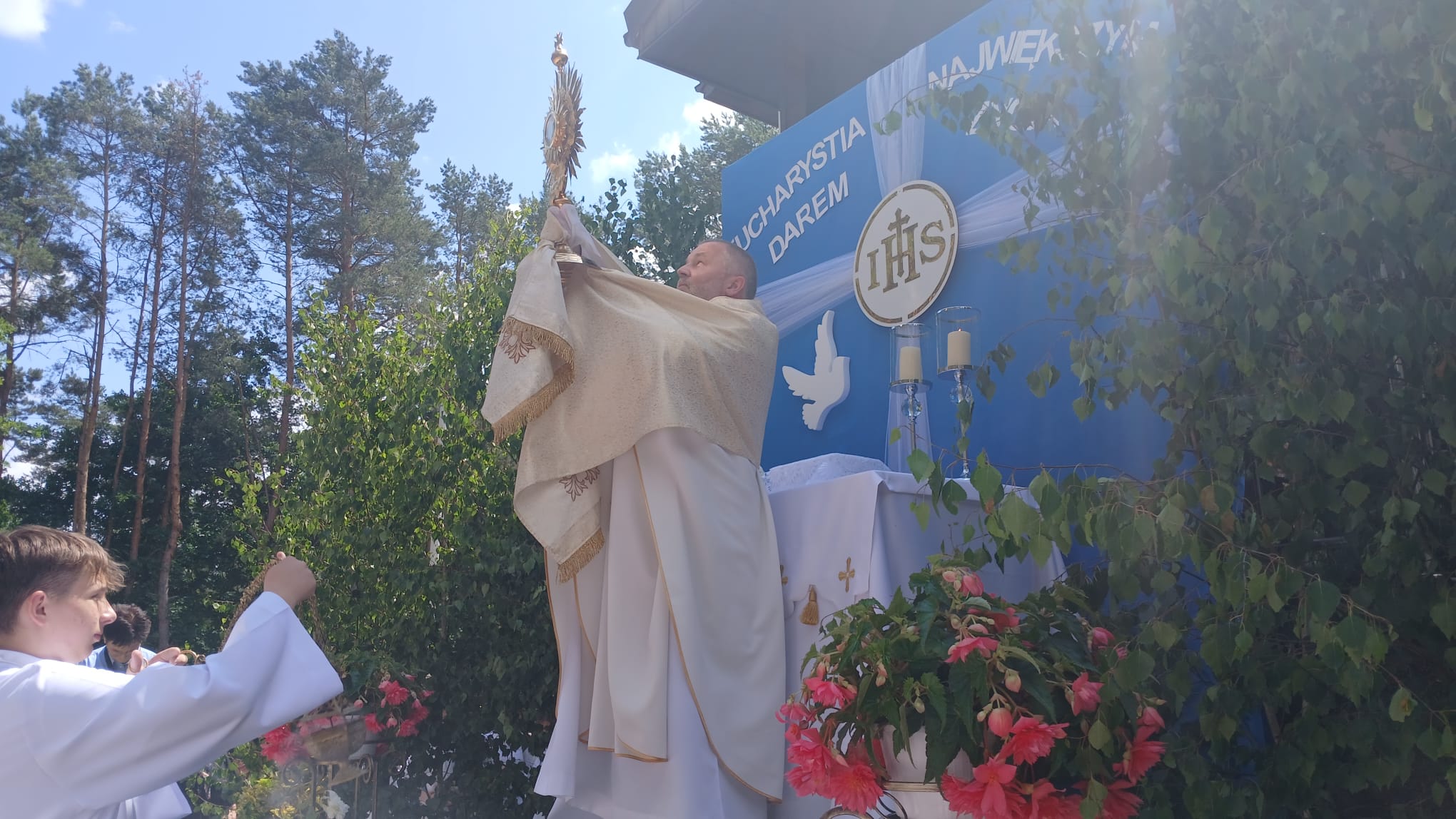 Uroczystość Najświętszego Ciała i Krwi Chrystusa, czyli potocznie, Boże Ciało, to wyjątkowy czas w ciągu roku. Dziękujemy Panu Jezusowi, że zostawił się nam pod postaciami chleba i wina. Chcemy w procesji eucharystycznej iść za Nim przechodząc ulicami naszej parafii, obok naszych domów i mieszkań. Pokazujemy za kim chcemy iść w naszym życiu. Dziękujemy wszystkim tym, którzy przyczynili się do wyjątkowego przeżycia tego czasu. Dziękujemy przede wszystkim tym, którzy przygotowali cztery ołtarze, przy których została odczytana Ewangelia i mogliśmy adorować Jezusa Chrystusa w Najświętszym Sakramencie. Każdy z ołtarzy został przygotowany i udekorowany przez przedstawicieli poszczególnych rejonów naszej parafii. Dziękujemy tym, którzy poświecili swój czas i siły do ich przygotowania. Dziękujemy Służbie Liturgicznej naszej parafii: ministrantom, lektorom, bielankom. Dziękujemy naszej parafialnej scholi Fatima Canta wraz z Panią Anitą Rodak oraz Państwu Stefańskim za prowadzenie śpiewu podczas procesji. Dziękujemy tym wszystkim, którzy nieśli baldachim oraz podtrzymywali kapłana niosącego Najświętszy Sakrament, tym którzy nieśli chorągwie, poduszki oraz różaniec. Dziękujemy Straży Miejskiej za zabezpieczanie trasy naszej procesji. Dziękujemy wszystkim parafianom i gościom za to, że idąc w procesji pokazali swoją wiarę w obecność Jezusa Chrystusa pośród nas.