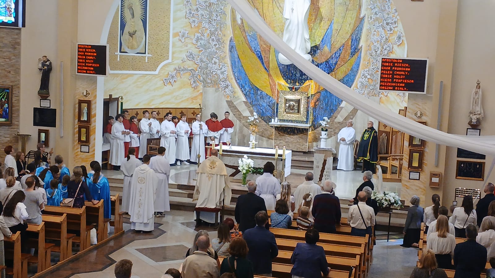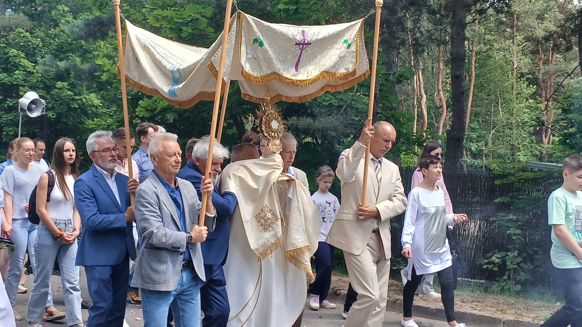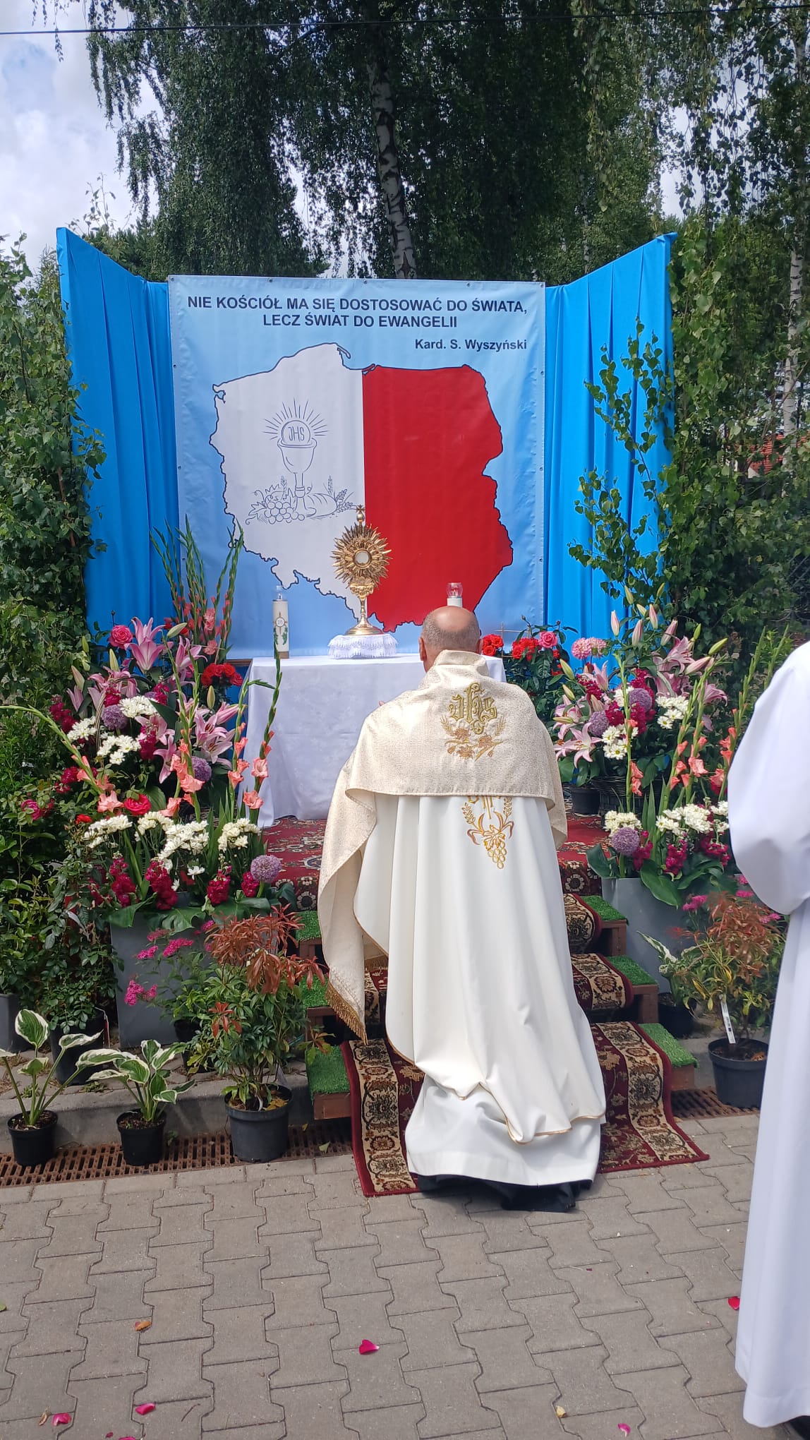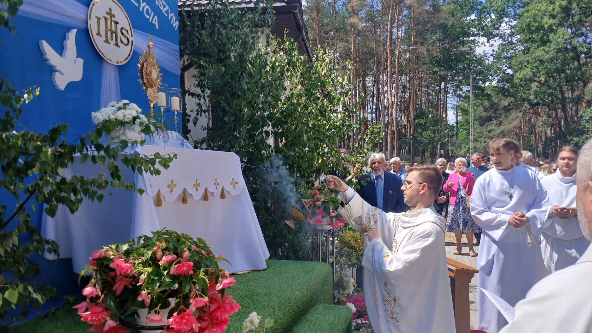 Uroczystość Najświętszego Ciała i Krwi Chrystusa, czyli potocznie, Boże Ciało, to wyjątkowy czas w ciągu roku. Dziękujemy Panu Jezusowi, że zostawił się nam pod postaciami chleba i wina. Chcemy w procesji eucharystycznej iść za Nim przechodząc ulicami naszej parafii, obok naszych domów i mieszkań. Pokazujemy za kim chcemy iść w naszym życiu. Dziękujemy wszystkim tym, którzy przyczynili się do wyjątkowego przeżycia tego czasu. Dziękujemy przede wszystkim tym, którzy przygotowali cztery ołtarze, przy których została odczytana Ewangelia i mogliśmy adorować Jezusa Chrystusa w Najświętszym Sakramencie. Każdy z ołtarzy został przygotowany i udekorowany przez przedstawicieli poszczególnych rejonów naszej parafii. Dziękujemy tym, którzy poświecili swój czas i siły do ich przygotowania. Dziękujemy Służbie Liturgicznej naszej parafii: ministrantom, lektorom, bielankom. Dziękujemy naszej parafialnej scholi Fatima Canta wraz z Panią Anitą Rodak oraz Państwu Stefańskim za prowadzenie śpiewu podczas procesji. Dziękujemy tym wszystkim, którzy nieśli baldachim oraz podtrzymywali kapłana niosącego Najświętszy Sakrament, tym którzy nieśli chorągwie, poduszki oraz różaniec. Dziękujemy Straży Miejskiej za zabezpieczanie trasy naszej procesji. Dziękujemy wszystkim parafianom i gościom za to, że idąc w procesji pokazali swoją wiarę w obecność Jezusa Chrystusa pośród nas.