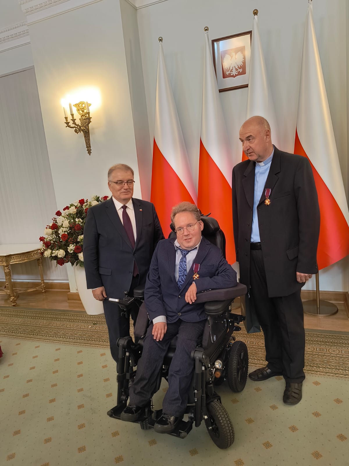 W piątek, 4 lipca, w Pałacu Prezydenckim odbyła się uroczystość wręczenia odznaczeń państwowych. Ks. prał. Tomasz Chciałowski – Prezes Legionowskiego Stowarzyszenia Amicus został odznaczony Złotym Krzyżem Zasługi. To wyjątkowe wyróżnienie przyznano za wieloletnią działalność na rzecz osób z niepełnosprawnościami oraz za niestrudzoną pomoc tym, którzy jej najbardziej potrzebują. Podczas tej samej ceremonii odznaczenie otrzymał również Wojciech Kowalczyk, któremu także serdecznie gratulujemy.