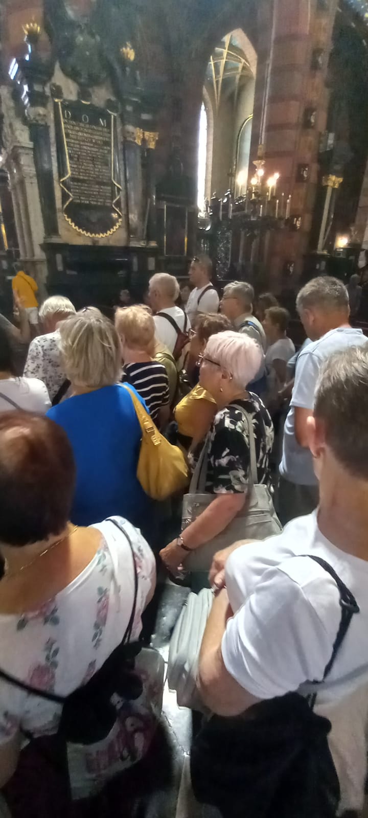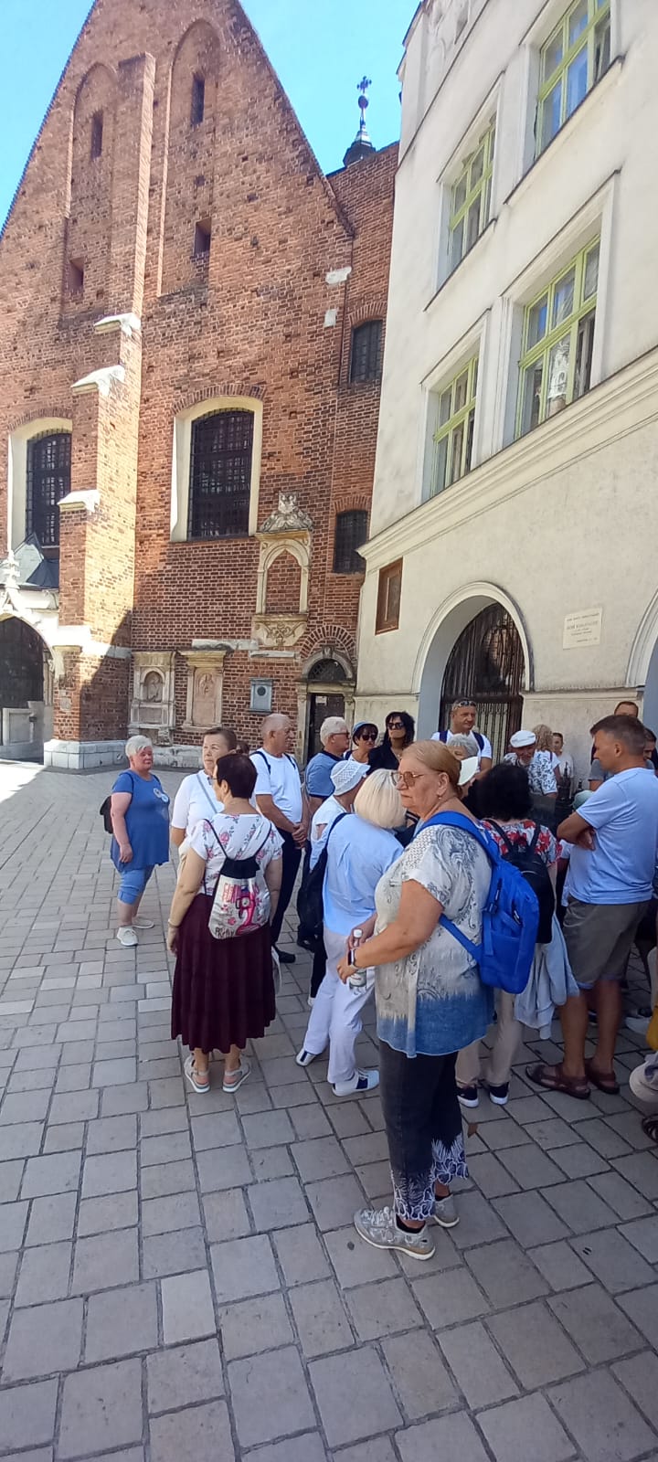 Obchodzimy obecnie w Kościele Rok Jubileuszowy. Chcąc skorzystać z łask związanych z tym wydarzeniem, nasza parafia pielgrzymuje, nawiedzając świątynie jubileuszowe, modląc się w szczególnych bliskich sercu miejscach. Już odbyliśmy pielgrzymkę do Sandomierza poznając niezwykłą historię tego bardzo starego miasta, a teraz nasze kroki skierowaliśmy do Krakowa i okolic. Nasza pielgrzymka trwała 3 dni. Była bardzo owocna, a zarazem trudna i dość wyczerpująca. Pierwszego dnia zwiedzaliśmy Katedrę Wawelską, Kościół Mariacki i przeszliśmy tzw. trasę królewską zapoznając się z poszczególnymi zabytkami. W drodze do Hotelu Krakus nawiedziliśmy Sanktuarium Bożego Miłosierdzia w Łagiewnikach i Sanktuarium św. Jana Pawła II. To tam mogliśmy przeżywać wspólną eucharystię. Drugiego dnia po wczesnym wstaniu i śniadaniu wyruszyliśmy do Wieliczki by zwiedzić Kopalnię Soli, a w niej unikatową Kaplice św. Kingi. Dość wyczerpani przejechaliśmy do Krakowa, by zwiedzić Zamek na Wawelu- królewskie komnaty. |Na zakończenie w Kościele Sióstr Kanoniczek Ducha św. uczestniczyliśmy we mszy św. Zmęczeni, ale ubogaceni duchowo i historyczne wróciliśmy do hotelu na obiadokolację i zasłużony odpoczynek z myślą o kolejnym pełnym wrażeń dniu. Trzeci dzień wyjazd do Wadowic. To szczególne miejsce bliskie każdemu Polakowi. W Bazylice Matki Bożej gdzie został ochrzczony św. Jan Paweł II była sprawowana msza św., a następnie mogliśmy zwiedzać Muzeum-Dom Rodzinny św. Jana Pawła II- Ciekawe multimedialne wystawy poświęcone naszemu rodakowi. Wreszcie przyszedł czas na |Sanktuarium w Kalwarii Zebrzydowskiej do którego wielokrotnie pielgrzymował nasz papież św. Jan Paweł II i Klasztor Benedyktynów w Tyńcu. Zmęczeni, ale naładowani duchowo i historycznie w godzinach wieczornych wróciliśmy do Legionowa. Dziękujemy ks. prał Tomaszowi Chciałowskiemu za zorganizowanie pielgrzymki, za opiekę duchową i wielką skarbnicę informacji historycznych, które były uzupełnieniem tego co słyszeliśmy od miejscowych przewodników. Obecnie czekamy i przygotowujemy się na kolejne pielgrzymki, które będą we wrześniu. Jedna z nich do Francji a drugie znacznie krótsza, ale bardzo bliska naszemu sercu do Częstochowy.