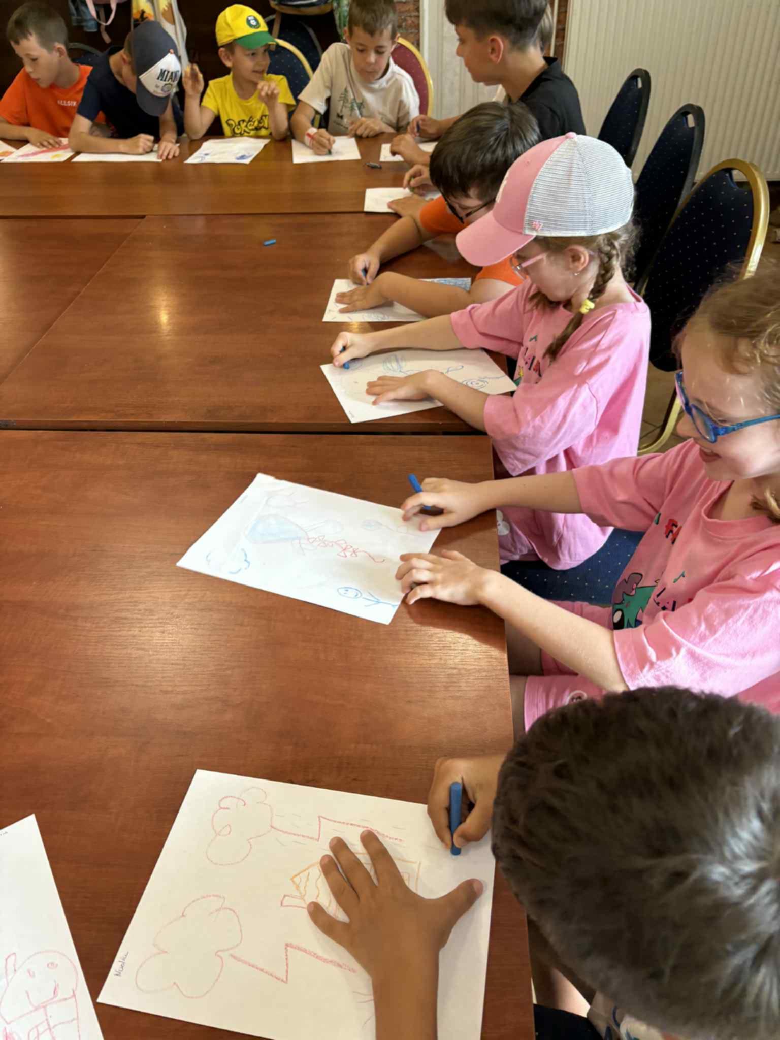 W naszej świetlicy dni mijają bardzo aktywnie i twórczo! Korzystamy z pięknej pogody i codziennie spędzamy czas na świeżym powietrzu. Wychodzimy na boisko, gdzie dzieci z dużym zaangażowaniem grają w piłkę nożną, ping ponga, a także biorą udział w różnych grach zespołowych. W sali również nie brakuje atrakcji. Podczas zajęć plastycznych każdy ma okazję wyrazić siebie – powstają kolorowe, kreatywne prace, pełne wyobraźni i ciekawych pomysłów.