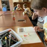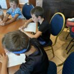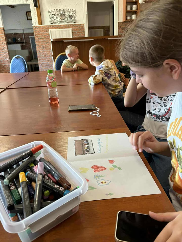 To już ostatni tydzień wakacji i wakacyjnych zajęć w naszej świetlicy. Dzieci spędziły go na wspólnych grach, zabawach i radosnych rozmowach. W geście wdzięczności dla księdza proboszcza Tomasza Chciałowskiego, za zorganizowanie opieki oraz wielu wspaniałych atrakcji, przygotowały własnoręcznie laurkę z pamiątkowym zdjęciem oraz obrazek z podpisami wszystkich uczestników. Był to piękny i pełen radości czas, który na długo pozostanie w naszej pamięci. Już nie możemy doczekać się kolejnych wakacji.