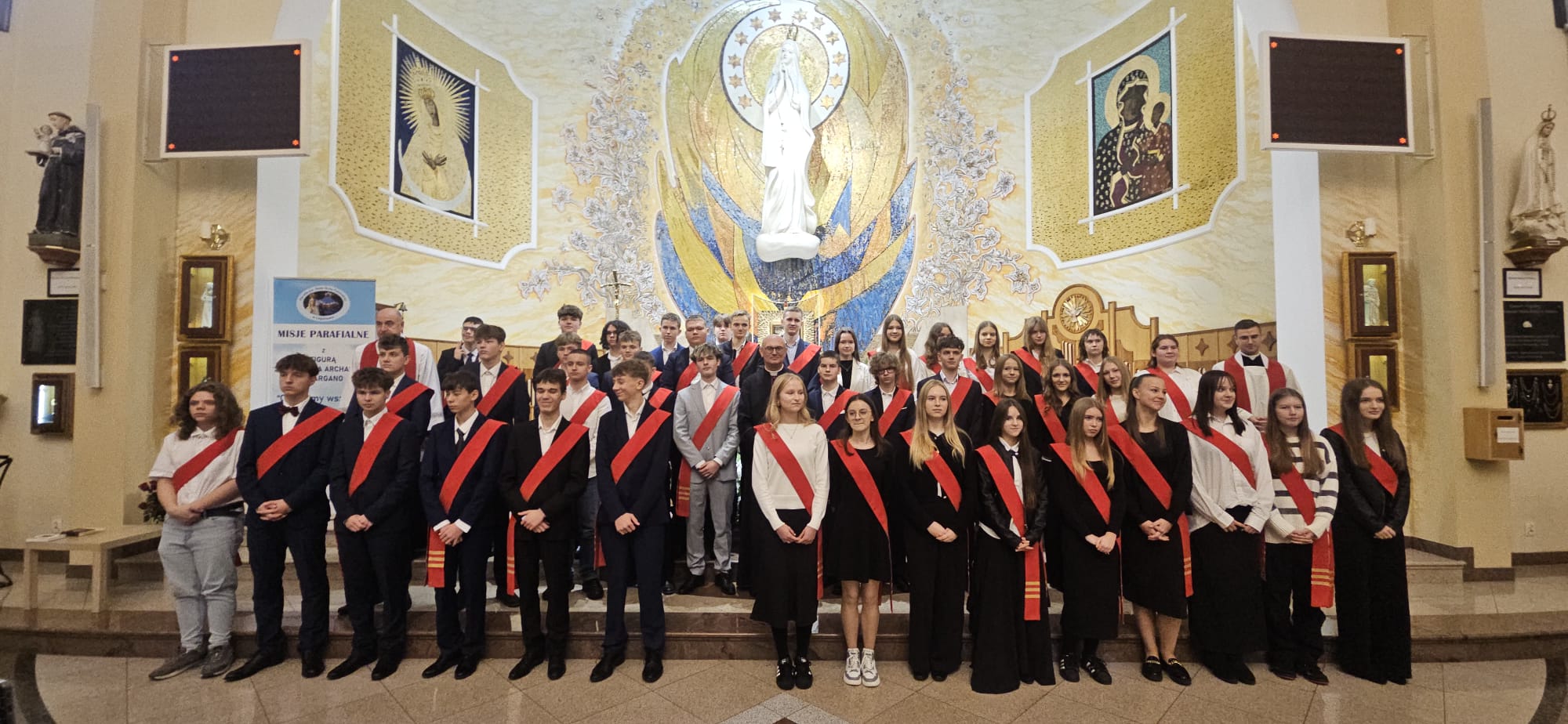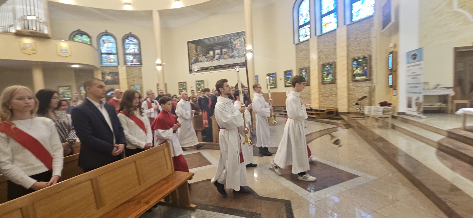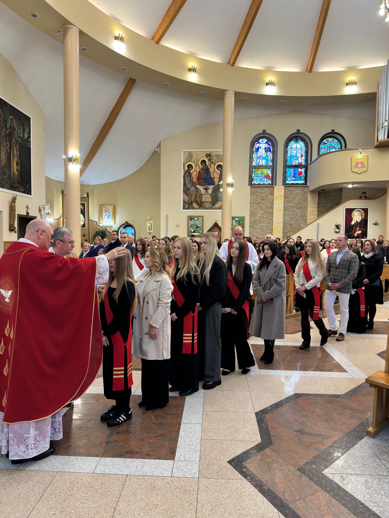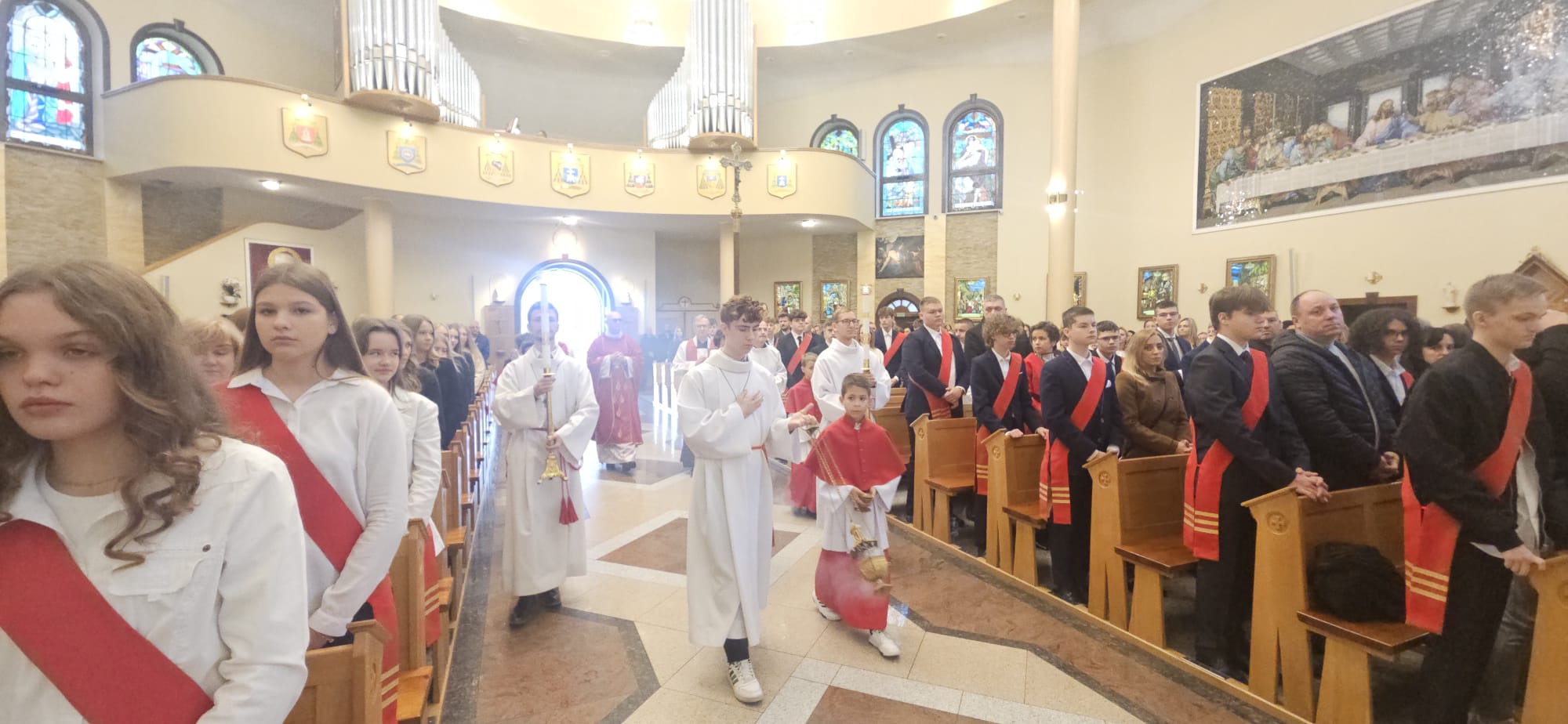 W sobotę, 25 października, podczas uroczystej Mszy świętej, 44 młodym osobom został udzielony sakrament bierzmowania. Msz świętej przewodniczył delegat księdza biskupa Romualda Kamińskiego, ksiądz prałat Dariusz Szczepaniuk. Podczas homilii, ksiądz prałat, podkreślił znaczenie tego sakramentu w życiu człowieka i zaznaczył, że od tego momentu mają być odważnymi świadkami Chrystusa wśród ludzi. Młodzież przygotowywała się do tego wydarzenia przez ponad rok, uczestnicząc m.in. w niedzielnych Eucharystiach, nabożeństwach różańcowych, roratach, drogach krzyżowych, gorzkich żalach, nabożeństwach czerwcowych i majowych, a także w katechezach i spotkaniach w grupach. Dziękujemy młodzieży, ich świadkom, rodzinom i wszystkim gościom za to wyjątkowe wydarzenie, a także tym, którzy przyczynili się do tego by ta uroczystość mogła zostać godnie przeżyta. Niech Pan Bóg umacnia tych wybranych do świadczenia o Jezusie Chrystusie z odwagą i dumą.