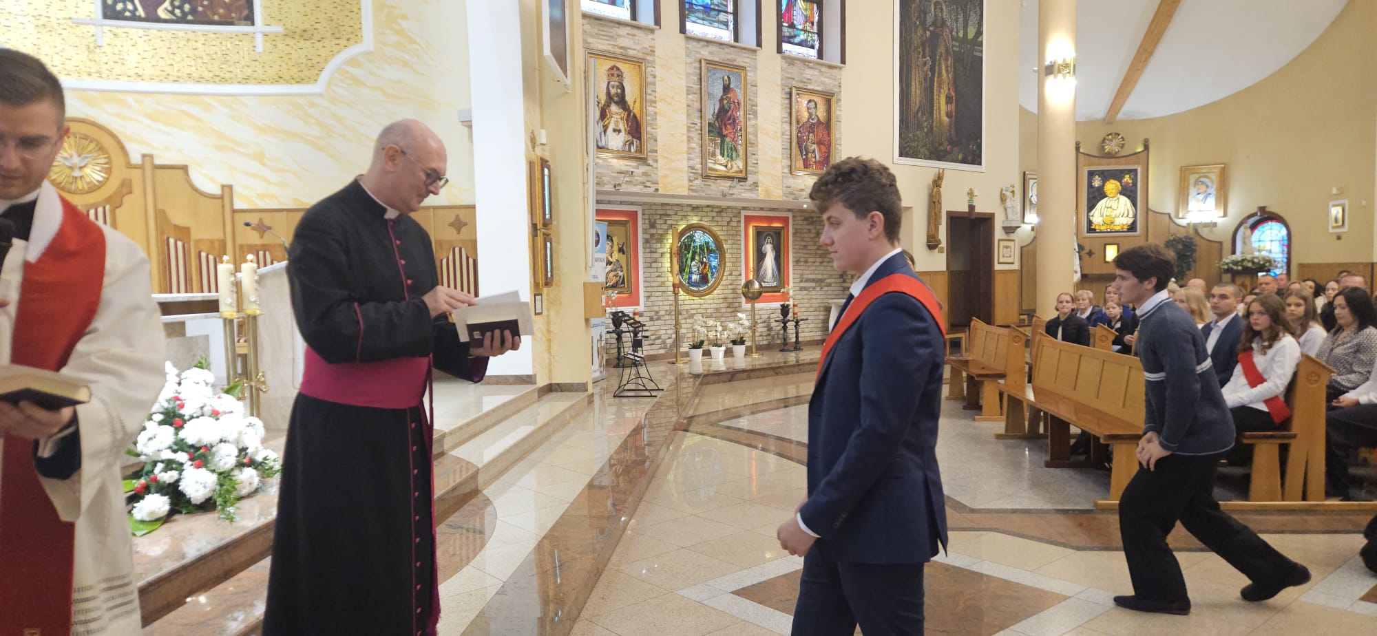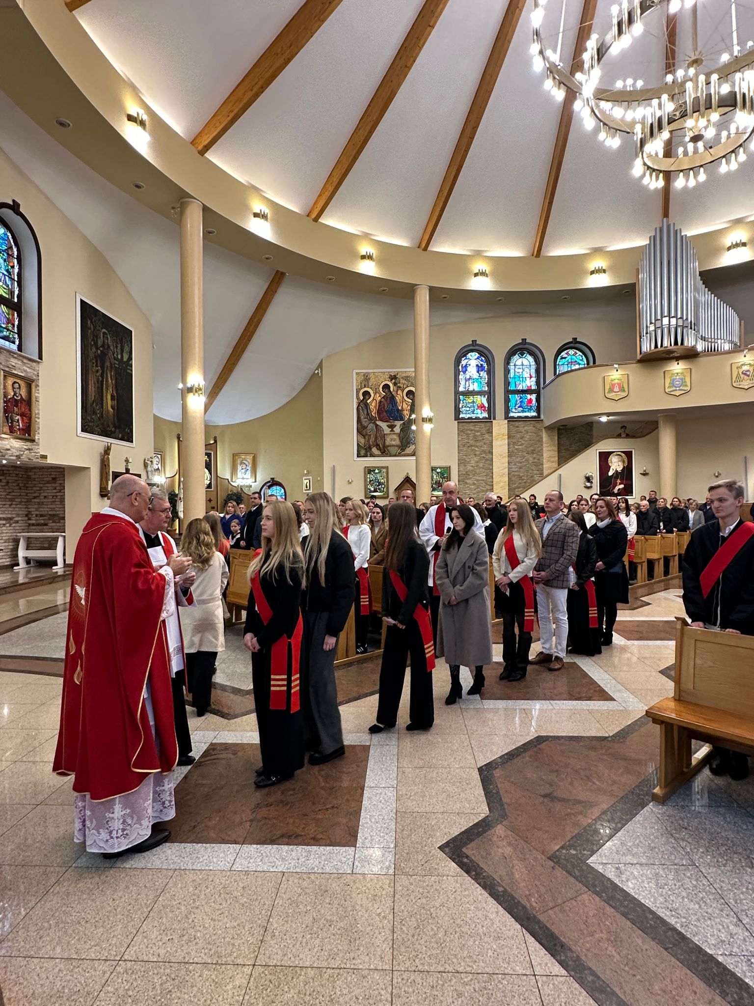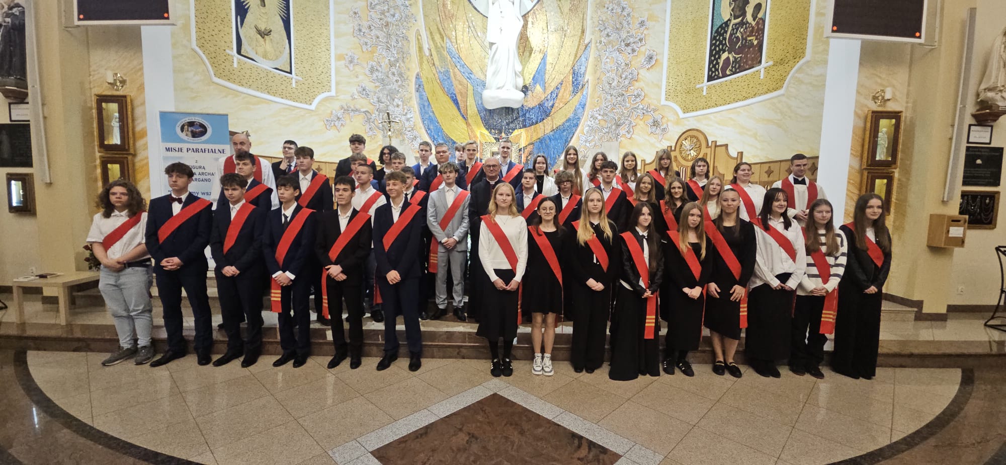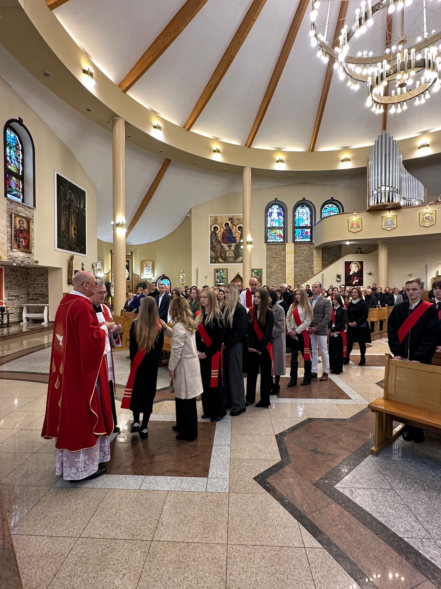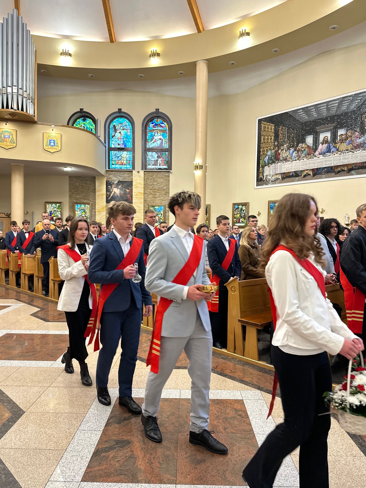W sobotę, 25 października, podczas uroczystej Mszy świętej, 44 młodym osobom został udzielony sakrament bierzmowania. Msz świętej przewodniczył delegat księdza biskupa Romualda Kamińskiego, ksiądz prałat Dariusz Szczepaniuk. Podczas homilii, ksiądz prałat, podkreślił znaczenie tego sakramentu w życiu człowieka i zaznaczył, że od tego momentu mają być odważnymi świadkami Chrystusa wśród ludzi. Młodzież przygotowywała się do tego wydarzenia przez ponad rok, uczestnicząc m.in. w niedzielnych Eucharystiach, nabożeństwach różańcowych, roratach, drogach krzyżowych, gorzkich żalach, nabożeństwach czerwcowych i majowych, a także w katechezach i spotkaniach w grupach. Dziękujemy młodzieży, ich świadkom, rodzinom i wszystkim gościom za to wyjątkowe wydarzenie, a także tym, którzy przyczynili się do tego by ta uroczystość mogła zostać godnie przeżyta. Niech Pan Bóg umacnia tych wybranych do świadczenia o Jezusie Chrystusie z odwagą i dumą.