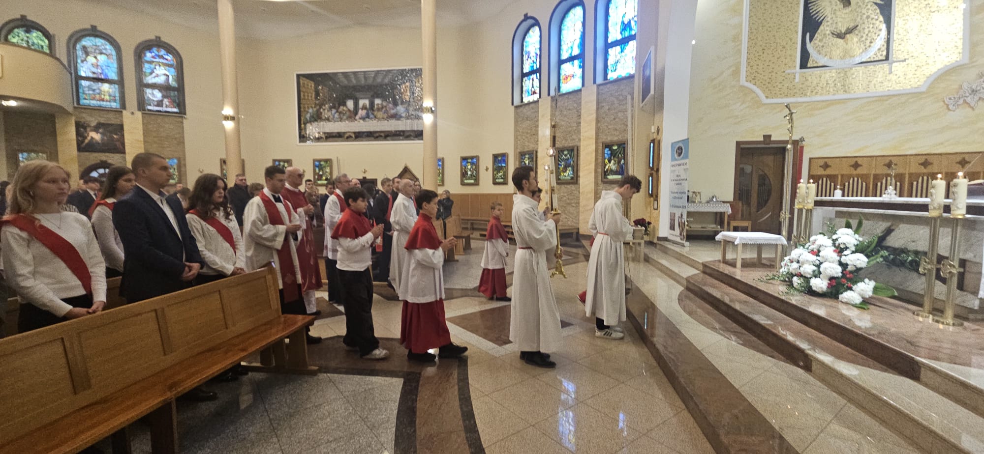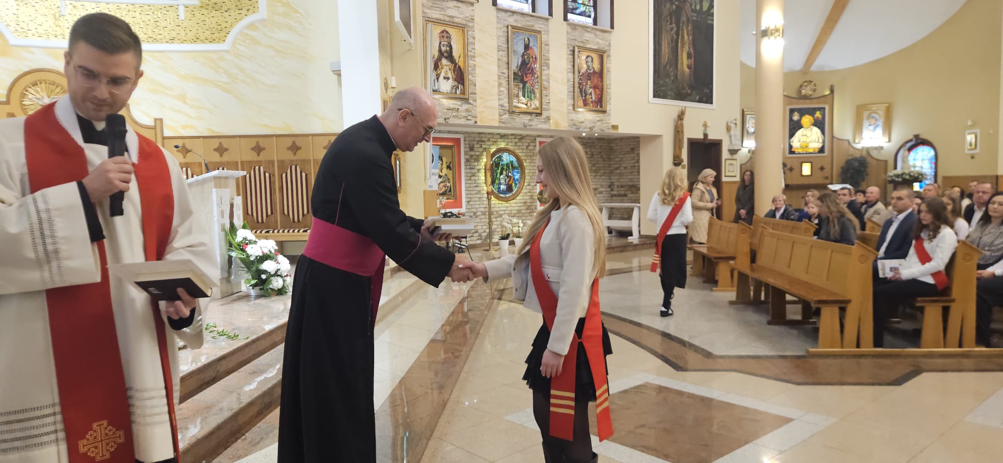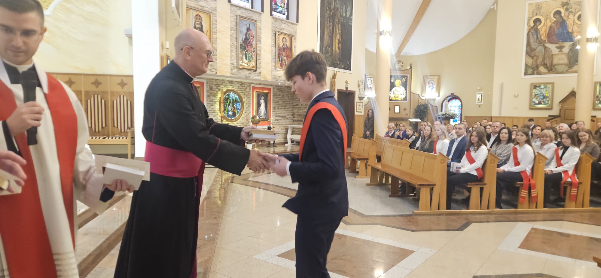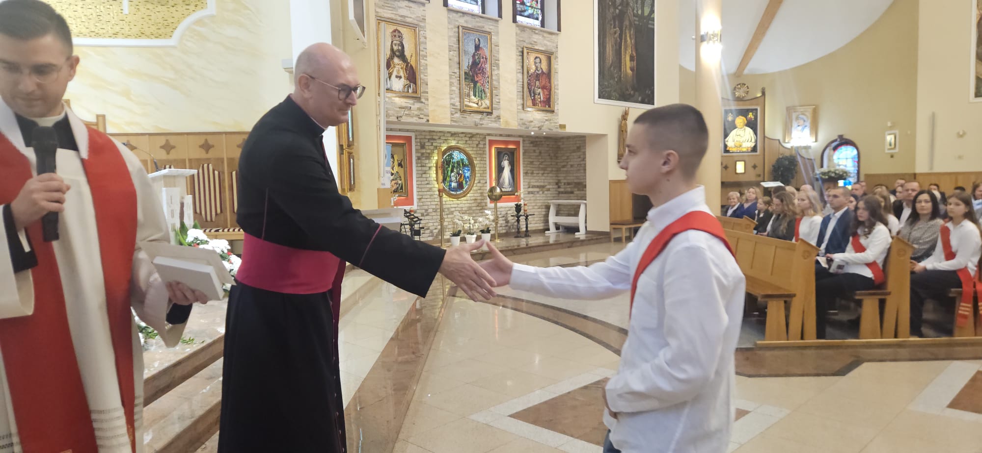 W sobotę, 25 października, podczas uroczystej Mszy świętej, 44 młodym osobom został udzielony sakrament bierzmowania. Msz świętej przewodniczył delegat księdza biskupa Romualda Kamińskiego, ksiądz prałat Dariusz Szczepaniuk. Podczas homilii, ksiądz prałat, podkreślił znaczenie tego sakramentu w życiu człowieka i zaznaczył, że od tego momentu mają być odważnymi świadkami Chrystusa wśród ludzi. Młodzież przygotowywała się do tego wydarzenia przez ponad rok, uczestnicząc m.in. w niedzielnych Eucharystiach, nabożeństwach różańcowych, roratach, drogach krzyżowych, gorzkich żalach, nabożeństwach czerwcowych i majowych, a także w katechezach i spotkaniach w grupach. Dziękujemy młodzieży, ich świadkom, rodzinom i wszystkim gościom za to wyjątkowe wydarzenie, a także tym, którzy przyczynili się do tego by ta uroczystość mogła zostać godnie przeżyta. Niech Pan Bóg umacnia tych wybranych do świadczenia o Jezusie Chrystusie z odwagą i dumą.