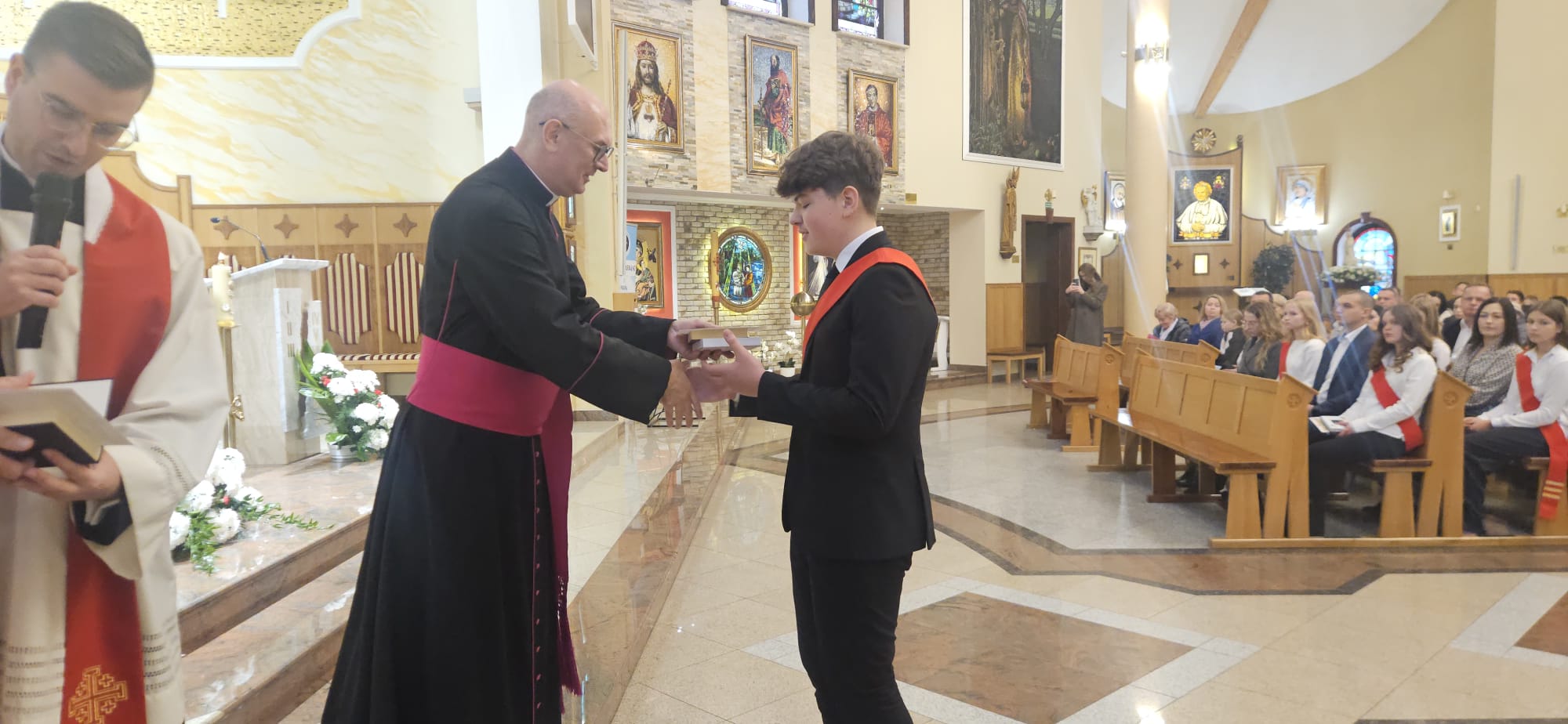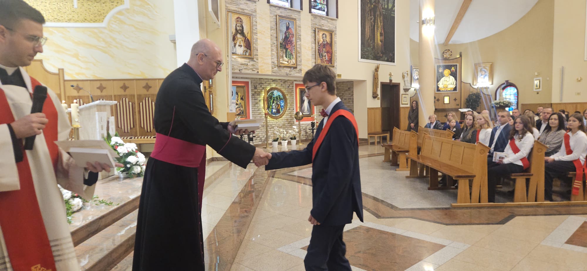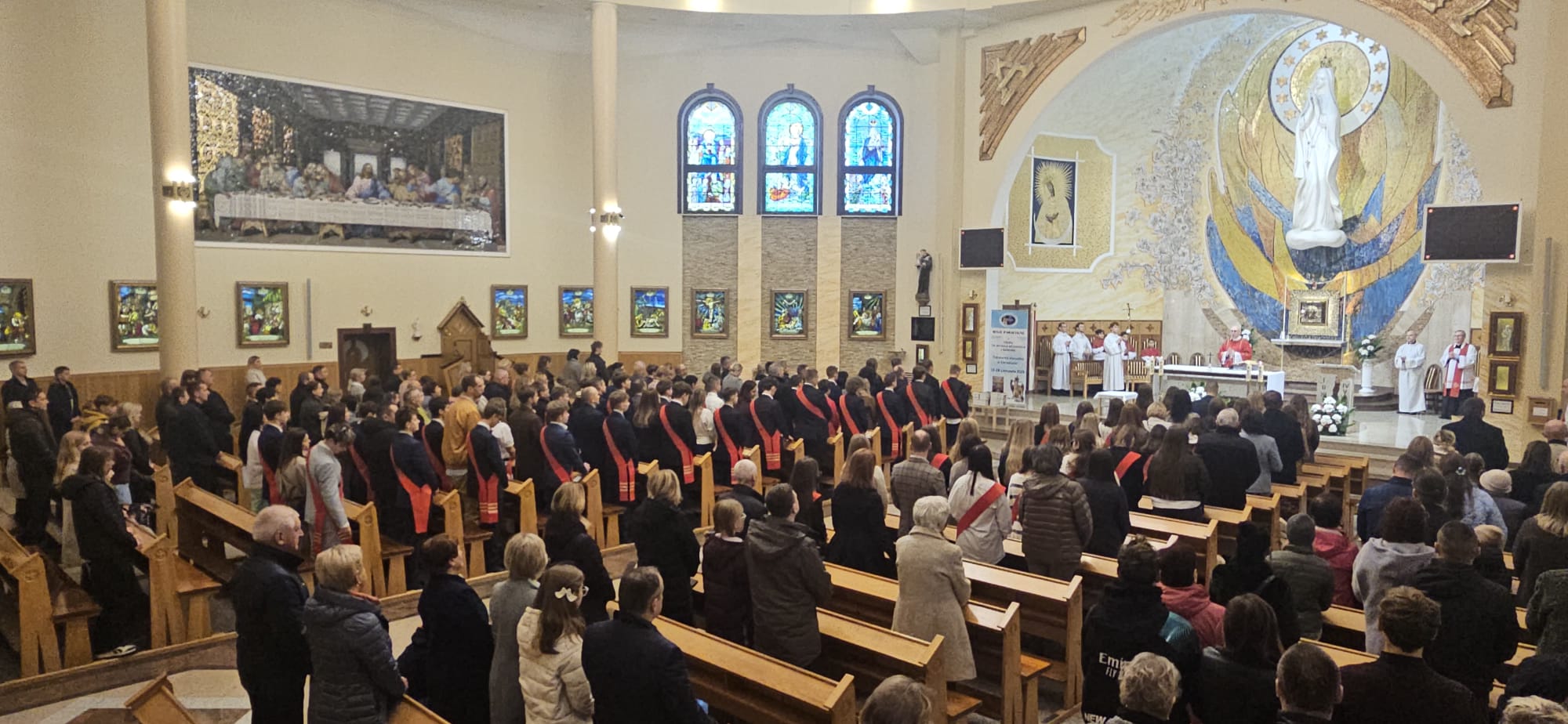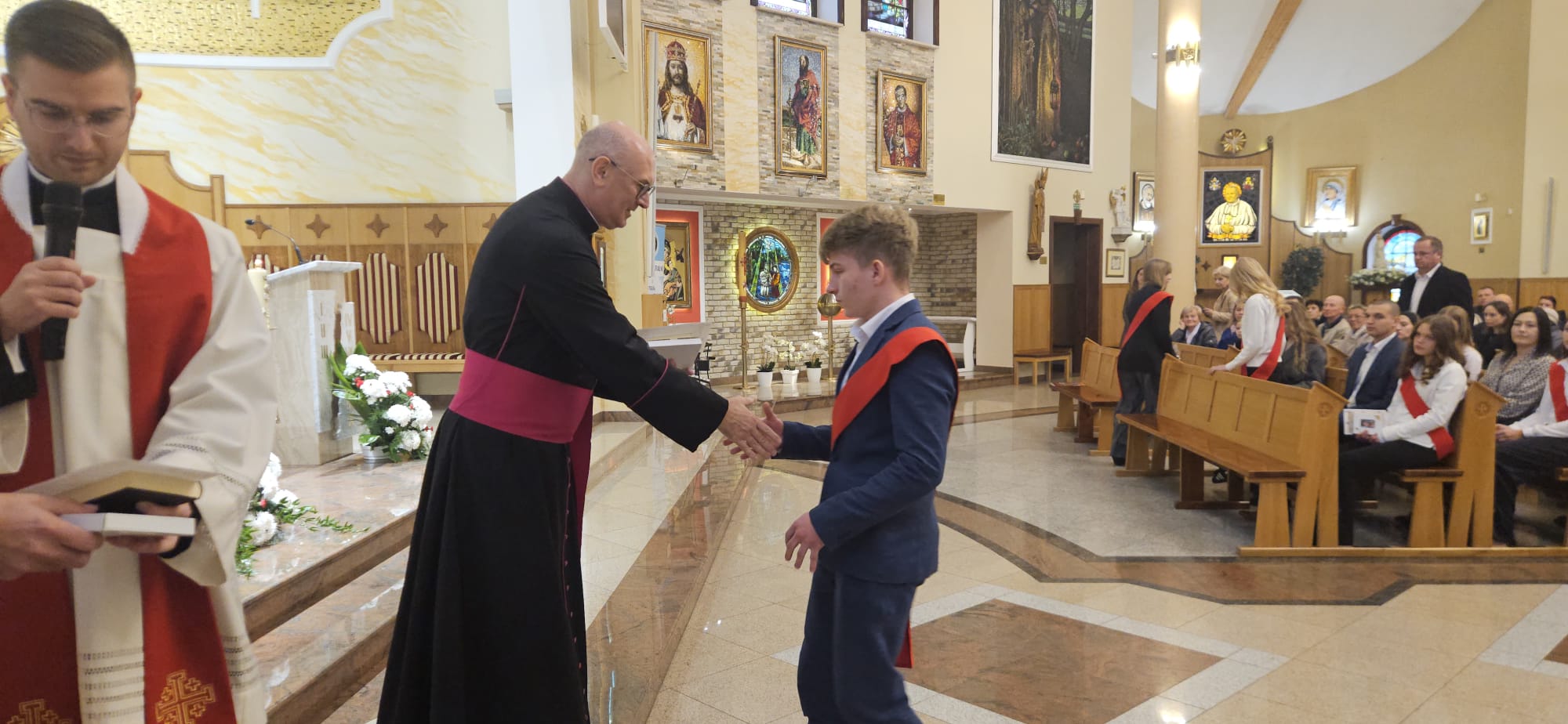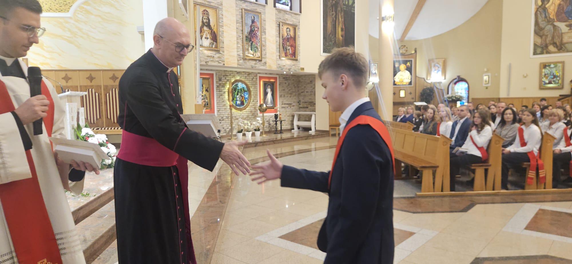 W sobotę, 25 października, podczas uroczystej Mszy świętej, 44 młodym osobom został udzielony sakrament bierzmowania. Msz świętej przewodniczył delegat księdza biskupa Romualda Kamińskiego, ksiądz prałat Dariusz Szczepaniuk. Podczas homilii, ksiądz prałat, podkreślił znaczenie tego sakramentu w życiu człowieka i zaznaczył, że od tego momentu mają być odważnymi świadkami Chrystusa wśród ludzi. Młodzież przygotowywała się do tego wydarzenia przez ponad rok, uczestnicząc m.in. w niedzielnych Eucharystiach, nabożeństwach różańcowych, roratach, drogach krzyżowych, gorzkich żalach, nabożeństwach czerwcowych i majowych, a także w katechezach i spotkaniach w grupach. Dziękujemy młodzieży, ich świadkom, rodzinom i wszystkim gościom za to wyjątkowe wydarzenie, a także tym, którzy przyczynili się do tego by ta uroczystość mogła zostać godnie przeżyta. Niech Pan Bóg umacnia tych wybranych do świadczenia o Jezusie Chrystusie z odwagą i dumą.