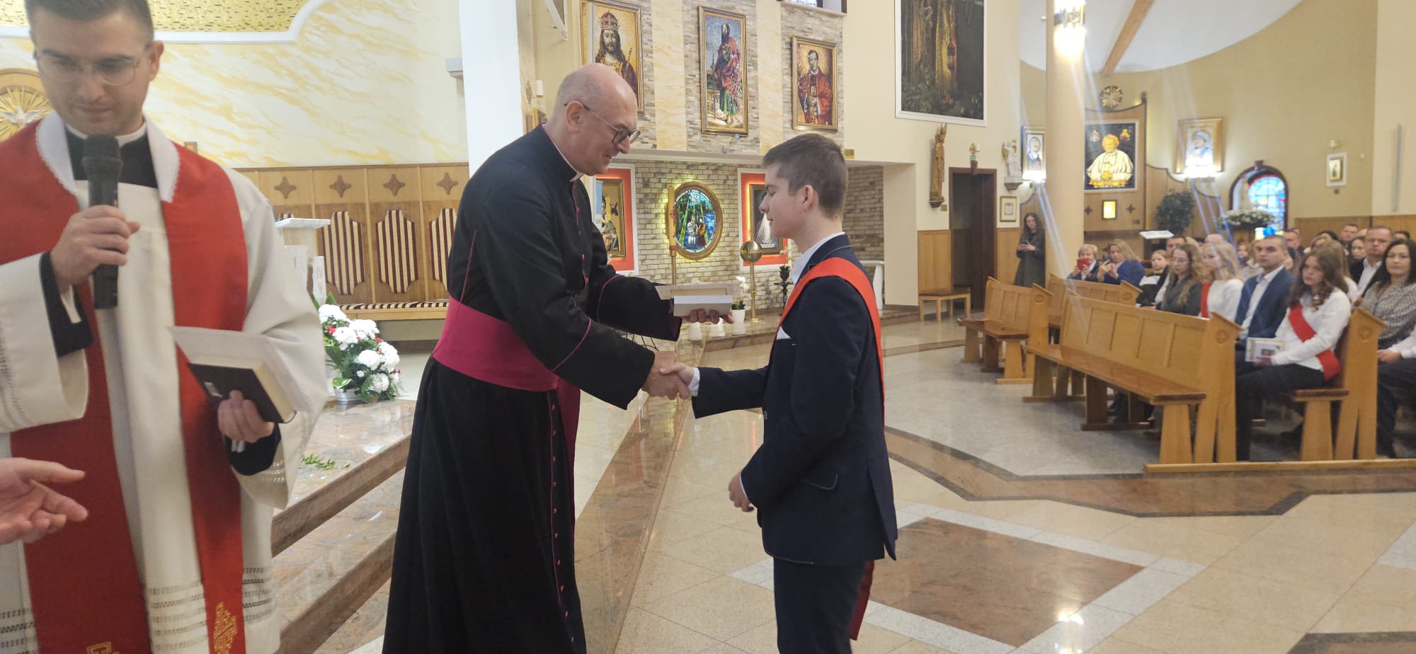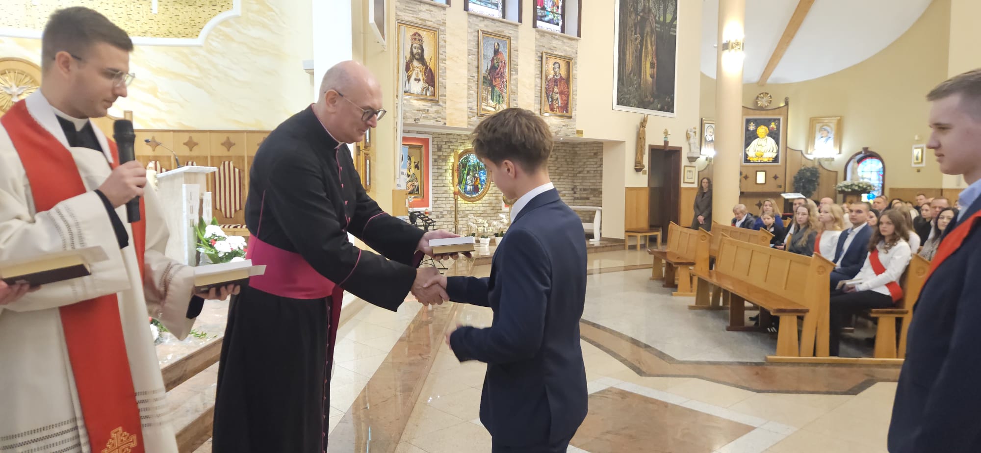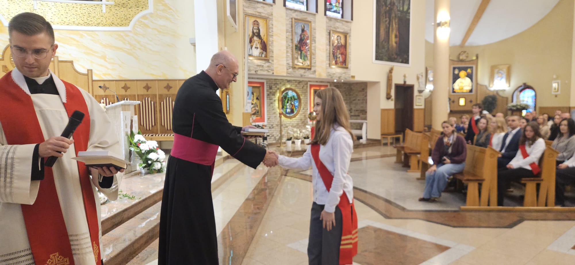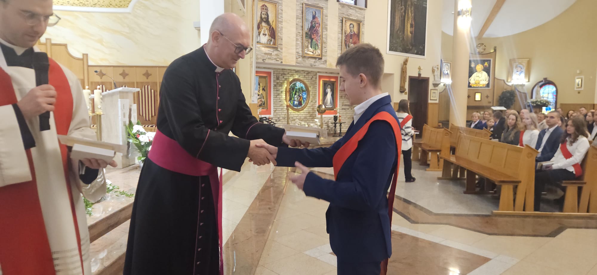 W sobotę, 25 października, podczas uroczystej Mszy świętej, 44 młodym osobom został udzielony sakrament bierzmowania. Msz świętej przewodniczył delegat księdza biskupa Romualda Kamińskiego, ksiądz prałat Dariusz Szczepaniuk. Podczas homilii, ksiądz prałat, podkreślił znaczenie tego sakramentu w życiu człowieka i zaznaczył, że od tego momentu mają być odważnymi świadkami Chrystusa wśród ludzi. Młodzież przygotowywała się do tego wydarzenia przez ponad rok, uczestnicząc m.in. w niedzielnych Eucharystiach, nabożeństwach różańcowych, roratach, drogach krzyżowych, gorzkich żalach, nabożeństwach czerwcowych i majowych, a także w katechezach i spotkaniach w grupach. Dziękujemy młodzieży, ich świadkom, rodzinom i wszystkim gościom za to wyjątkowe wydarzenie, a także tym, którzy przyczynili się do tego by ta uroczystość mogła zostać godnie przeżyta. Niech Pan Bóg umacnia tych wybranych do świadczenia o Jezusie Chrystusie z odwagą i dumą.