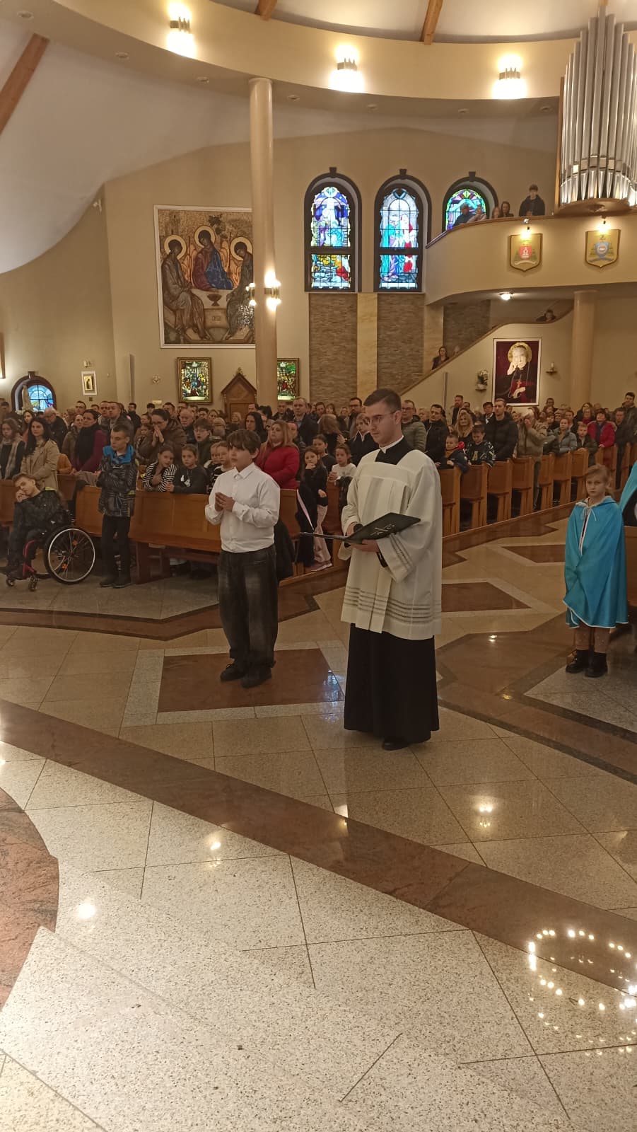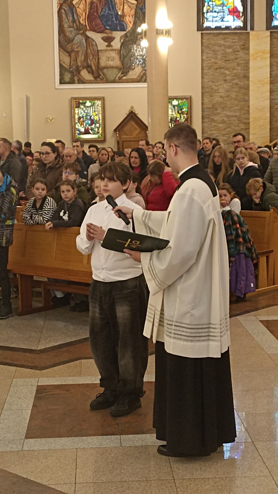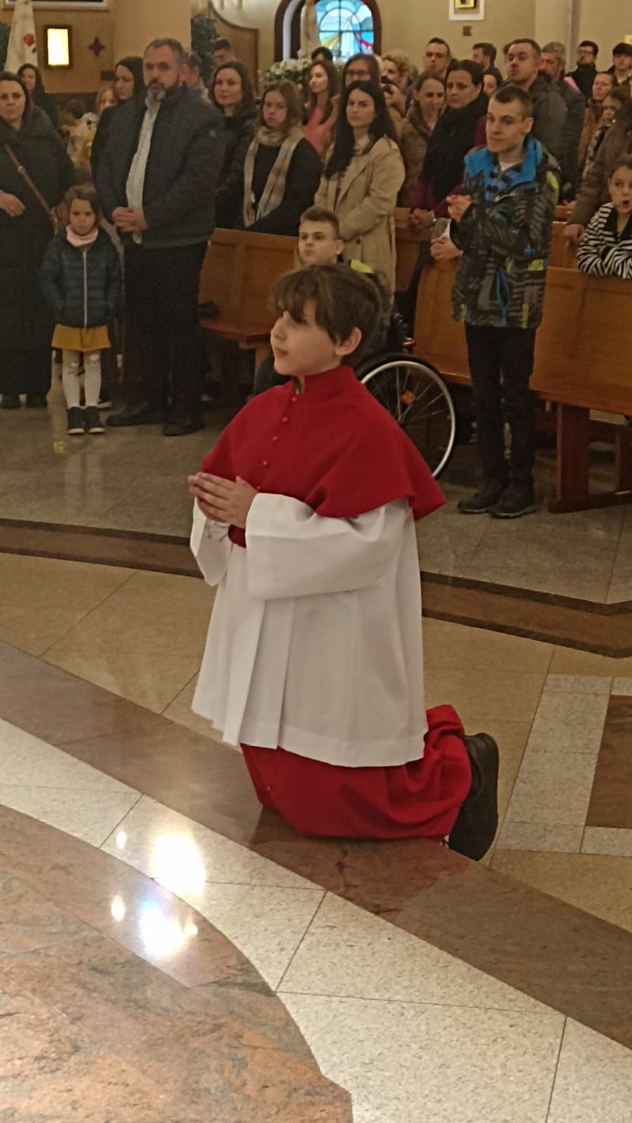 Podczas uroczystej Mszy świętej, w niedzielę, 30 listopada, do grona ministrantów został włączony kandydat, który po rocznej formacji dowiódł, że jest gotowy podjąć dalszą formację w służbie liturgicznej. W obrzędzie obłóczyn Ksiądz Proboszcz przypomniał, jakie zadania będą go czekały w nowej roli i zachęcił by wytrwał w gorliwości podczas służby przy ołtarzu. Nowemu ministrantowi z serca gratulujemy i zachęcamy innych młodych ludzi do wstąpienia w szeregi służby liturgicznej.
