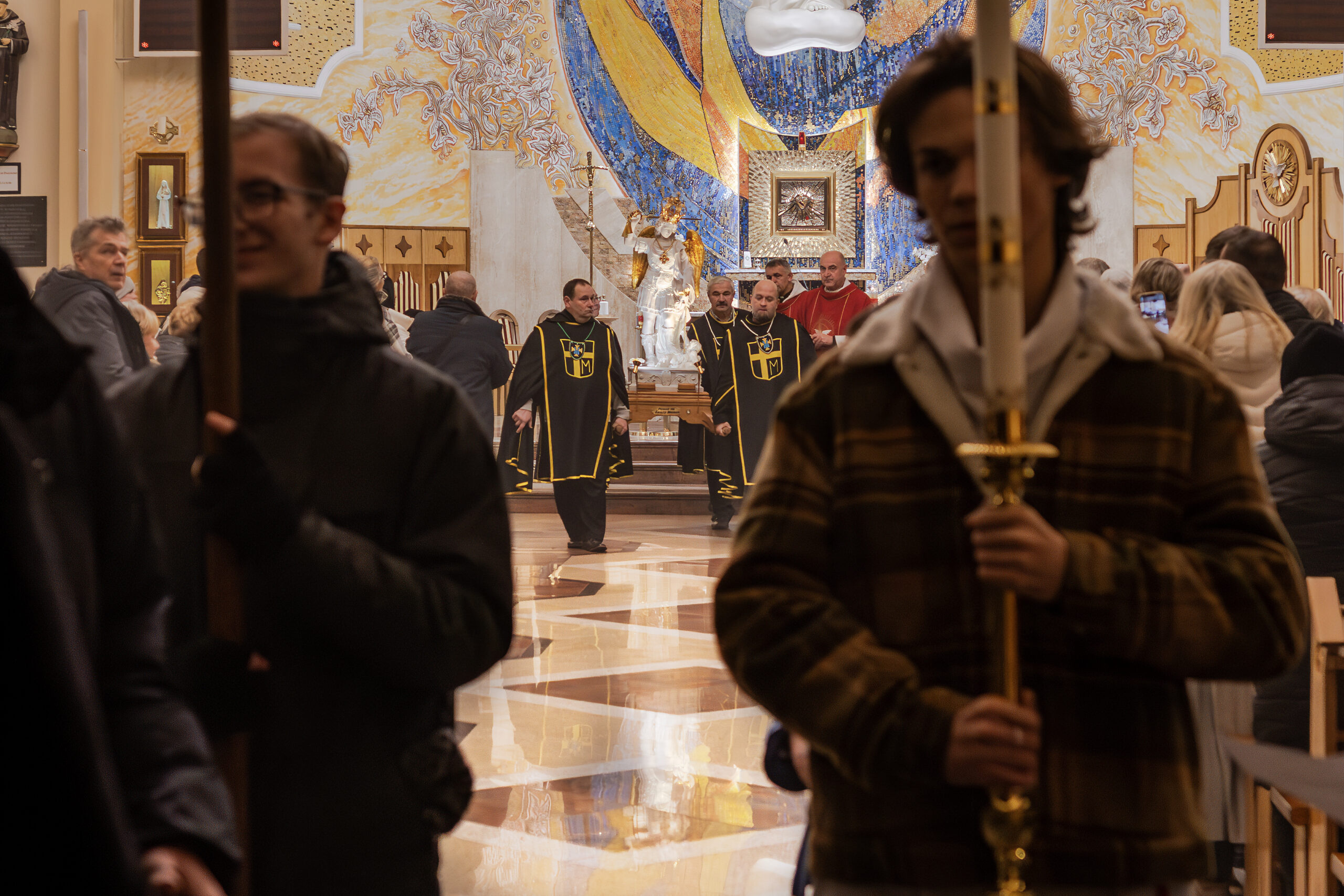 Piąty dzień Misji Parafialnych to dzień pokutny. Każdy, kto tylko chciał mógł tego dnia skorzystać z sakramentu pokuty i pojednania, dzięki zaproszonym do naszej wspólnoty parafialnej księżom, którzy z oddaniem pełnili posługę w konfesjonałach. Wieczorną Mszą świętą i uroczystą procesją pożegnaliśmy figurę świętego Michała Archanioła, prosząc by intencje, które złożyliśmy pod jego figurą zostały przez dobrego Boga łaskawie wysłuchane.