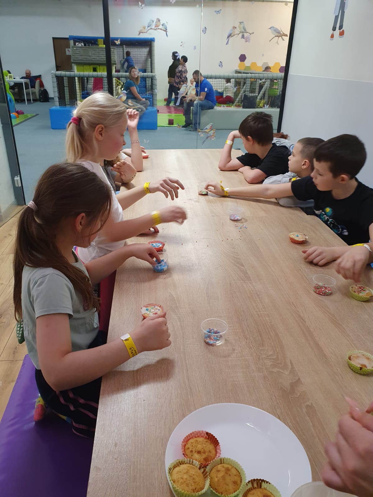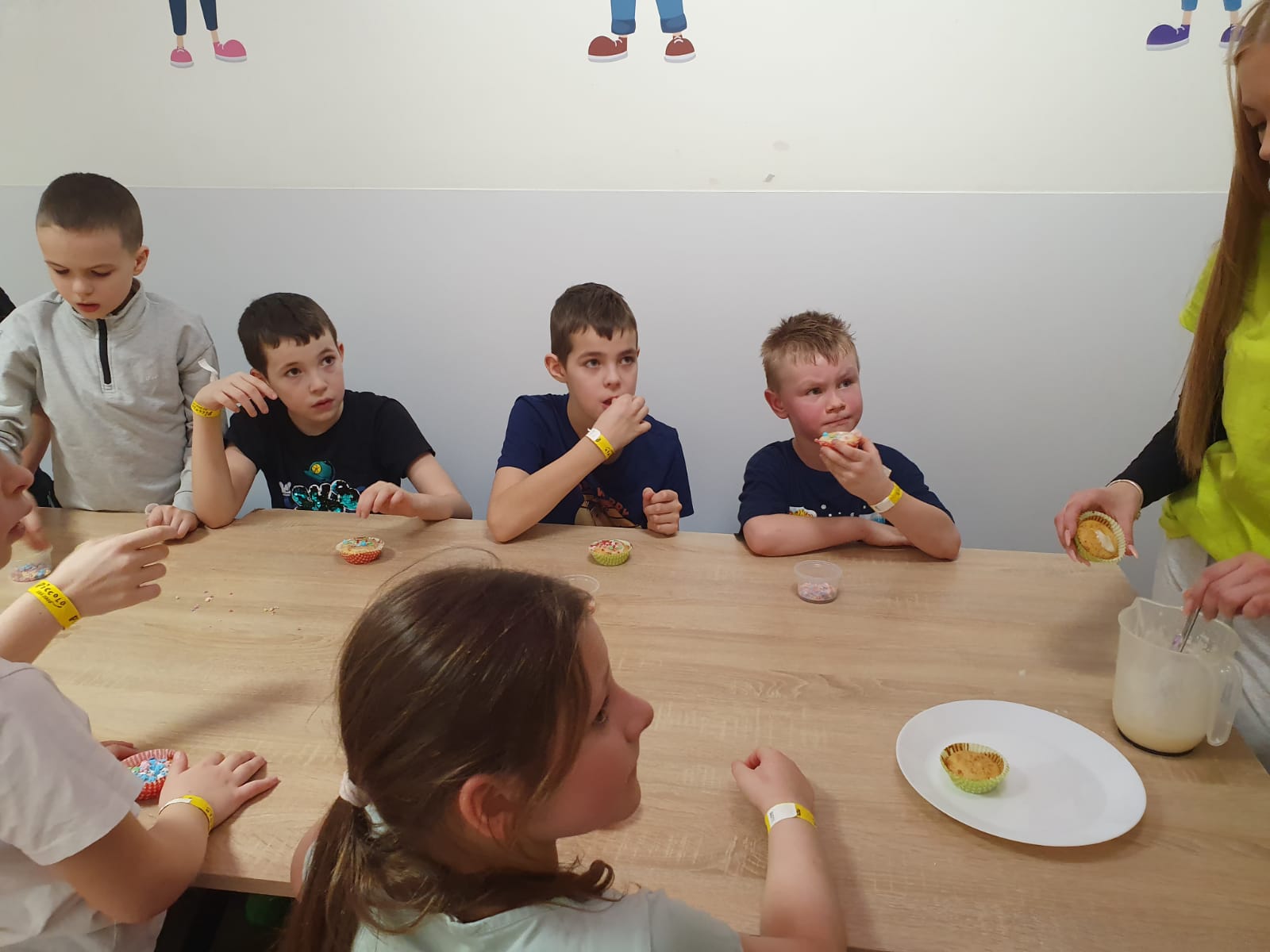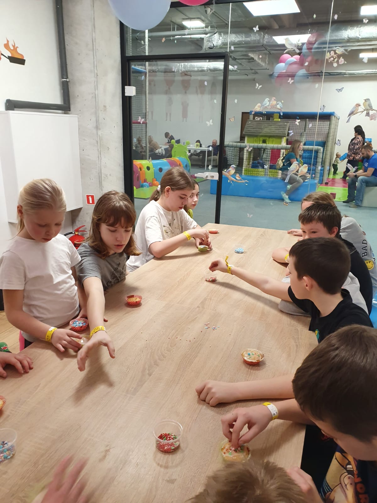 Kochani spieszymy do Was z relacją jak zakończyliśmy pierwszy tydzień ferii w naszej świetlicy. Dzisiaj była mała integracja w sali zabaw PICCOLO. Pod okiem instruktorów piekliśmy i dekorowaliśmy babeczki, które ze smakiem zostały zjedzone nie skromnie powiemy były przepyszne i było troszkę szaleństwa na trampolinach, zjeżdżalniach i inych atrakcjach poprostu bylo cudownie.Wszyscy teraz mamy dwa dni oddechu ładujemy akumulatory w końcu nowy tydzień już wkrótce i tylko troszkę powiemy będzie się działo. Sedecznie zapraszamy nieśmiałych którzy chcą zakosztować małej przygody z nami.