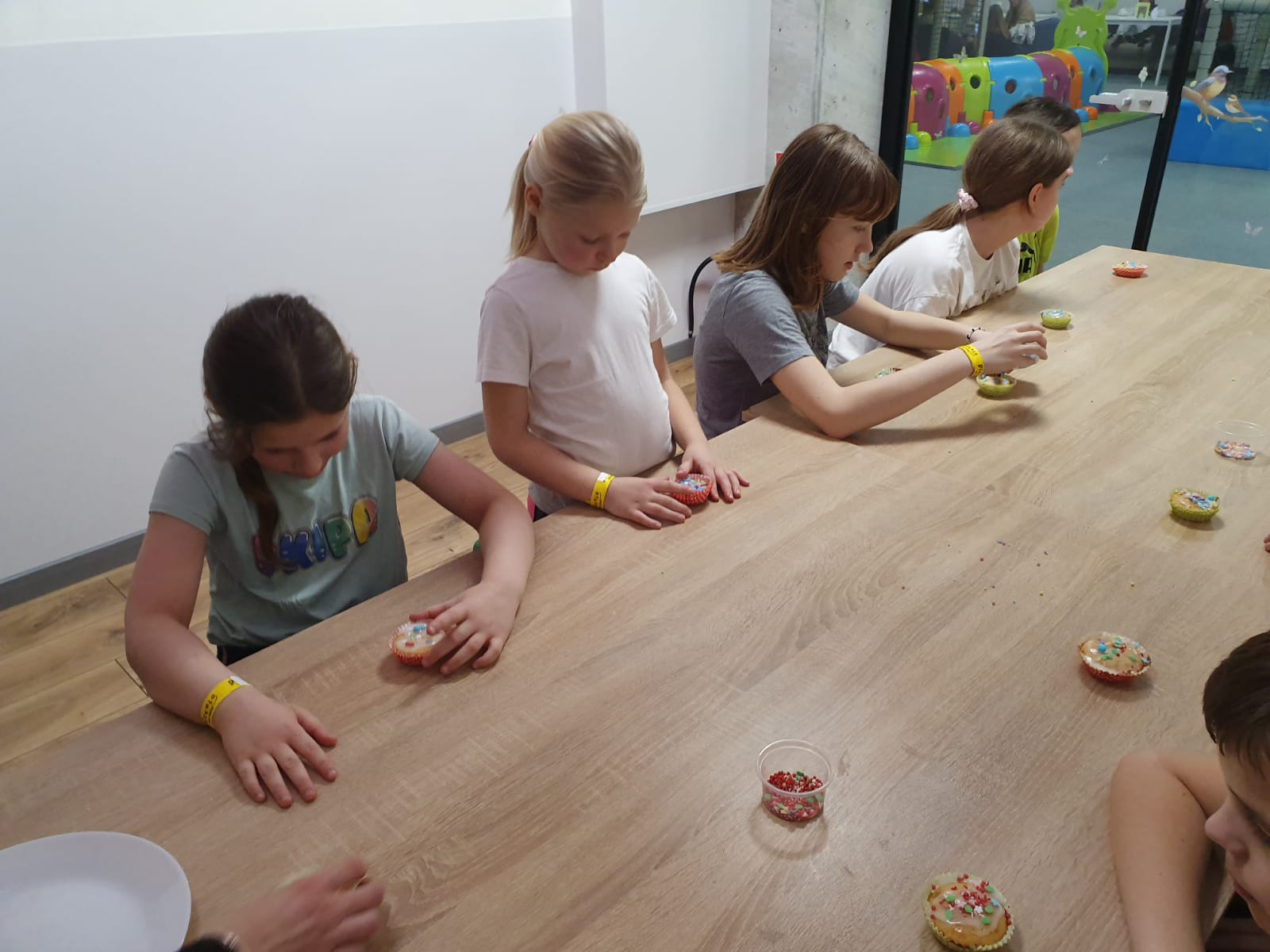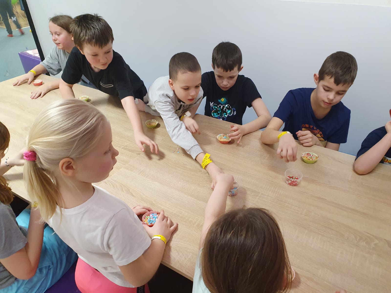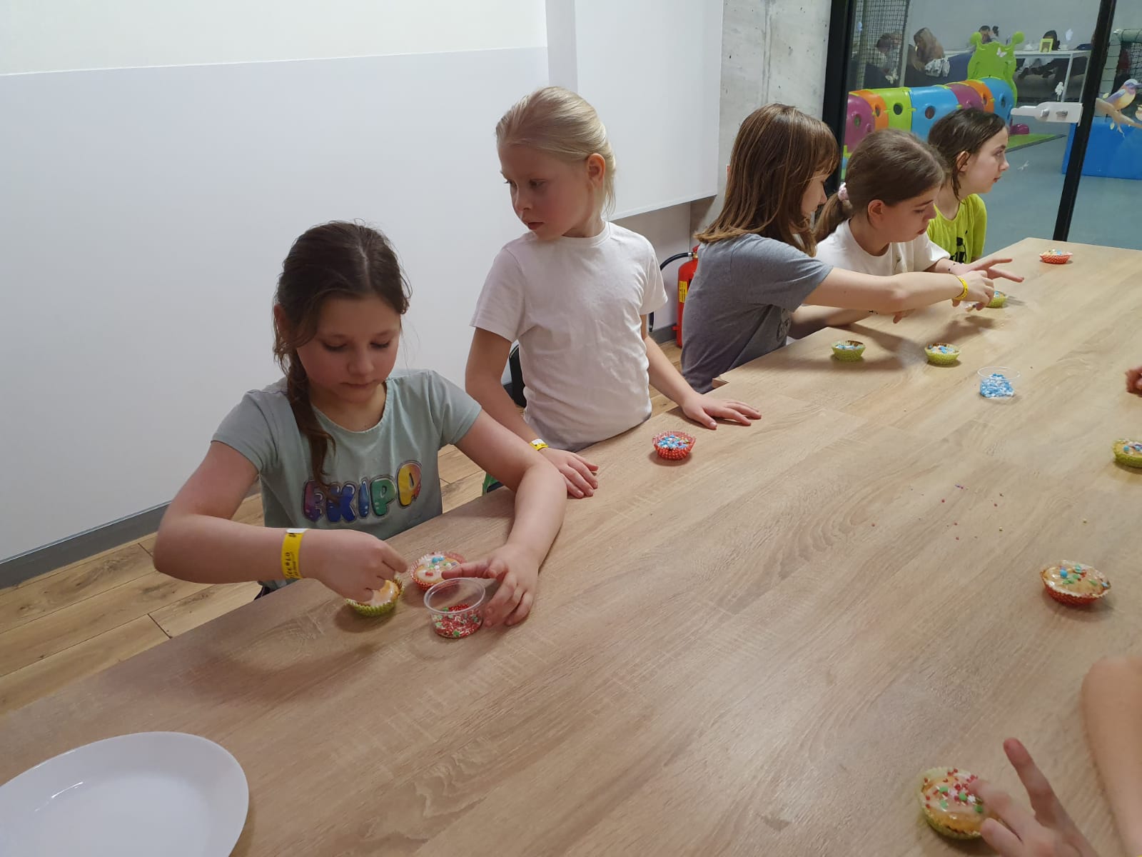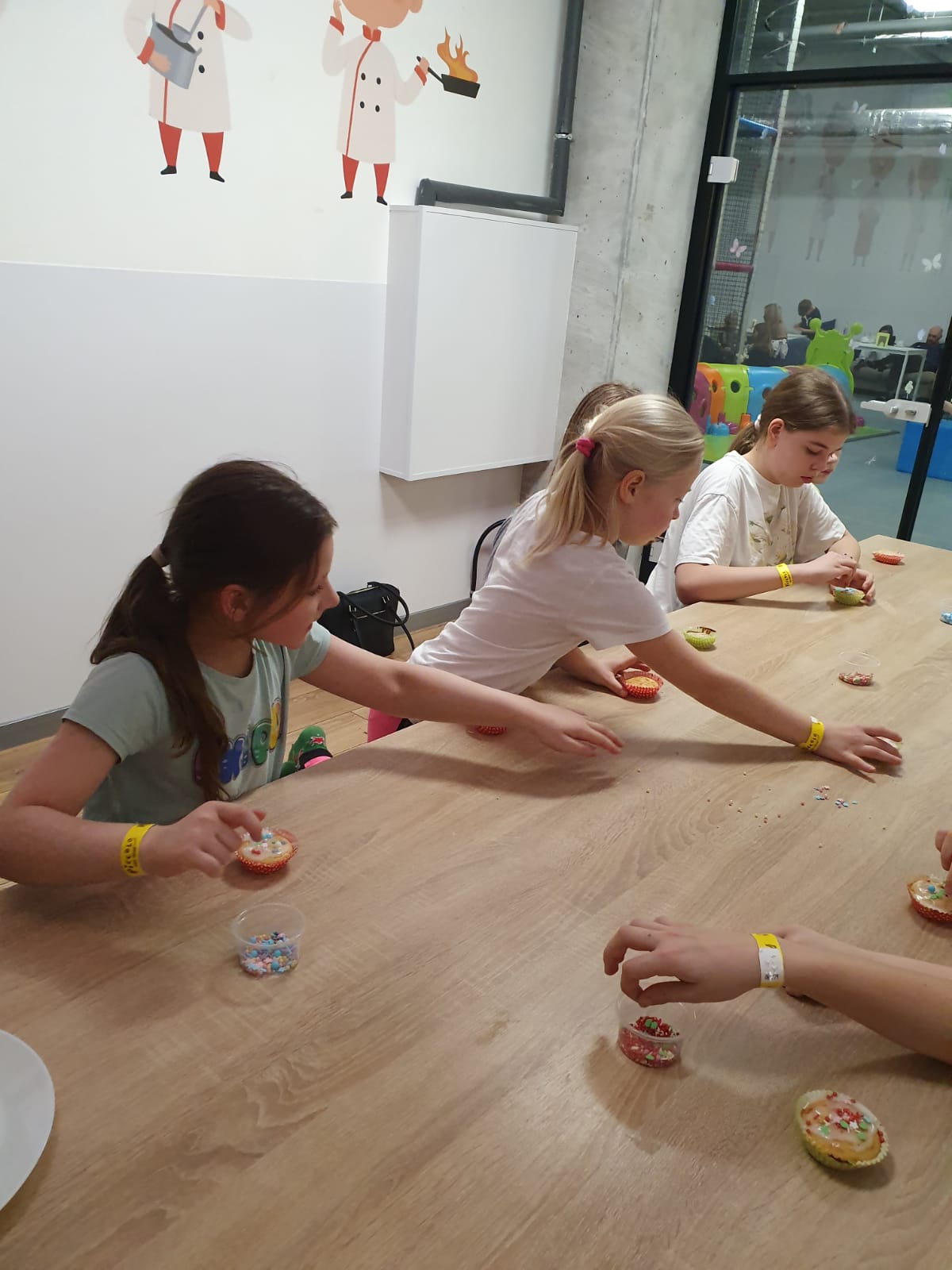 Kochani spieszymy do Was z relacją jak zakończyliśmy pierwszy tydzień ferii w naszej świetlicy. Dzisiaj była mała integracja w sali zabaw PICCOLO. Pod okiem instruktorów piekliśmy i dekorowaliśmy babeczki, które ze smakiem zostały zjedzone nie skromnie powiemy były przepyszne i było troszkę szaleństwa na trampolinach, zjeżdżalniach i inych atrakcjach poprostu bylo cudownie.Wszyscy teraz mamy dwa dni oddechu ładujemy akumulatory w końcu nowy tydzień już wkrótce i tylko troszkę powiemy będzie się działo. Sedecznie zapraszamy nieśmiałych którzy chcą zakosztować małej przygody z nami.
