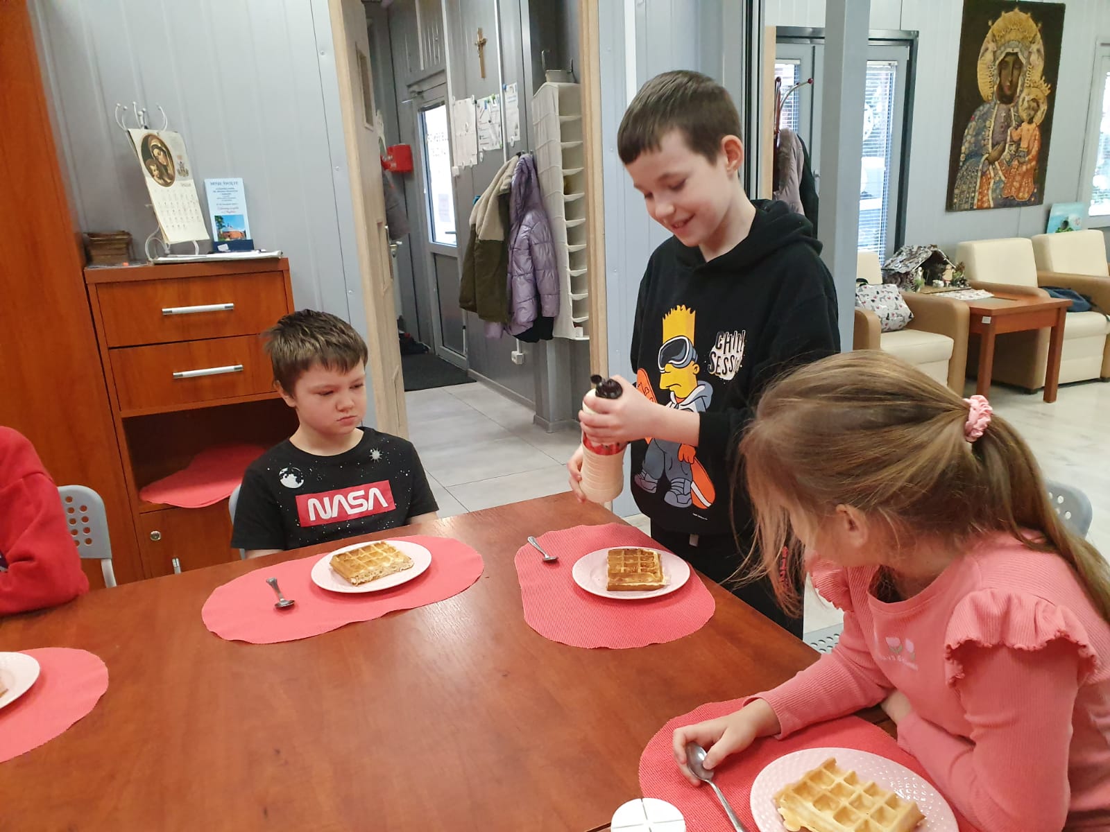 Witamy w drugim tygodniu ferii zimowych. Dzisiaj w naszej świetlicy powitaliśmy kolejne nowe osoby. Zapraszamy do krótkiej relacji z naszego dnia pełnego mnóstwa wrażeń, były pyszne gofry i dużo zabawy. Jutro jedziemy do HulaKula już nie możemy się doczekać kolejnych atrakcji.