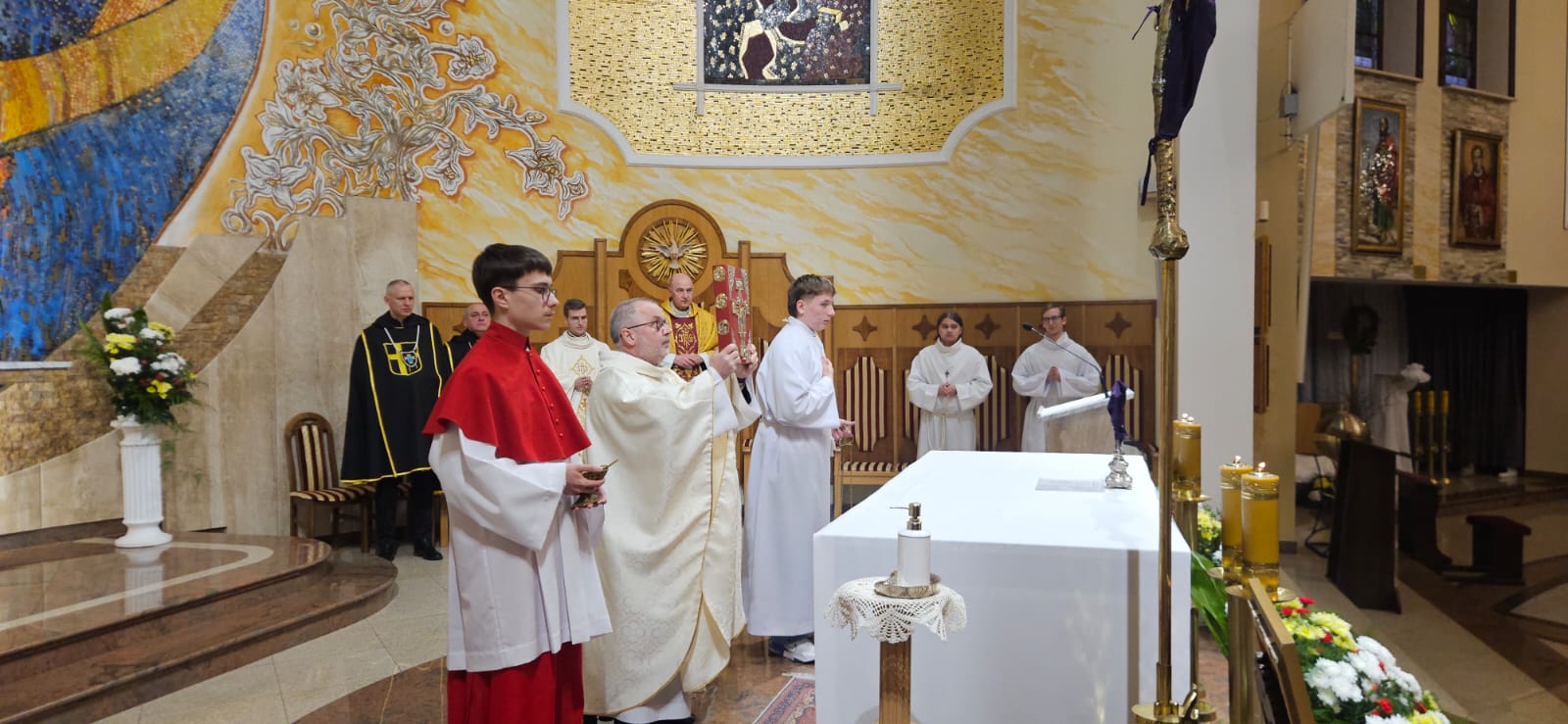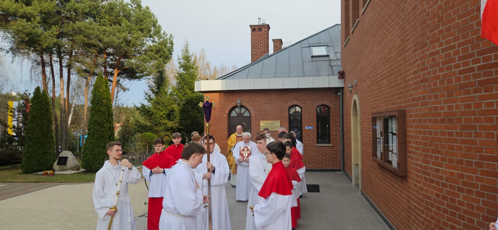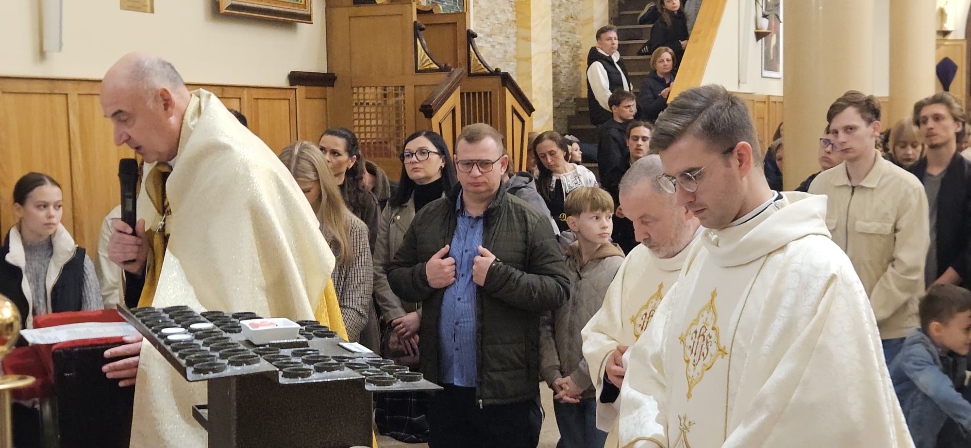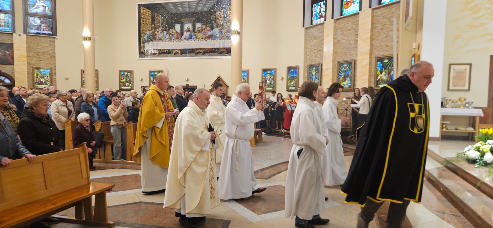 O godzinie 18:00 zgromadziliśmy się w naszym parafialnym wieczerniku, aby nie tylko wspominać wydarzenie Wielkiego Czwartku, ale by dziękować za dary eucharystii i kapłaństwa, że Chrystus został z nami tak blisko, że może zamieszkać w sanktuarium naszego serca. Mszę świętą Wieczerzy Pańskiej sprawowali ks. Proboszcz, ks. Mikołaj i ks. Arkadiusz. W wielkim gronie parafian, wspólnot i grup parafialnych dziękowali za dar powołania, kapłaństwa i każdego z nas których obejmuje swoją troską duszpasterską. Eucharystia jest tajemnicą nowego baranka- Jezusa Chrystusa. Mamy go spożywać, a jego krew ma nas bronić przed współczesnym aniołem śmierci, który tak często przechodzi przez nasze życie i chce nas uśmiercić. To kapłan jest tym, który pomaga nam by ten anioł nie wkradł się do naszego wnętrza i nas duchowo nie uśmiercił.