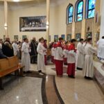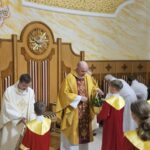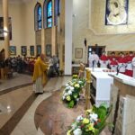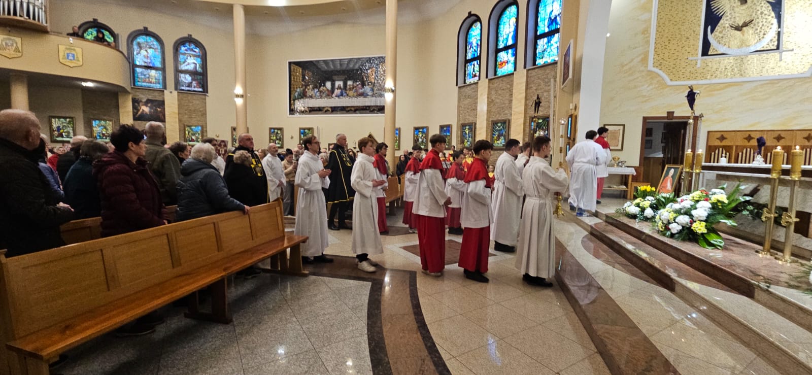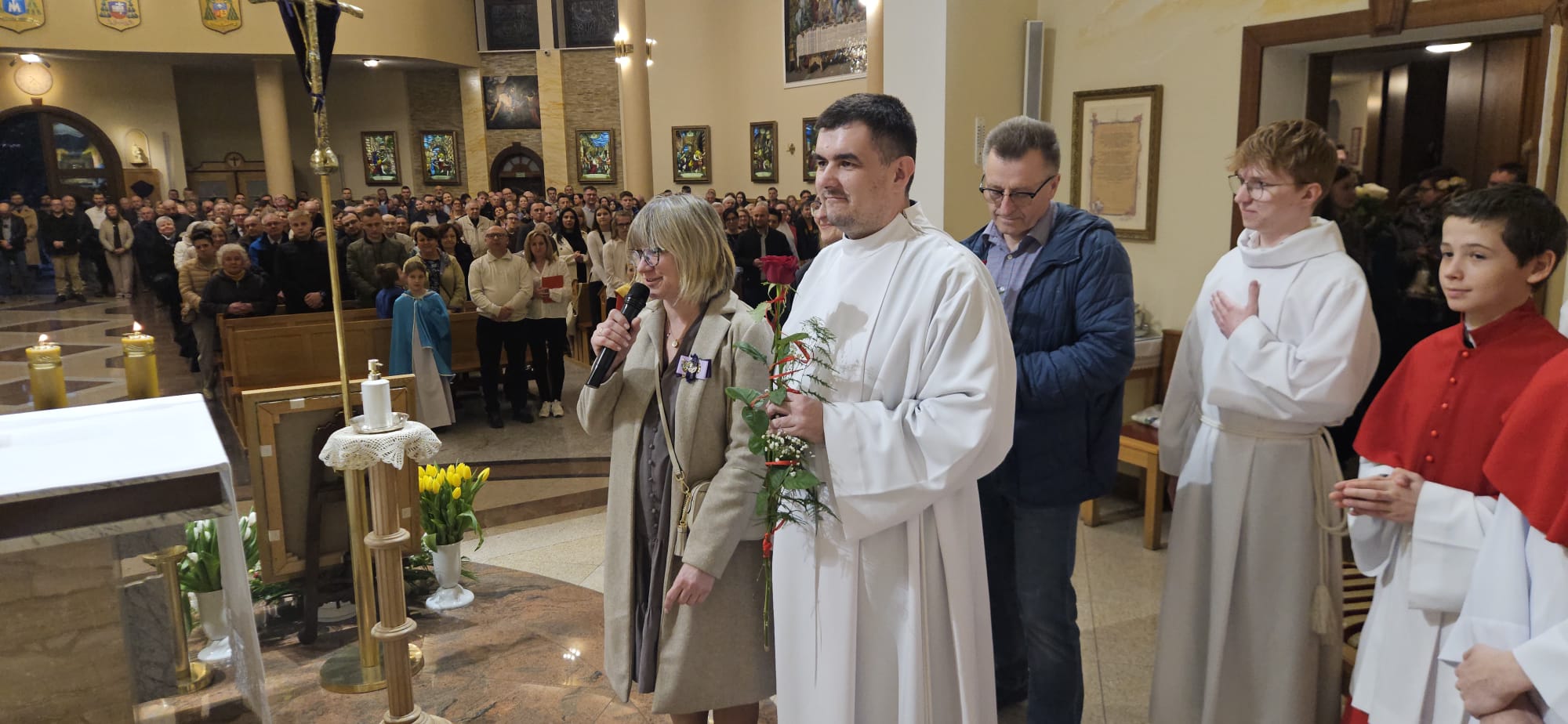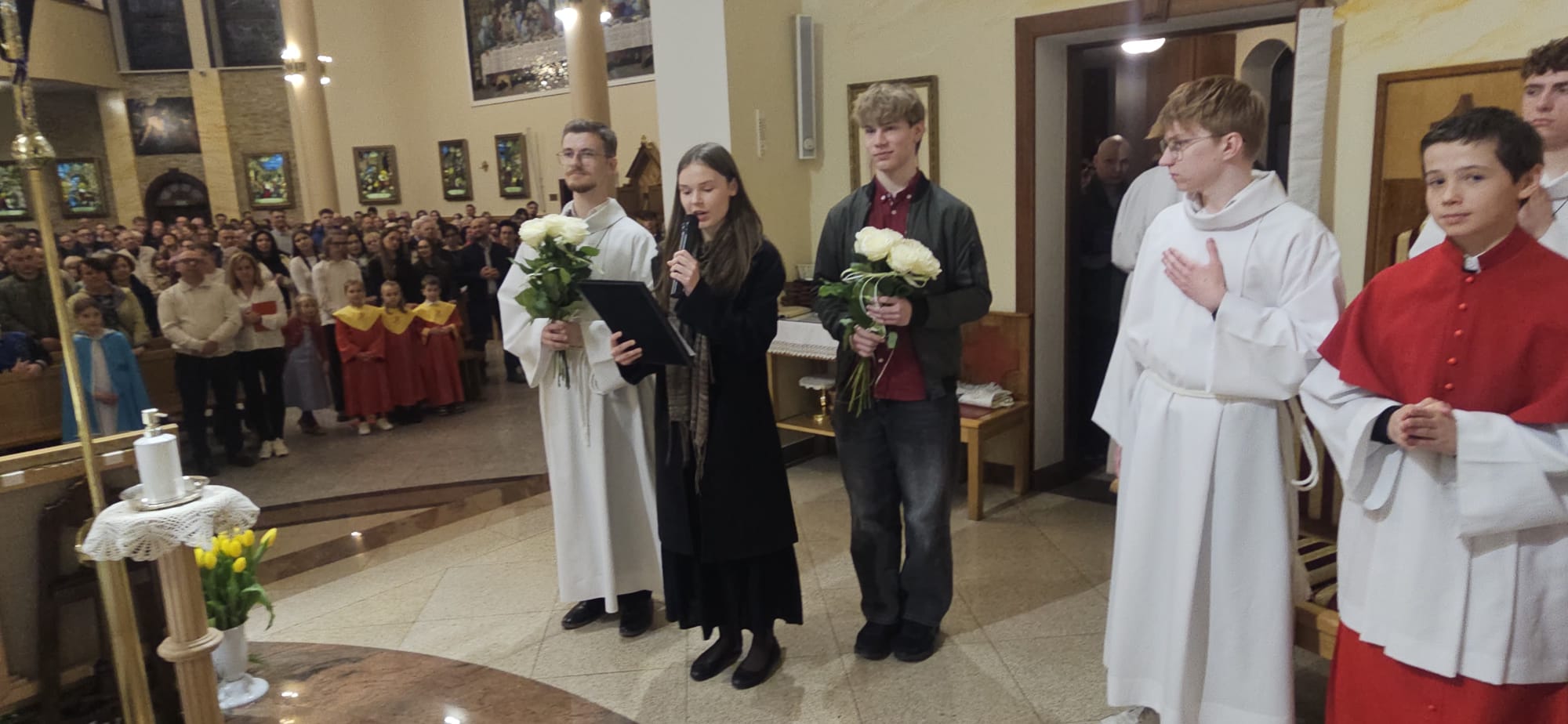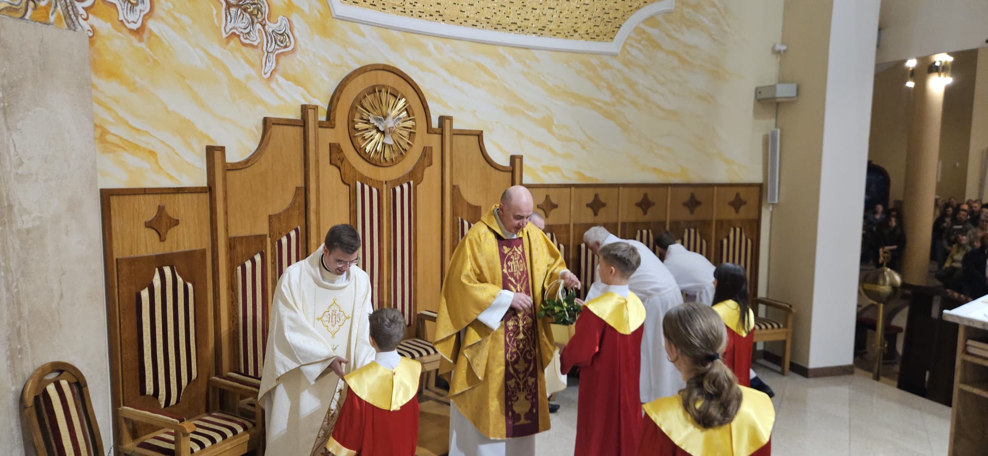 O godzinie 18:00 zgromadziliśmy się w naszym parafialnym wieczerniku, aby nie tylko wspominać wydarzenie Wielkiego Czwartku, ale by dziękować za dary eucharystii i kapłaństwa, że Chrystus został z nami tak blisko, że może zamieszkać w sanktuarium naszego serca. Mszę świętą Wieczerzy Pańskiej sprawowali ks. Proboszcz, ks. Mikołaj i ks. Arkadiusz. W wielkim gronie parafian, wspólnot i grup parafialnych dziękowali za dar powołania, kapłaństwa i każdego z nas których obejmuje swoją troską duszpasterską. Eucharystia jest tajemnicą nowego baranka- Jezusa Chrystusa. Mamy go spożywać, a jego krew ma nas bronić przed współczesnym aniołem śmierci, który tak często przechodzi przez nasze życie i chce nas uśmiercić. To kapłan jest tym, który pomaga nam by ten anioł nie wkradł się do naszego wnętrza i nas duchowo nie uśmiercił.