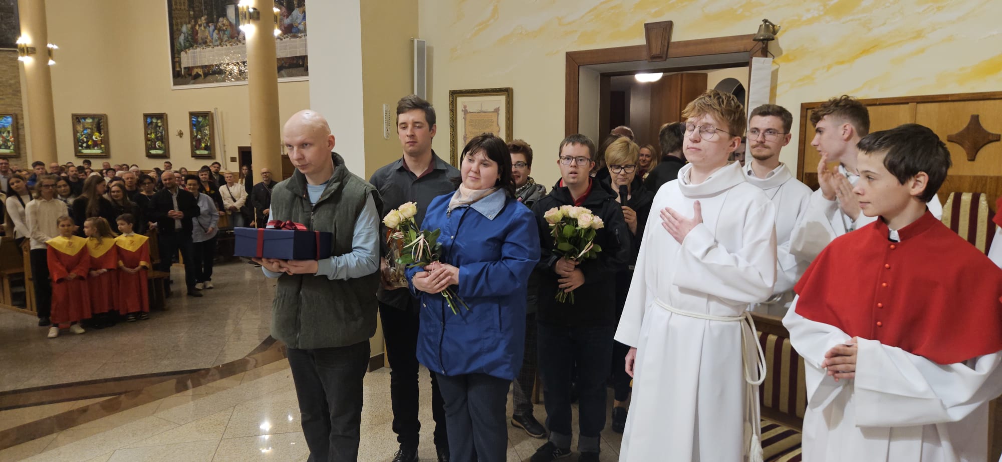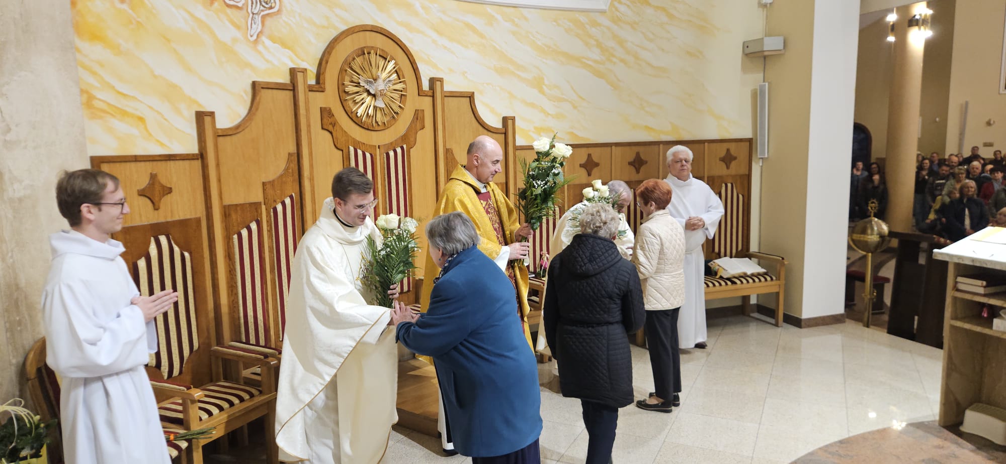 Na koniec przed przeniesieniem Najświętszego Sakramentu do ciemnicy było wiele życzeń, kwiatów jako dowód podziękowania i uznania za posługę naszych duszpasterzy.
