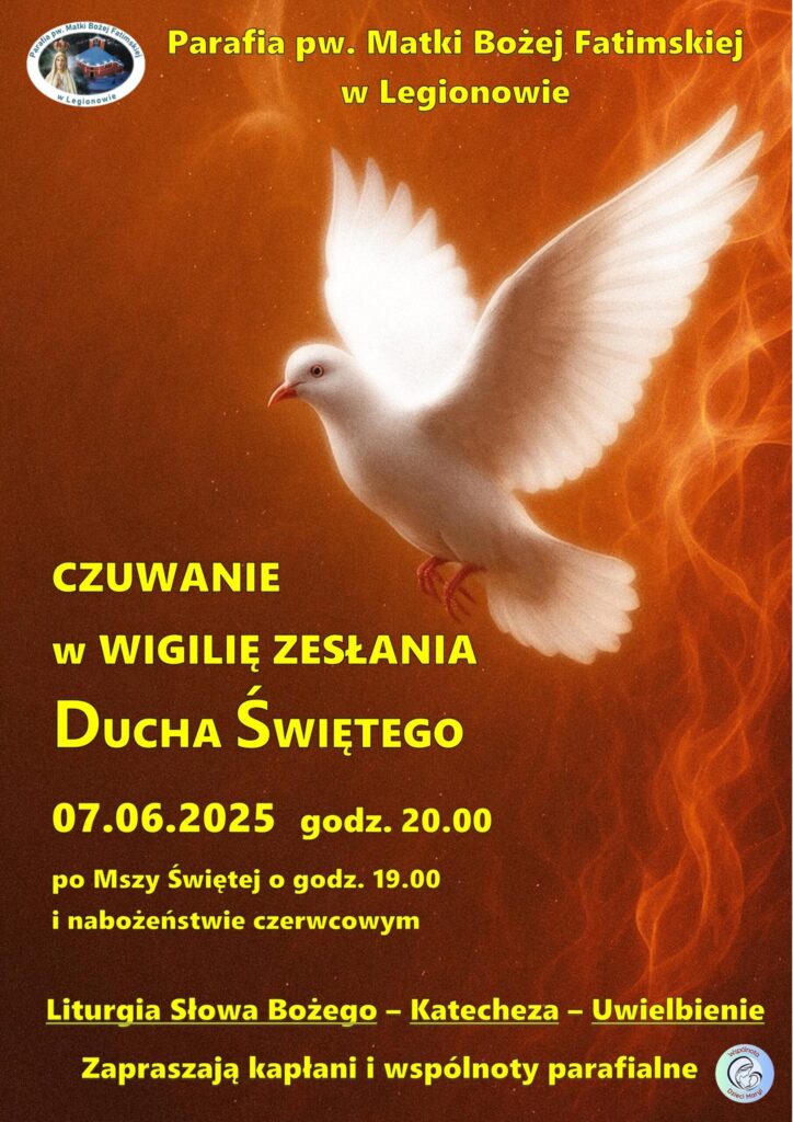W najbliższą sobotę, 7 czerwca 2025 roku, przeżywać będziemy Wigilię Zesłania Ducha Świętego. W tym dniu, bezpośrednio po Mszy Świętej o godzinie 19.00 oraz nabożeństwie czerwcowym, w naszej wspólnocie parafialnej, będzie miało miejsce czuwanie, na które zapraszają duszpasterze i wspólnoty przygotowujące to wydarzenie. Początek około godziny 20.00. W planie: liturgia Słowa Bożego, katecheza z nauką […]