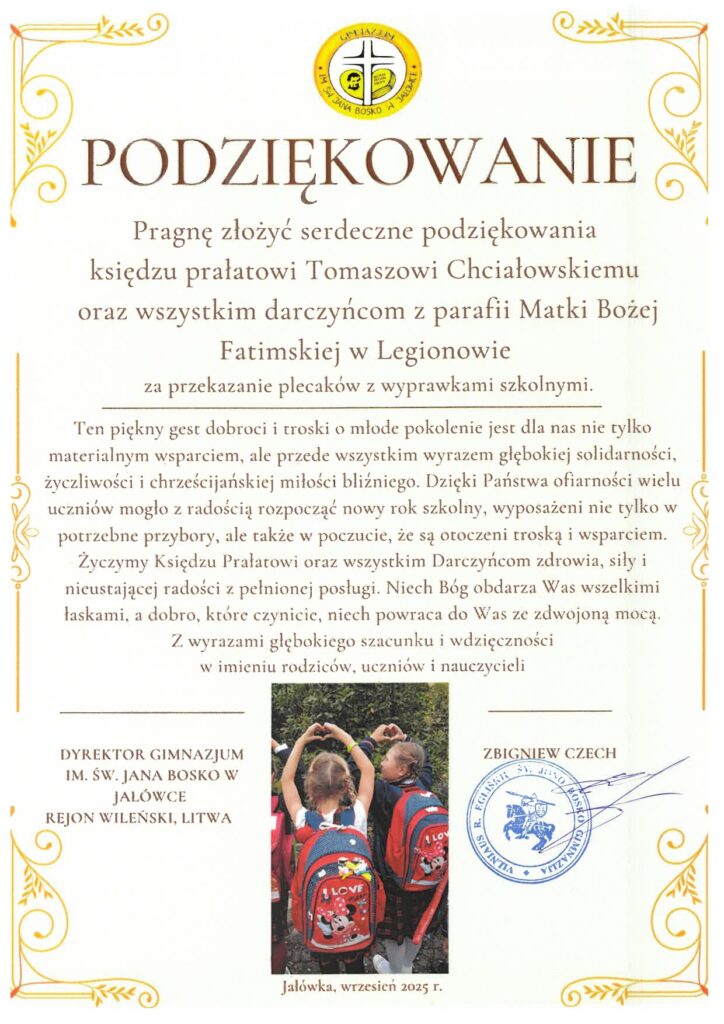 Mimo że wakacje to czas odpoczynku, relaksu, wyjazdów, to jednak nasze grupy – zespoły parafialne – pracowały pełną parą. W lipcu i sierpniu szykowaliśmy i dostarczyliśmy 140 kompletnych wyprawek szkolnych do polskich dzieci na Litwie. Naszą troską objęliśmy również dzieci z Błędostowa, Wieliszewa czy Legionowa. To dzięki ciężkiej pracy wolontariuszy, członków zespołu charytatywnego, można było […]