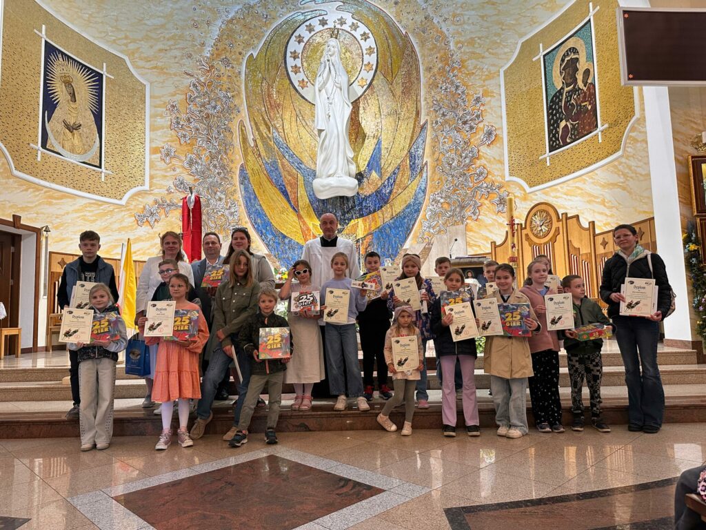 W niedzielę, 27 kwietnia, o godzinie 12.00, odbyło się rozstrzygnięcie konkursu na najładniejszą i największą Palmę Wielkanocną wykonaną przez dzieci i młodzież z naszej parafii. Do konkursu zostało zgłoszonych 23 niesamowitych prac, z których każda wyróżniała się pomysłowością i kreatywnością wykonania. Uczestnicy otrzymali dyplomy i wyróżnienia. Każdy uczestnik otrzymał zestaw gier planszowych a zdobywcy głównych […]