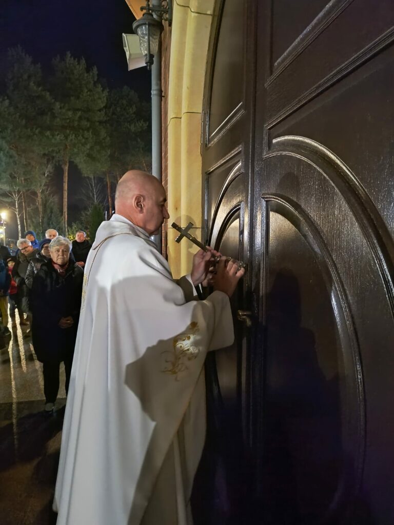 Otwarciem drzwi naszej świątyni, dwunastokrotnym uderzeniem w nie, zainaugurowaliśmy, w sposób uroczysty, Rok Jubileuszowy 2025, który będzie obchodzony pod hasłem Pielgrzymi nadziei. Ksiądz Proboszcz podkreślił, że tak jak otwieramy drzwi naszej świątyni, tak powinniśmy otworzyć nasze serca na ten czas szczególnej łaski danej całemu Kościołowi. Czy jest Rok Jubileuszowy możemy przeczytać tutaj -> Rok Jubileuszowy 2025